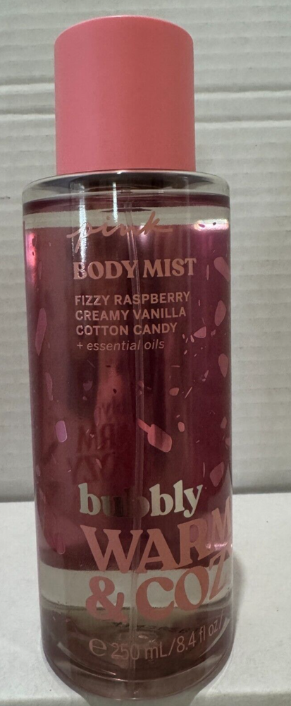 VICTORIA'S SECRET PINK BUBBLY WARM & COZY BODY MIST TOP NOTES: RASPBERRY, VANILLA, COTTON CANDY Size :8.4 Fl Oz / e250 mL BRAND NEW - NEVER TESTED - NO BOX