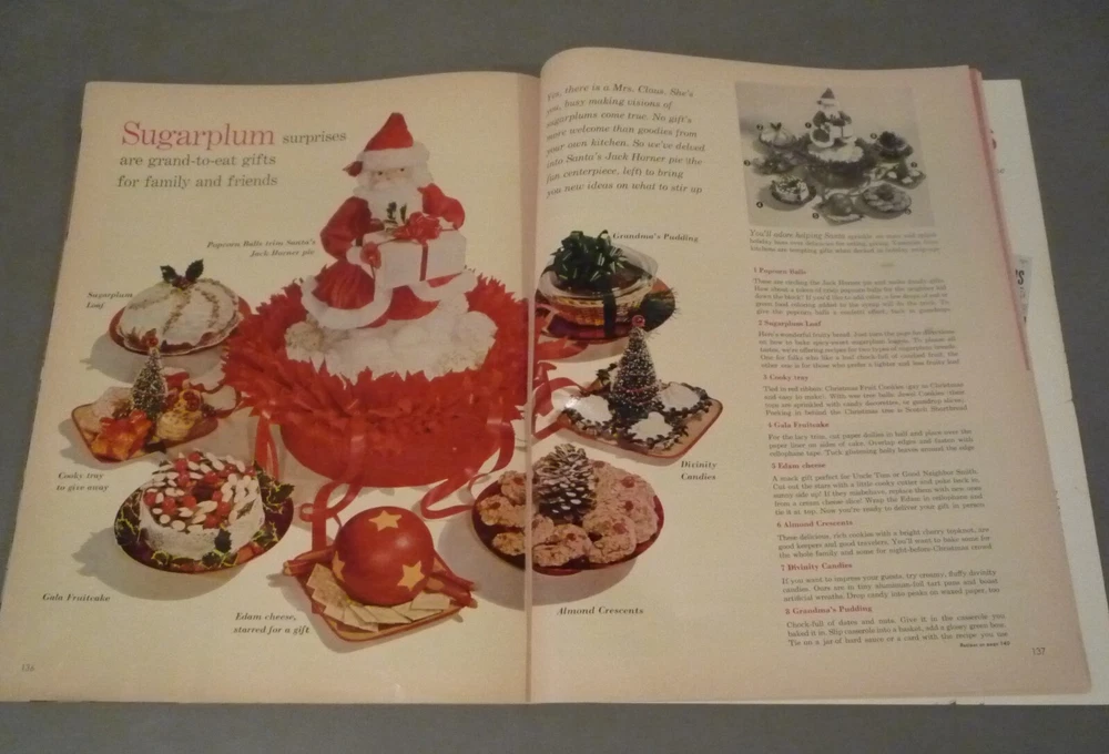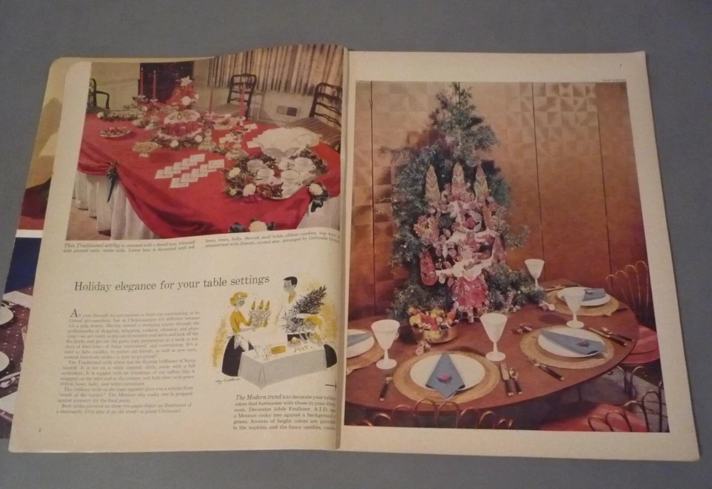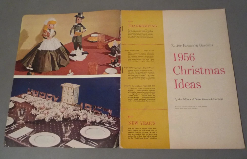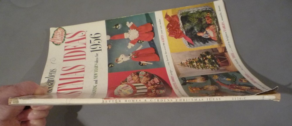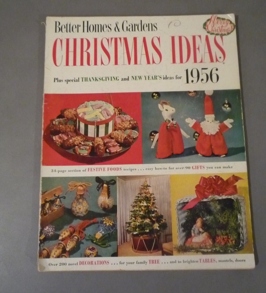 VINTAGE 1956 BETTER HOMES & GARDENS CHRISTMAS IDEAS MAGAZINE For your consideration is a 1956 Better Homes & Gardens Christmas Ideas oversized magazine with special Thanksgiving & New Years’s ideas. The book measures 12.5”x 10” with 154 pages & is from a smoke free & dry environment. It has slight wear & a couple tears on the binding. This was my mom’s magazine & she couldn’t resist neatly cutting out 5 recipes. Please view the photos . Page 154 photo shows all the content. Every effort is made to carefully pack and protect your purchase. Shipping will be in a timely manner upon receipt of payment, usually 1-2 days. I make every effort to describe the item as best & honestly as I can & support my description with the photos. Please e-mail me with any questions and thank-you for viewing my listing.