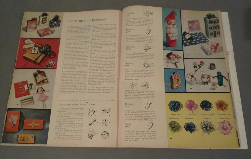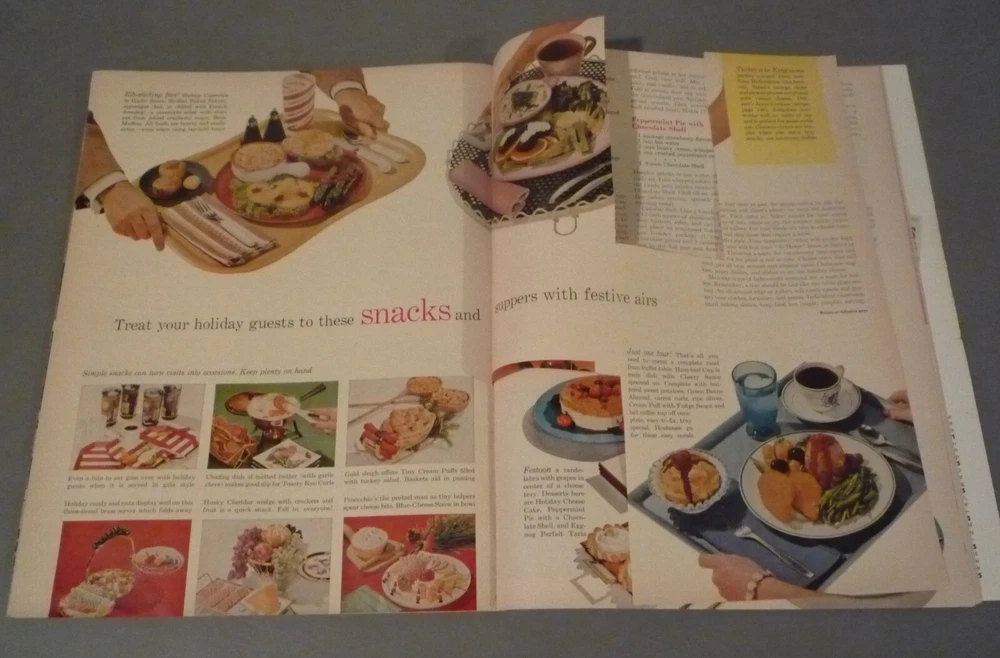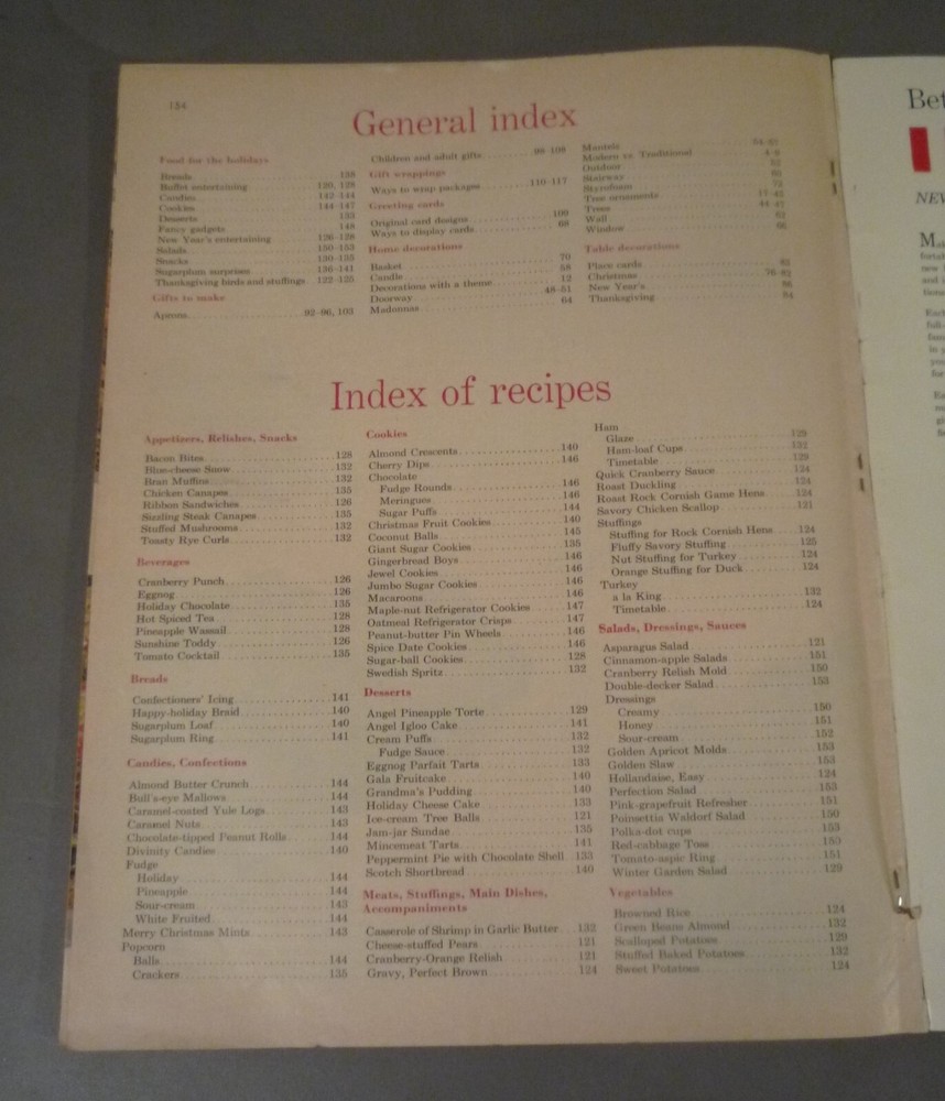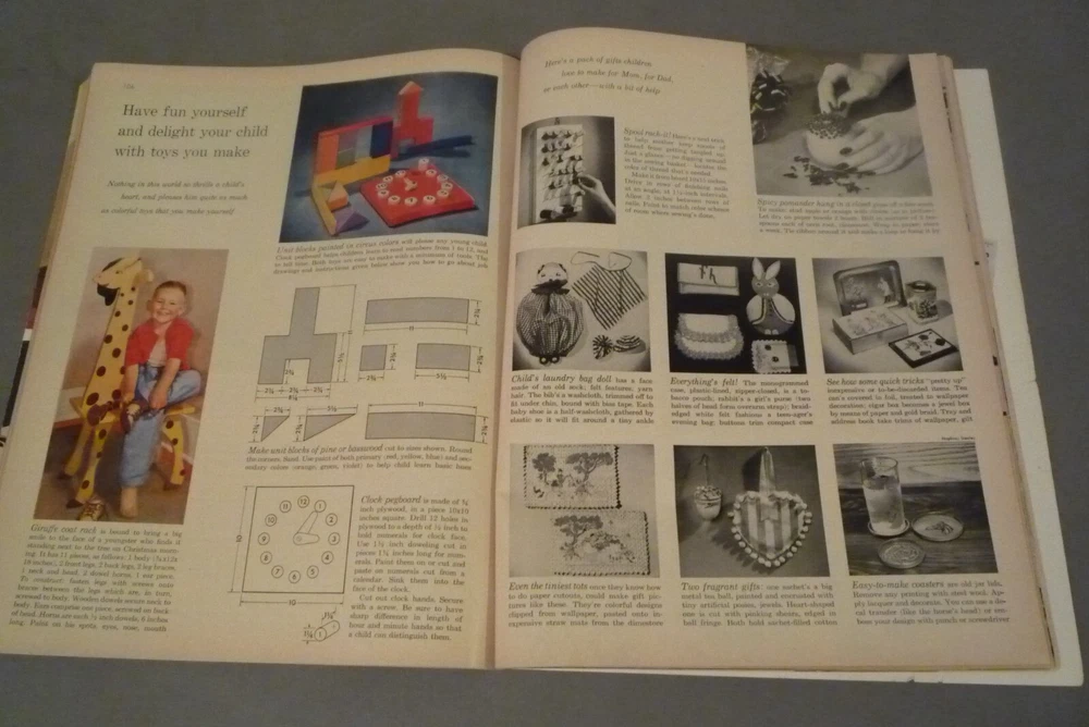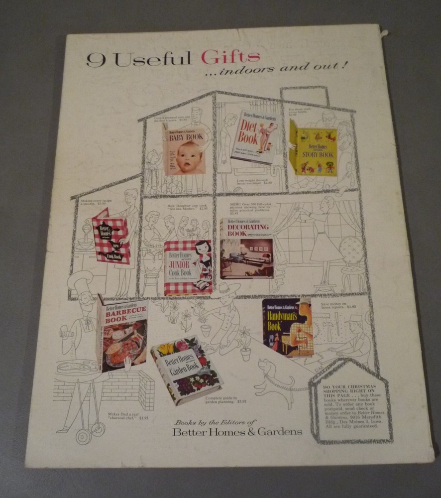 VINTAGE 1956 BETTER HOMES & GARDENS CHRISTMAS IDEAS MAGAZINE For your consideration is a 1956 Better Homes & Gardens Christmas Ideas oversized magazine with special Thanksgiving & New Years’s ideas. The book measures 12.5”x 10” with 154 pages & is from a smoke free & dry environment. It has slight wear & a couple tears on the binding. This was my mom’s magazine & she couldn’t resist neatly cutting out 5 recipes. Please view the photos . Page 154 photo shows all the content. Every effort is made to carefully pack and protect your purchase. Shipping will be in a timely manner upon receipt of payment, usually 1-2 days. I make every effort to describe the item as best & honestly as I can & support my description with the photos. Please e-mail me with any questions and thank-you for viewing my listing.