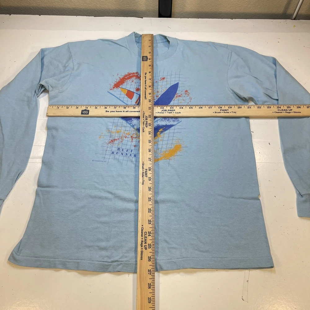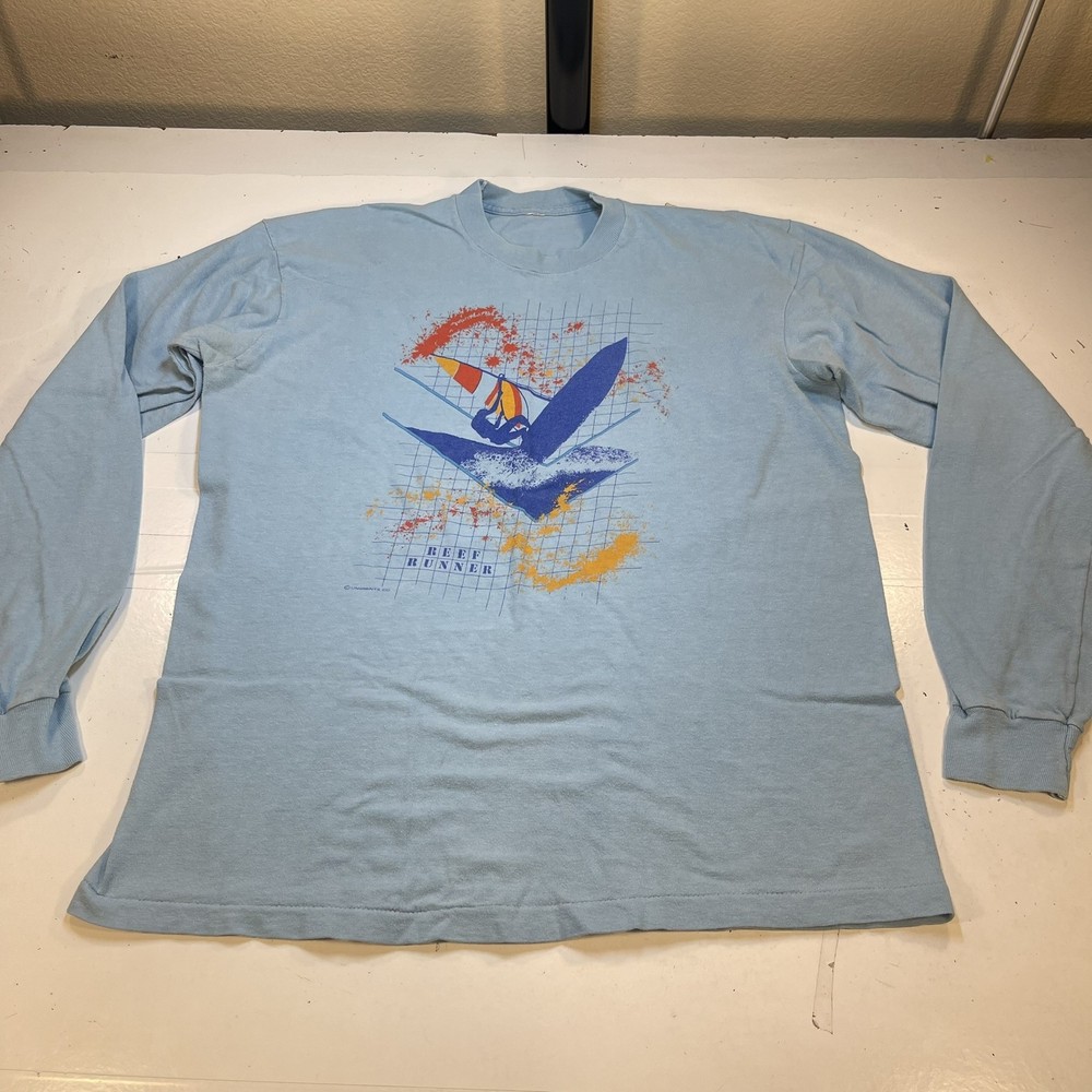 VINTAGE 1980s 80's Reef Runner Wind Surf Surfing Sail T SHIRT Sz Mens XL Blue Size Mens XL GREAT CONDITION 100% AUTHENTIC QUALITY MADE The color is: blue The fabric content is: Cotton The last photo features the measurements IL2* The letters above are for us to locate the item in our collection There are more large photos of this item at the bottom of the page About TheBestStuffEver Our goal is 100% CUSTOMER SATISFACTION. We do our very best to give an accurate description and rate the quality of each item we list. Return Policy If you are not happy return it for a refund. It's that simple. We ask that you do not leave negative feedback before contacting us, we will correct any problem. Sizing Every manufacturer sizes their clothing differently. Some companies size XXL maybe another's size large and vice a versa. That is why we include the measurements of each and every item we list. Shipping We ship as soon as payment it made so if you have an alternate address please contact us before payment is made. The tracking number will be on the items ebay page. We do combine shipping. Domestic Shipping ( USA ) each additional item is $4.00 International orders each additional item is $6.00 Repeat Customer Discount We are very thankful for our customers and so we give a 10% DISCOUNT to all of our repeat customers. To receive the discount just us a message that you have purchased from us before and we will check your feedback make sure you purchased from us in the past and adjust your ebay invoice. All we ask is that you ask for the discount before making payment. You may be interested in our other eBay listings . Thanks for checking us out VINTAGE 1980s 80's Reef Runner Wind Surf Surfing Sail T SHIRT Sz Mens XL Blue Size Mens XL GREAT CONDITION 100% AUTHENTIC QUALITY MADE The color is: blue The fabric content is: Cotton The last photo features the measurements IL2* The letters above are for us to locate the item in our collection Powered by SixBit's eCommerce Solution