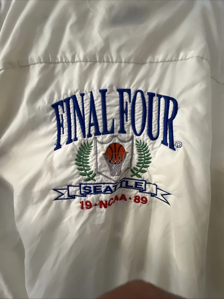 Just scored this awesome vintage NCAA windbreaker, and it’s even better in person! The retro Final Four logo with the Space Needle gives it serious nostalgia vibes. Super lightweight but keeps the wind out, perfect for layering in cooler weather. Love the classic white with the bold detailing—great for casual outings or showing off some sports history. The XL fits true to size, and the pockets are a nice touch. A few minor stains, but totally worth it for such a rare find. If you’re into vintage sports gear, don’t sleep on this one!