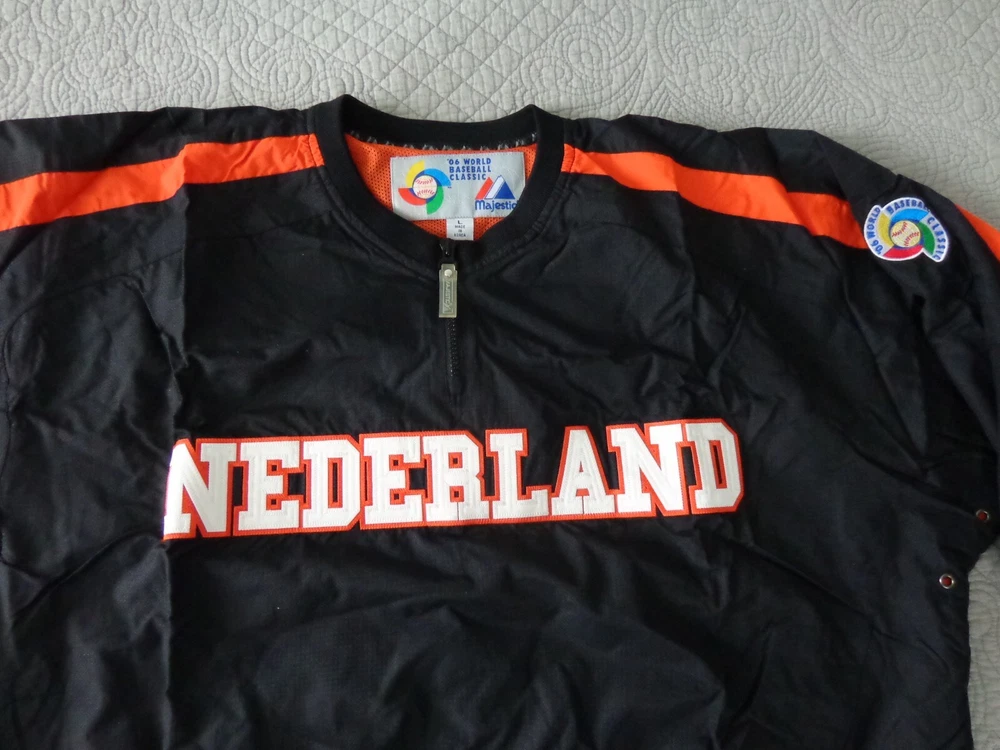 VINTAGE 2006 1st YEAR WBC NEDERLAND / NETHERLAND WORLD BASEBALL CLASSIC 1/4 ZIP PULL OVER WIND BREAKER / JACKET by Majestic Men - Large NEW with TAGS VERY RARE !!! BUY IT NOW $79.50 FREE SHIPPING !!!