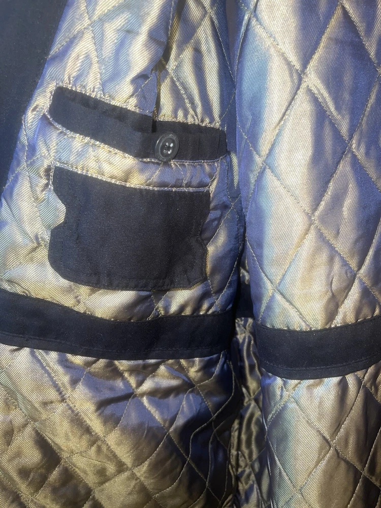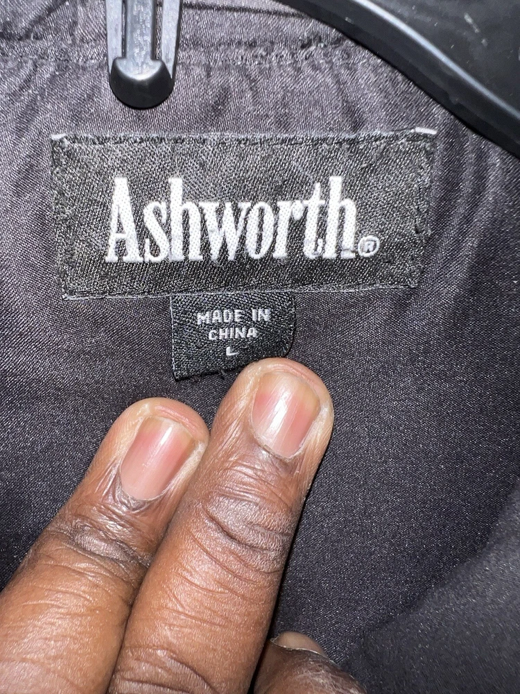This vintage Ashworth jacket is a must-have for any fashion-forward individual. Made from high-quality cotton, this black overcoat features a full zip closure and a band collar style. The jacket is padded for all seasons and has pockets to keep your belongings safe. It is wind-resistant and water-resistant, making it perfect for outdoor activities like skiing, hiking, and running. With its unique design, this coat is perfect for any occasion, from festivals to sports events. The jacket has a bohemian, hippie, and retro feel, making it a great addition to your wardrobe. The Ashworth jacket is a unisex design, with a size of M/L and a chest size of M/L. It is recommended to hand wash only, and the lining material is made of polyester. This jacket is a perfect choice for anyone who wants to add a touch of vintage to their style. Good condition