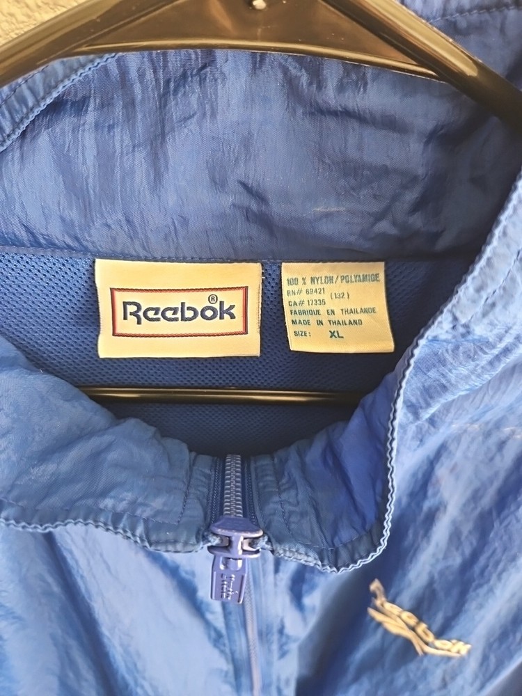 VINTAGE 90s REEBOK WINDBREAKER LIGHTWEIGHT NYLON LOGO JACKET BLUE WHITE SZ XL. Condition is Pre-owned. Shipped with USPS Ground Advantage....