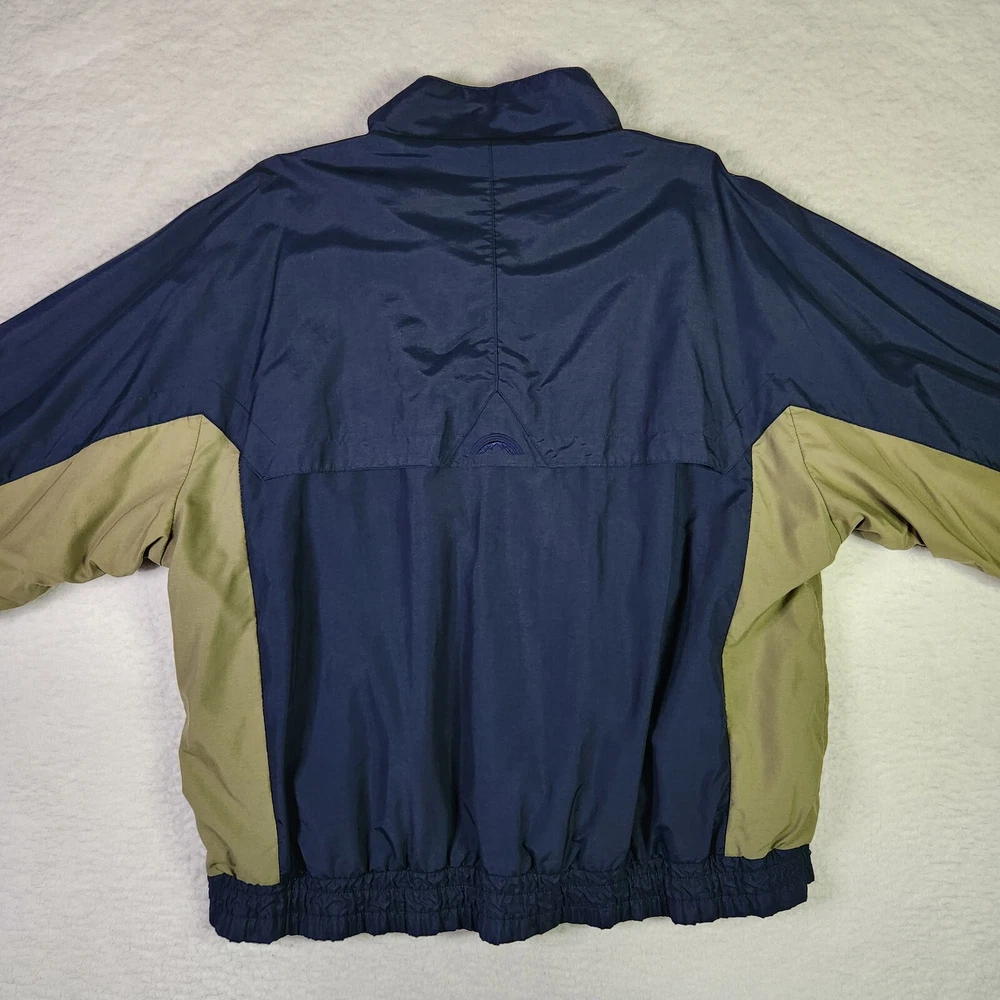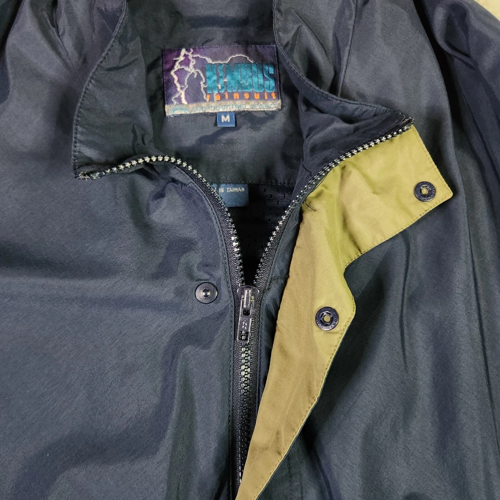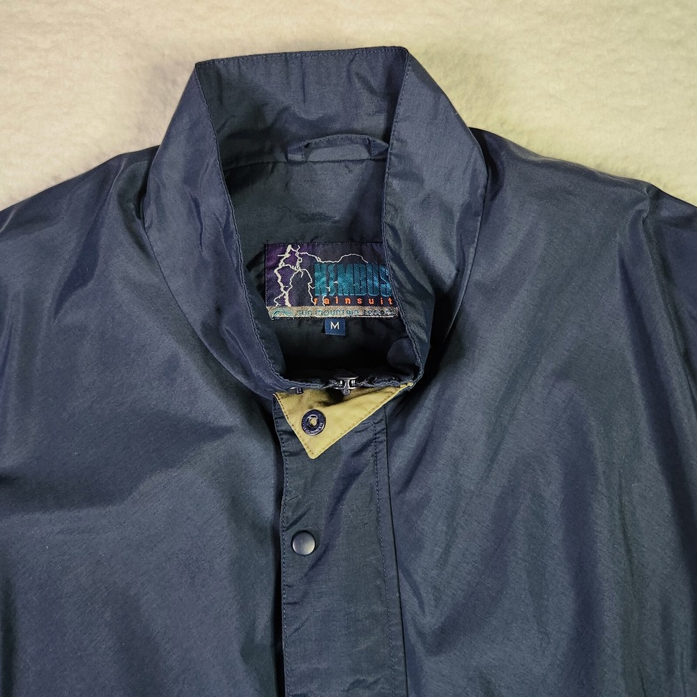 VINTAGE 90s Sun Mountain Nimbus Rainsuit Lightweight Jacket Medium Outdoors Mens Excellent Vintage Condition Size: Medium Color: Navy, Gold 100% Nylon Machine Washable See photographs for MEASUREMENTS **Sleeve measurement is from shoulder seam to cuff - Please note** *To ensure the best fit, please measure the chest, sleeve, and total length of your favorite-fitting jacket and compare measurements to those of this particular item Free 30-Day Returns Same Day - Next Business Day Shipping This vintage 90s Sun Mountain Nimbus Rainsuit is a limited edition jacket that is perfect for any occasion. Made with softshell fabric and a combination of nylon and synthetic insulation material, this mid-length wind-resistant jacket is perfect for all seasons. It features a stand-up collar, full zip closure, and zipped pockets for convenience. The jacket is also water-resistant and moisture-wicking, making it ideal for outdoor activities like hiking and walking. The blue jacket has a classic fit and is available in size medium. It is adorned with an embroidered logo and a solid pattern. The jacket is machine washable and is a part of the Nimbus Rainsuit product line. This retro-inspired jacket is perfect for sports and casual wear. It is a must-have for anyone who loves the outdoors and wants to stay stylish while staying comfortable.