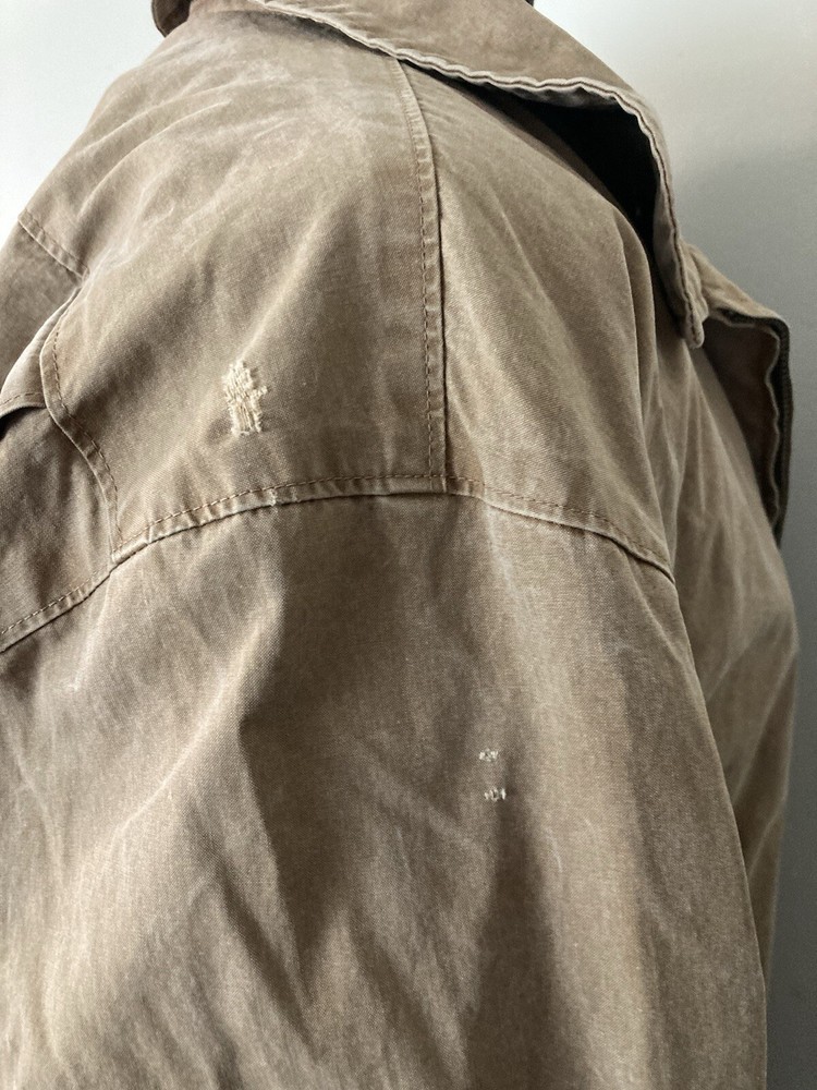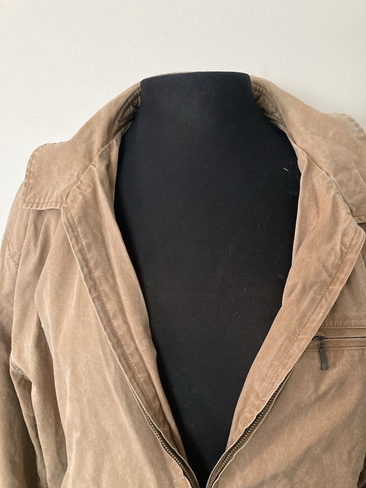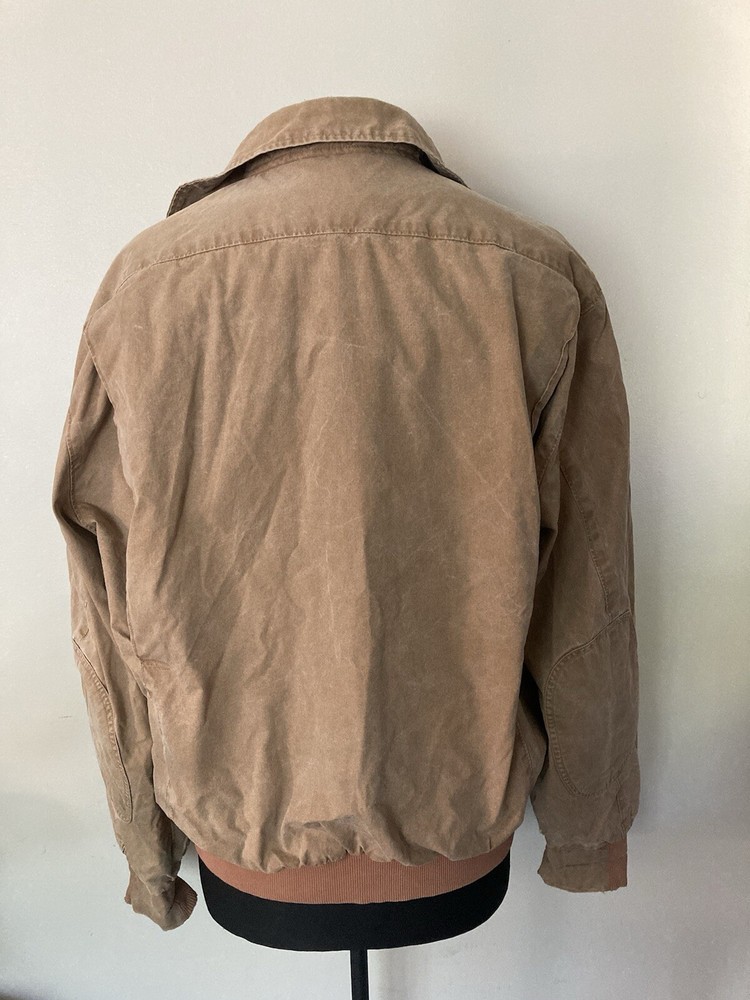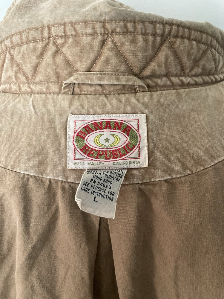 Add a touch of vintage to your wardrobe with this colorful Banana Republic jacket from the 80s. Made with softshell fabric and lined with cotton, this jacket is perfect for any occasion, whether it's a casual day out, a party, or even workwear. The jacket features an elastic waist, full zip closure, and pockets for added convenience. Some minor wear see pictures