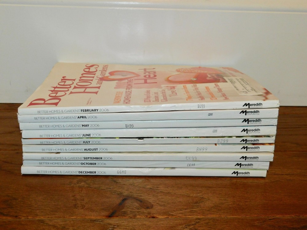 Up for sale is a Lot of 9 Better Homes and Gardens Magazines! The majority of them are in good condition - there are a couple that have bent pages and small tears. Please use pics as part of the description. February, April, May, June, July, August, September, October, December DON'T MISS OUT! Smoke free, pet free home! Thanks for looking! Please contact me if you have any questions.