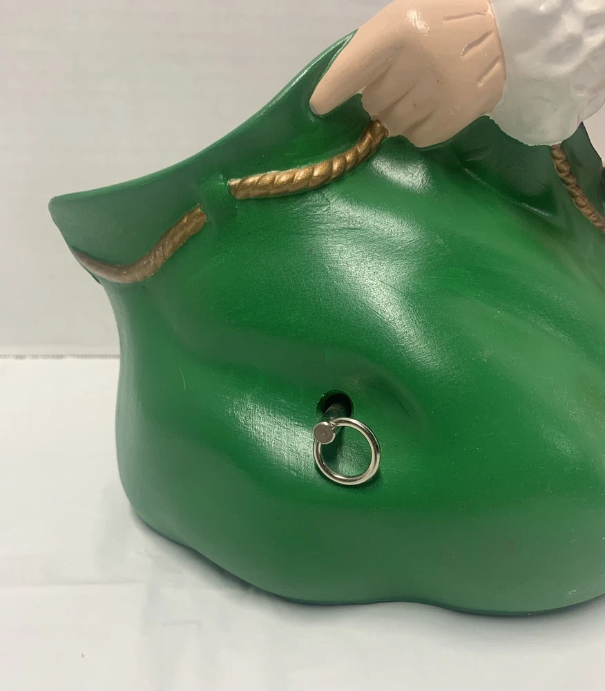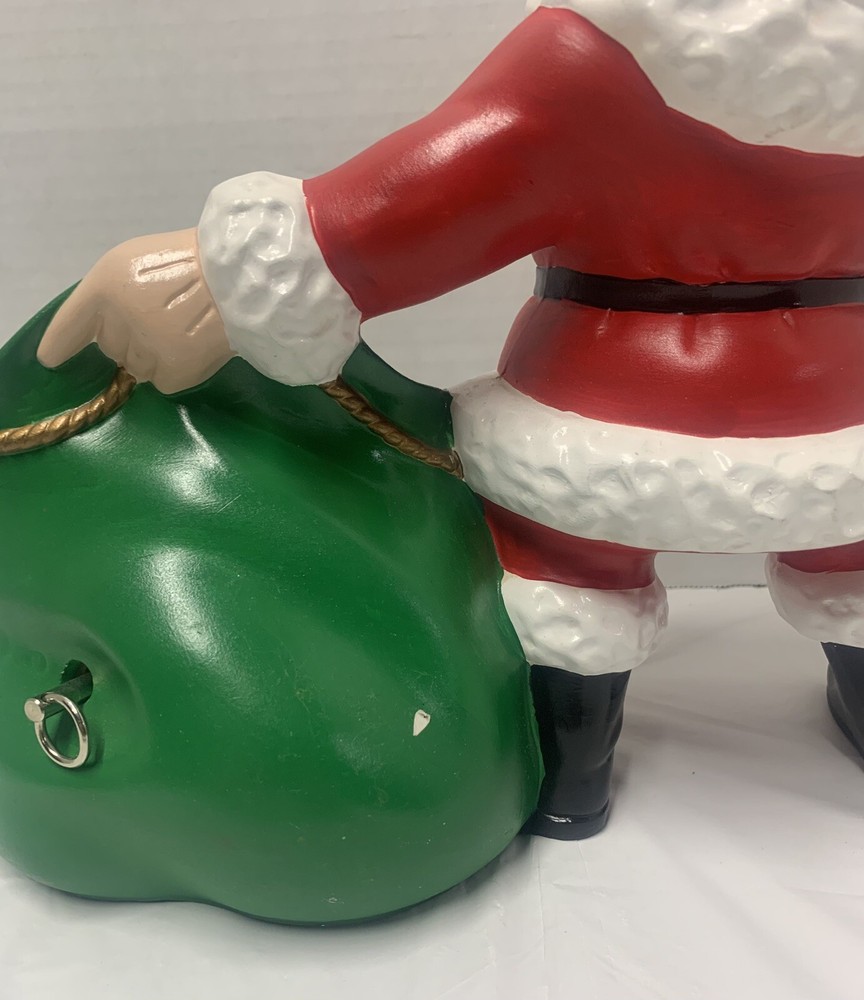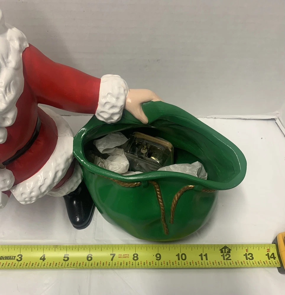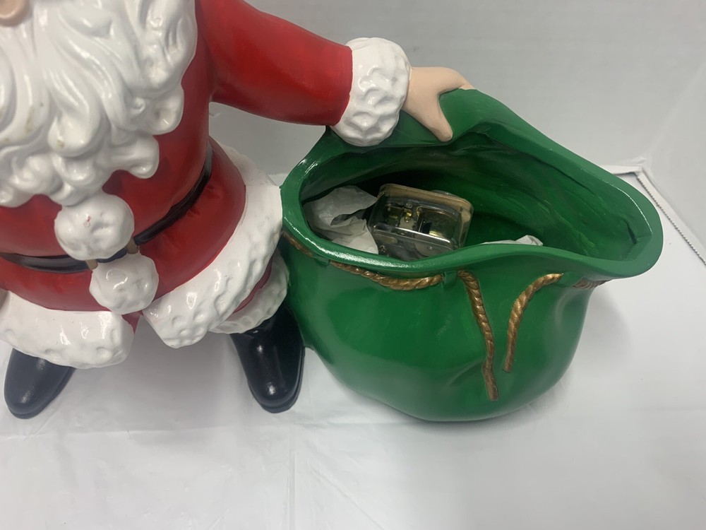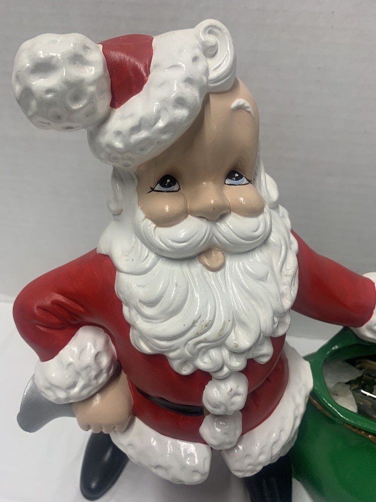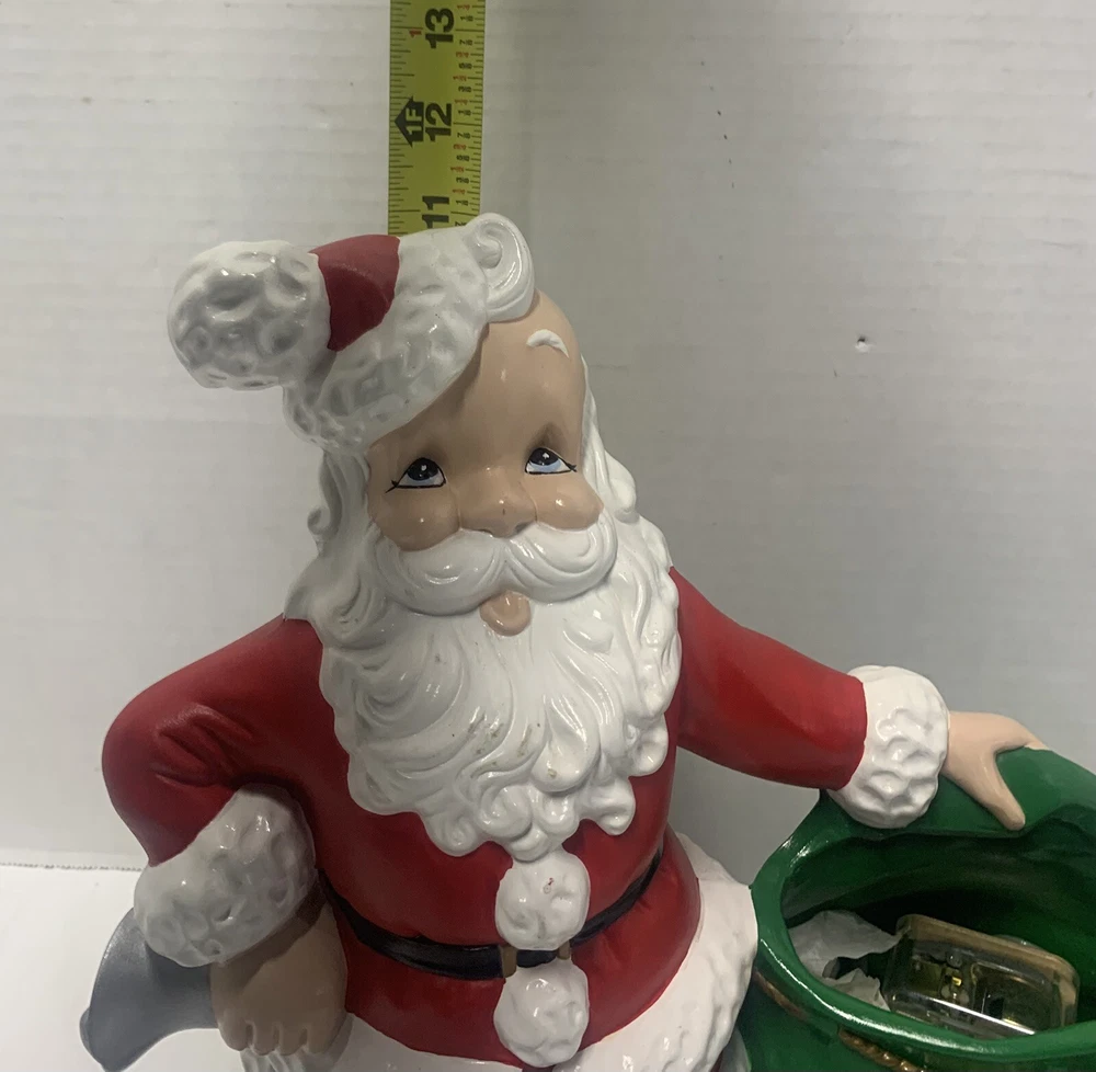 eRY NICE Porcelain MUSICAL Santa Clause with bags. Wind-Up MUSIC BOX is inside of bag and works GREAT. Plays “JINGLE BELLS”. Has one Small chip on the bag back that Doesn’t affect a thing (see picture). This is a GREAT PIECE to add to your Vintage Holiday Decor. SEE PICS