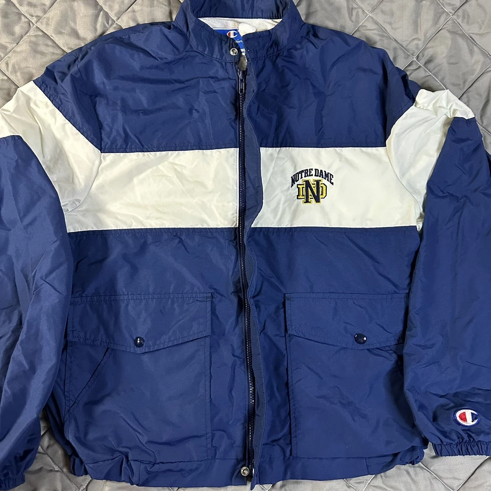 Item for Sale: VINTAGE Champion Notre Dame Fighting Irish Jacket Size: Adult Men's Large (L) Good used condition. This item out via USPS Priority Mail with a tracking number for confirmation. Expect a FAST delivery, as I ship items out EVERY DAY. Please message me with any questions you may have I answer most questions immediately! All items cleaned per eBay policy.