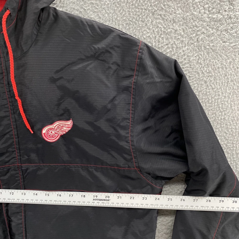 VINTAGE Detroit Red Wings Jacket Men Medium Black Majestic Fleece Lined Wind 90s Jacket is in good condition. Please see pictures for measurements and a better idea of condition. *true measurements may differ from tag sizing* Flaws: - spots on front Feel free to ask any questions you have about the item and I will respond asap.