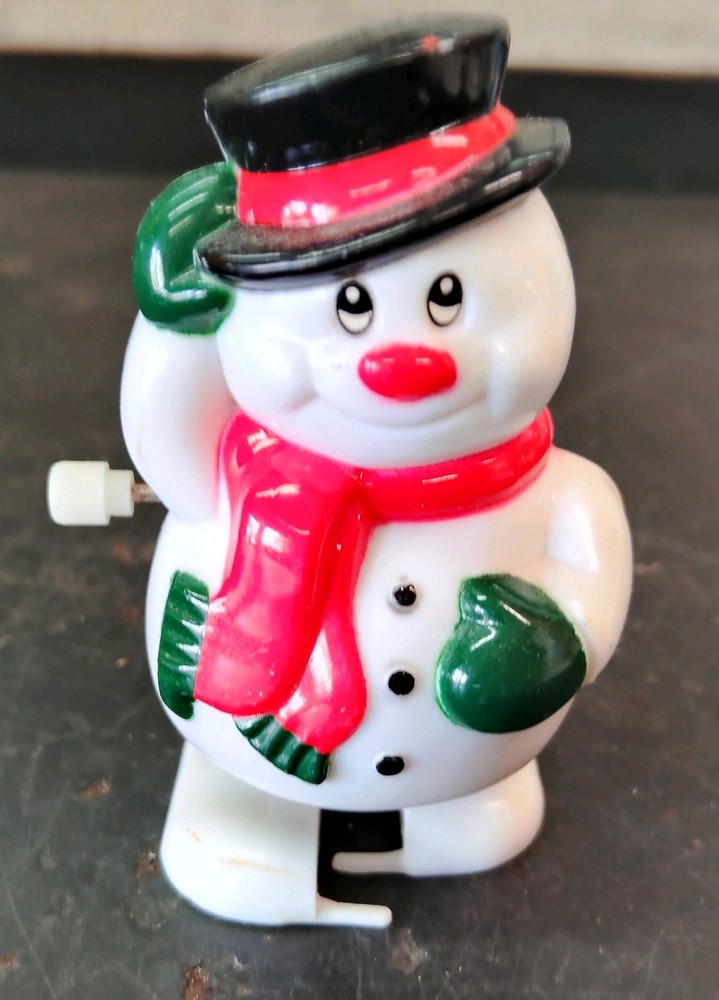 VINTAGE Fun World 3" Holiday Snowman Wind-Up Toy Scarf Top Hat Mittens Christmas. Condition is Used. Shipped with USPS Ground Advantage.