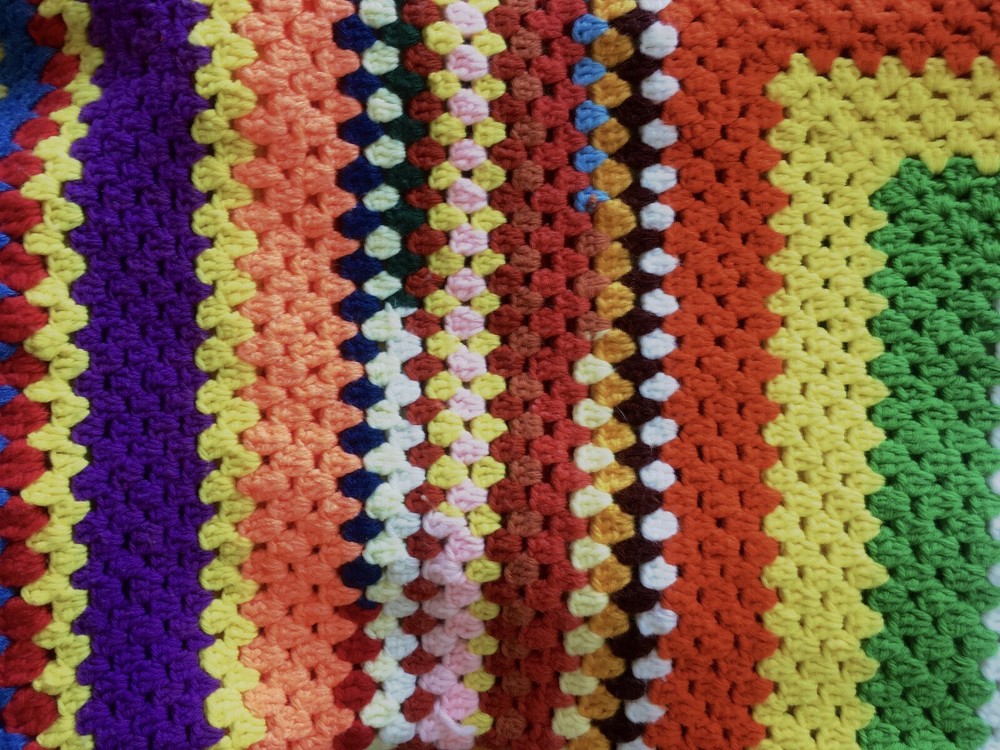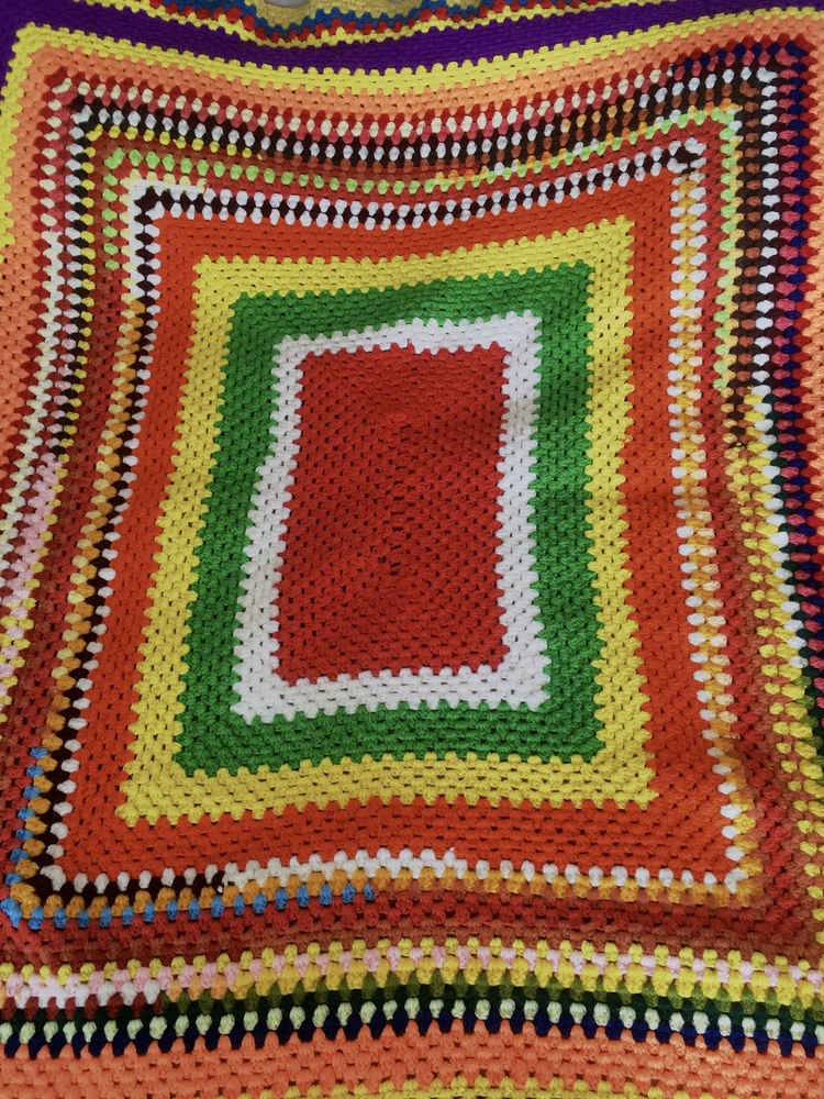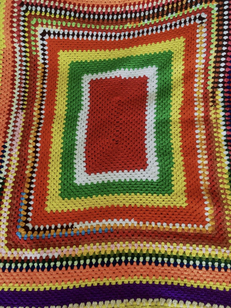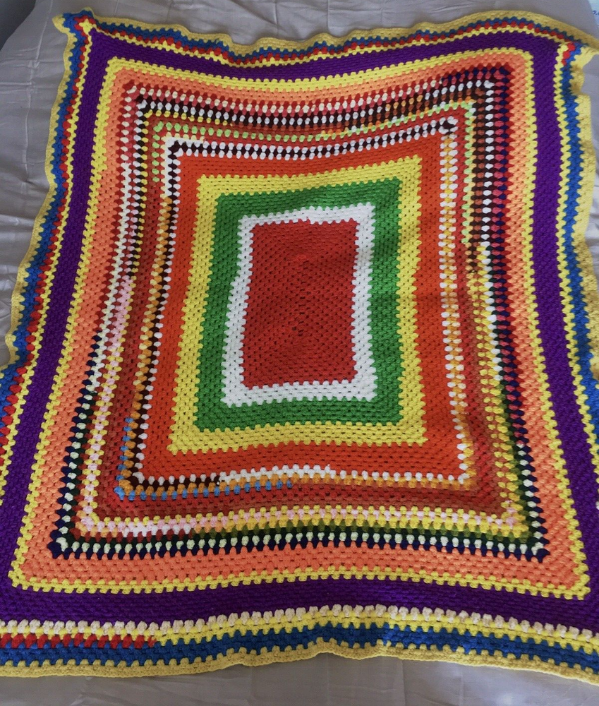 VINTAGE Granny Throw Blanket Colorful Hand Knit 53”x 62” See all photos.