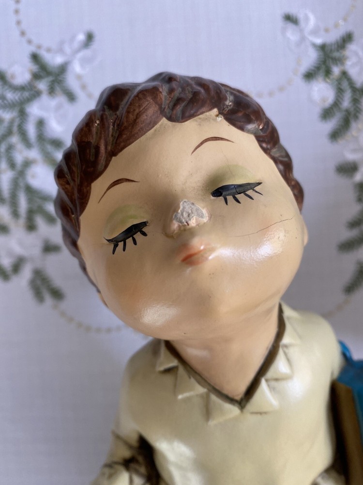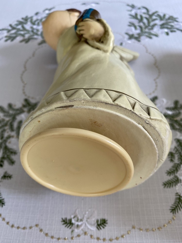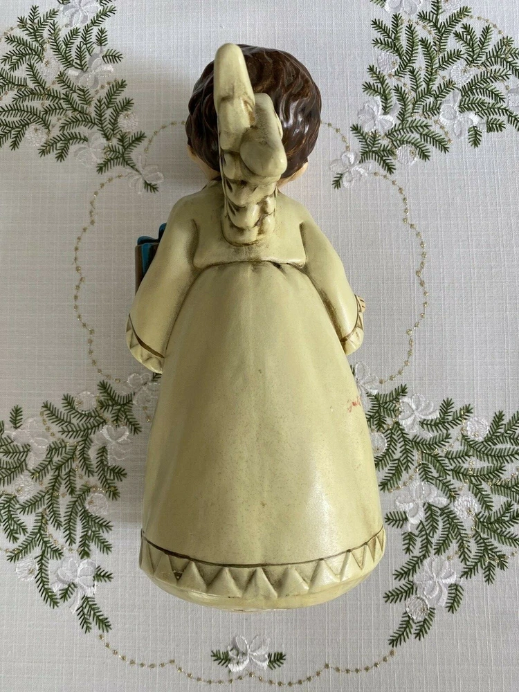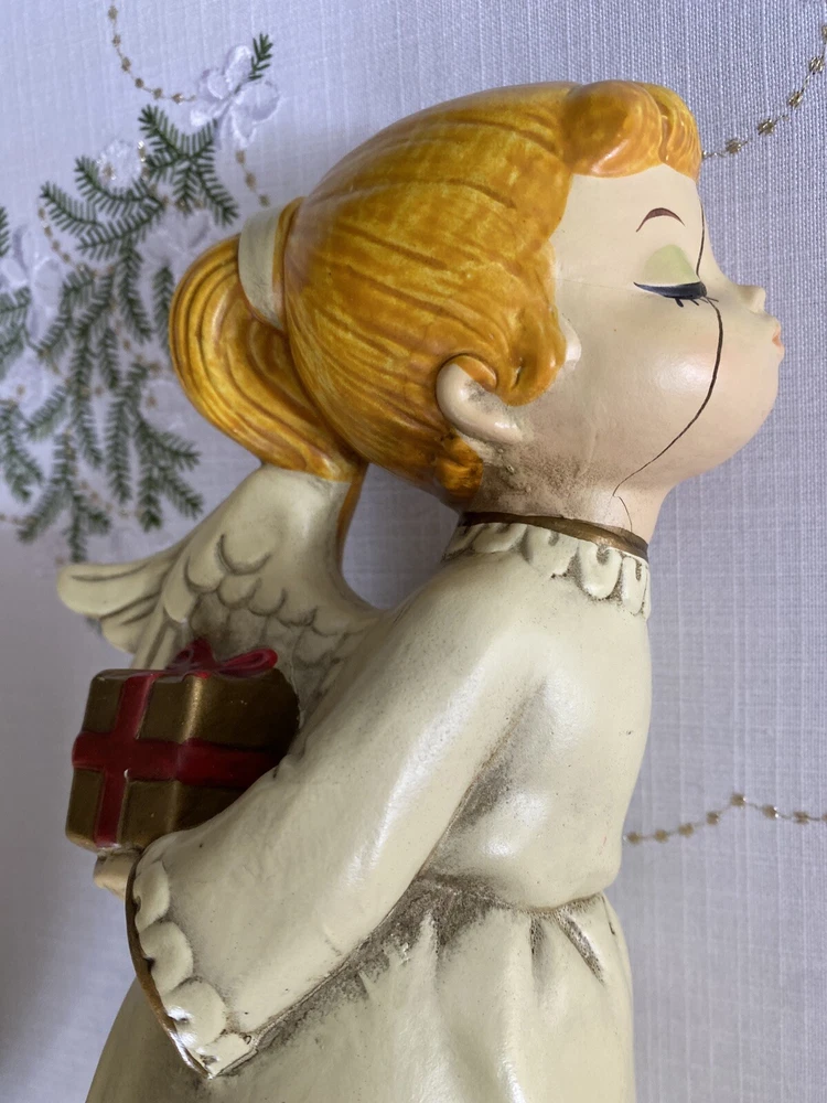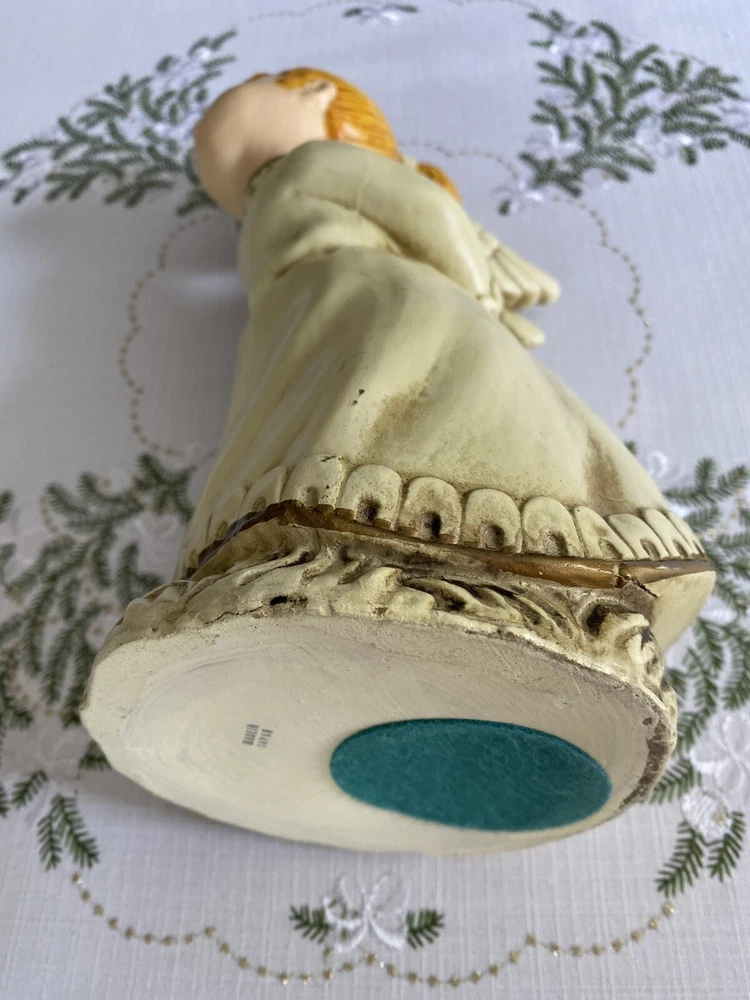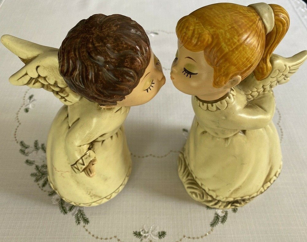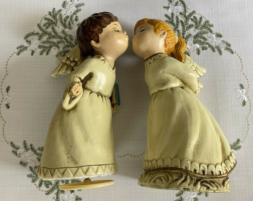 PAIR OF VINTAGE KISSING ANGEL FIGURINES ~ 1960'S JAPAN ~ They are chalkware/paper mache figurines from 1969. Wind up musical boy angel is over wound and does not work. I've never checked to see if he could be repaired. Both have heat exposure damage from attic storage :-( It gives them vintage character! Please review photos and if you need additional photos or have questions please do not hesitate to message me. Shipped Economy THE FINE PRINT ~ SERIOUS BIDDERS ONLY PLEASE Winning bidder must pay within 3 days of auction end INTERNATIONAL BUYERS I use the eBay International Shipping Program for all international shipments. I do not sell international outside of eBay International Shipping Program which includes if the buyer's registered address is outside the US (regardless of the delivery address for the item) COMBINED SHIPPING I will combine shipping on multiple purchases if it is economical and can be safely shipped to the buyer. Please use the shopping cart and request an invoice before paying. You will not be able to request this from the app on your phone or tablet. You are only able to request a total from your laptop or desktop. I cannot refund any overpaid shipping after payment is made. RETURNS 30-day returns are accepted and I also offer free shipping on some of my items; however, due to increases in carrier shipping costs if you decide to return an item, costs associated with original and return shipping are non-refundable. The item must be returned in original condition and packaging unless damaged during the shipping process. If an item is damaged during shipping, please contact me asap and I will determine if an insurance claim should be filed with carrier. ABOUT MY STORE I am a small-scale seller on e-bay, selling my own personal items along with additional items from family members and close friends. I have been buying and selling on e-bay for over 20 years and understand how satisfying it is to receive the item you were hoping for and how disappointing it is when an item does not meet expectations. I do strive for 5 Star feedback; so, please reach out to me with any questions or to request additional photos prior to bidding or purchasing by messaging me thru e-bay messaging. Thank you for looking and for your consideration!