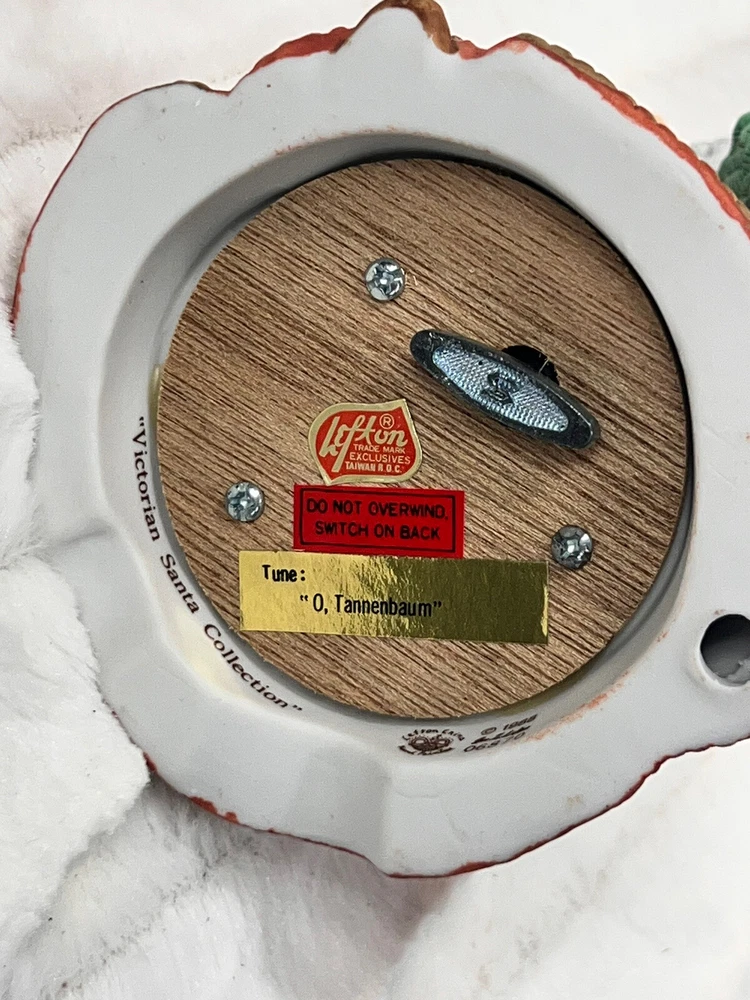 This adorable Lefton music box figurine is a charming holiday treasure! The vintage Santa design is beautifully detailed, and the "O Tannenbaum" melody plays clearly. Perfect for collectors or as a festive decor piece—love the nostalgic feel!