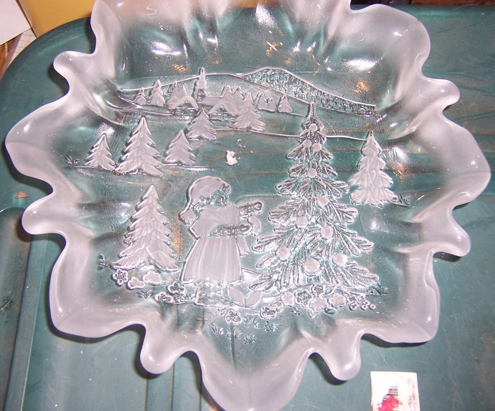 **************************************** LOT OF THREE CHRISTMAS ITEMS GLASS DISH/CERAMIC ANGEL ORNAMENT/CERAMIC WINDCHIMES GLASS DISH MEASURES 9 INCHES IN DIAMETER HAS SCALLOPED FROSTED EDGES BEAUTIFUL RAISED DESIGN WINTER SCENE PERFECT FOR CANDY, SNACKS, ETC. CERAMIC ANGEL ORNAMENT IS FROM SEASONS OF CANNON FALLS MEASURES 5 INCHES GOLDEN HAIR AND GOLD HEMLINE EXCELLENT VINTAGE CONDITION SNOWMEN WINDCHIME ORNAMENT IS RUSS-MADE IN TAIWAN THREE COLORFUL SNOWMEN HANG FROM A GREEN TOP EXCELLENT VINTAGE CONDITION ************************************************ PLEASE NOTE: Our home is completely SMOKE FREE, BUT PET FRIENDLY! FREE SHIPPING ONLY to the U.S. and through Global Shipping Program. Paypal payment must be made Within 3 days of auction end unless prior arrangements have been made between buyer/seller. Item will ship within 24 hours of cleared payment. I am a fair and honest seller. Returns are gladly accepted . If you have any problem with a purchase, please email and we can resolve. Please leave feedback as receipt confirmation of your purchase. I will promptly return the favor . Thank you for checking my listings STOP BACK ANYTIME!