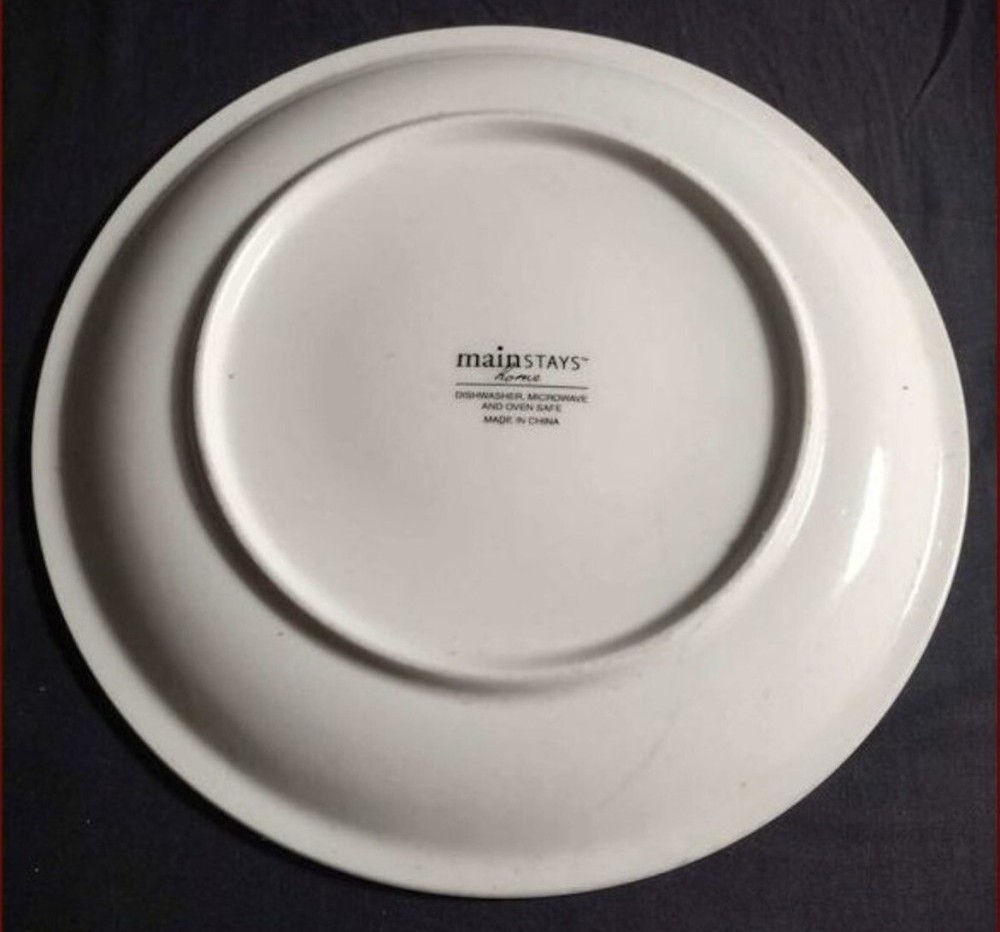 Brand : Mainstays Set of 2 Dinner plates Cut apple seeds pattern dinner plates Size :10 7/8” Excellent condition