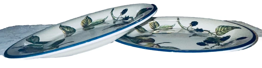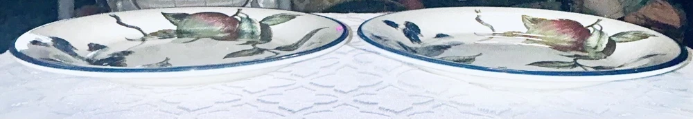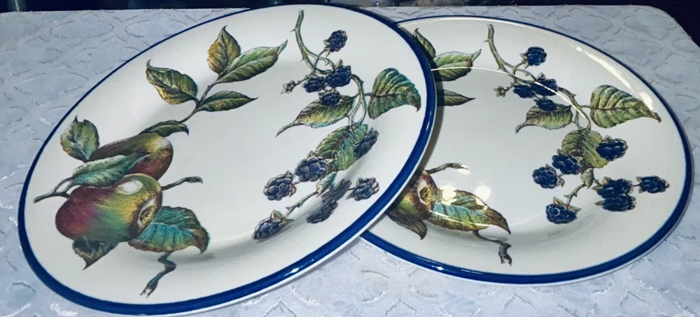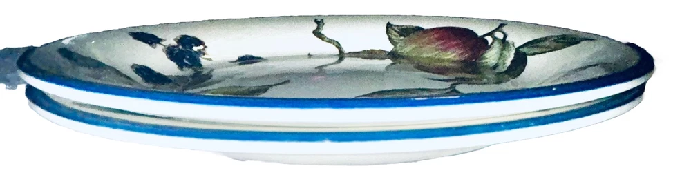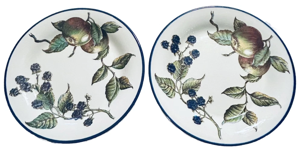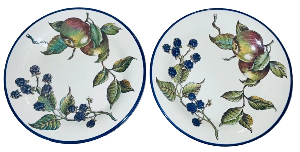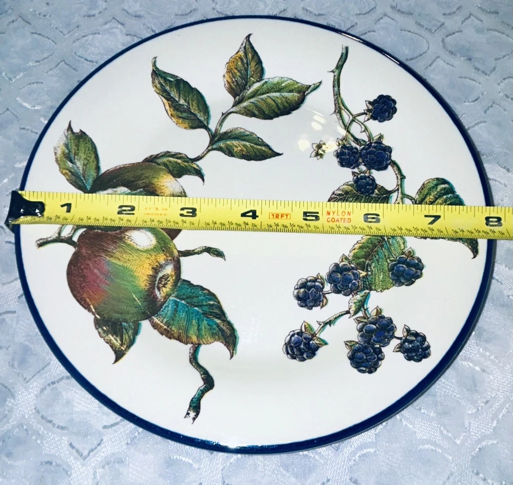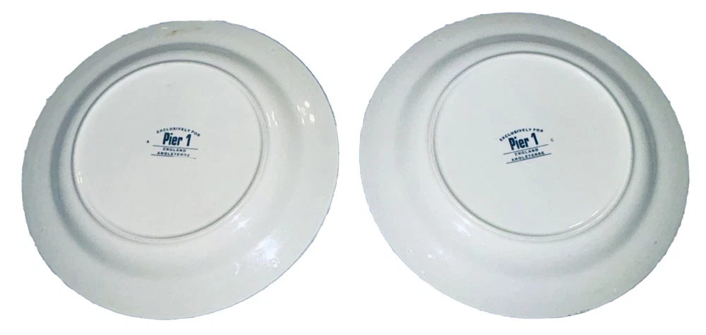 Add a touch of vintage charm to your dinnerware collection with these beautiful fruit salad plates from Pier 1. The set includes two round ceramic plates featuring a colorful MacIntosh fruit pattern, perfect for all occasions. These plates are stackable and decorative, and have a glossy finish that adds to their art deco style. The plates were made in England in the late 20th century using earthenware production technique. They are an original Pier 1 product and have a printed backstamp. These plates are perfect for both teens and adults, and can be a great addition to any collection of decorative cookware, dinnerware, and serveware. No chips no cracks. Has utensil marks. Good vintage condition. The plates are in very good used condition with wear appropriate to age and use(check photos), Measurements listed on above photos Ships with tender loving care Thank you for stopping by, stay safe Box79x4
