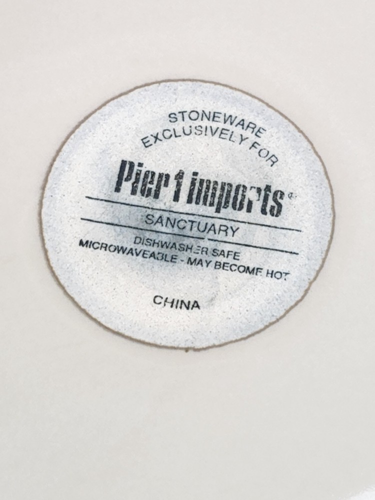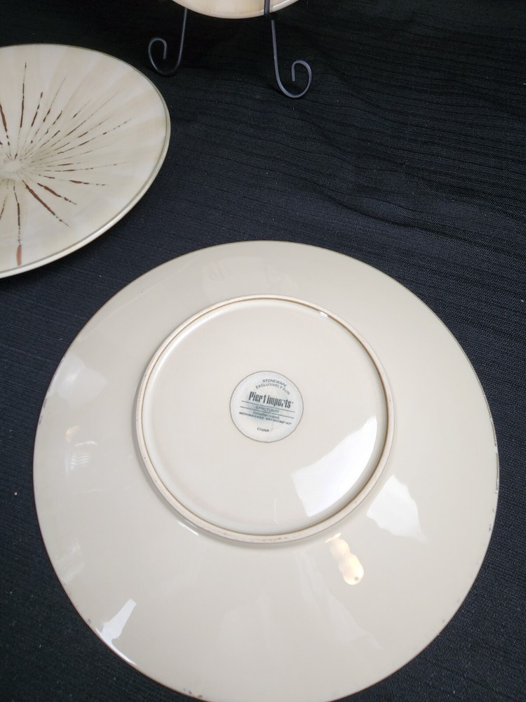 THIS AUCTION IS FOR A SET OF 3 PRE OWNED IN EXCELLENT CONDITION PIER 1 SANCTUARY 11.5" DINNER PLATES THESE PLATES ARE IN EXCELLENT CONDITION NO CRACKS AND NO CHIPS AND EXTREMELY LIGHT TO NO SCRATCHES OR UTENSIL MARKS THEY ARE MICROWAVE AND DISHWASHER SAFE BUT MAY BECOME HOT IN MICROWAVE PLEASE NOTE THAT THESE PLATES ARE HEAVY WEIGHT EACH PLATE IS APPROX 2.5 LBS COMES FROM A SMOKE FREE HOME THANK YOU FOR LOOKING AND HAPPY BIDDING SORRY I DO NOT SHIP OUTSIDE OF THE UNITED STATES TENNESSEE RESIDENTS ARE SUBJECT TO SALES TAX **PLEASE NOTE THAT SHIPPING COST IS NOT JUST FOR THE POSTAGE BUT ALSO FOR THE PACKING MATERIALS USED TO PROTECT THE ITEM DURING THE SHIPPING PROCESS** THIS ITEM WILL BE PACKAGED CAREFULLY WITH BUBBLE WRAP ***PLEASE NOTE THAT I TRY MY BEST TO GET ITEMS PACKAGED AND SHIPPED OUT WITHIN 2 DAYS BUT I DO HAVE UP TO A 4 DAY HANDLING TIME ON MY AUCTIONS*** I NO LONGER SHIP ITEMS VIA UPS DUE TO THERE INABILITY TO TAKE CARE IN THE HANDLING OF PACKAGES I SHIP USPS ONLY NOW...SORRY FOR ANY INCONVEINCE THANKS