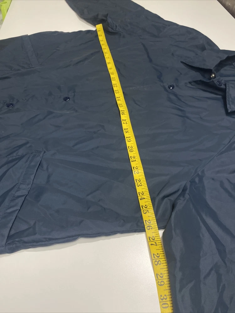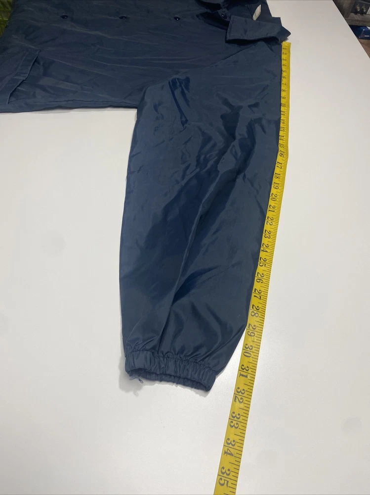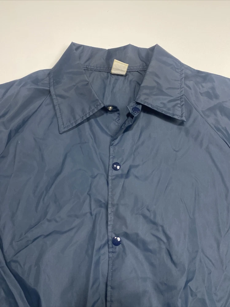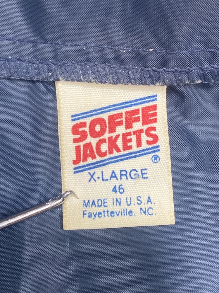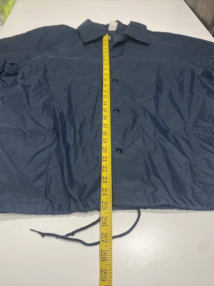 Made in the USA this vintage Soffe windbreaker jacket is a must-have for any fashion-conscious man. Made from high-quality nylon, this jacket is both lightweight and wind-resistant, making it perfect for walking on the island or any outdoor activity. The jacket features a solid blue color, a collared neckline, and a snap closure. In addition to its stylish design, this jacket also boasts several practical features, including pockets for storage and a regular fit for comfortable wear. It is machine washable and suitable for all seasons. This jacket is a rare find, perfect for anyone who loves vintage clothing or wants to add a touch of island style to their wardrobe. We Measure all of our Clothes and the Measurements are in the Photos of the listing. Please review all photos for condition issues as well as the actual measurements Thank You for looking at this item. if you have any questions or need more information please don't hesitate to reach out and ask. Rocky Bottoms is a Family owned resale business based in San Antonio Texas and is run by a father and son team. Thanks for supporting people with disabilities and empowering them through work. Rocky Bottoms Great Resale items at Rock Bottom Prices!