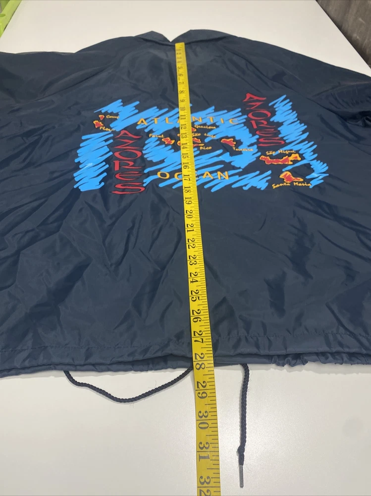 This vintage Soffe jacket is a fantastic find! The lightweight nylon makes it super comfortable yet durable, perfect for breezy days or outdoor adventures. I love the classic Azores Island map print—it adds a cool, retro vibe. The snap closure and collared neckline give it a sharp look, while the pockets are super handy. Fits true to size, and the fact that it's machine washable is a huge plus. Made in the USA with great quality—definitely worth adding to your wardrobe!