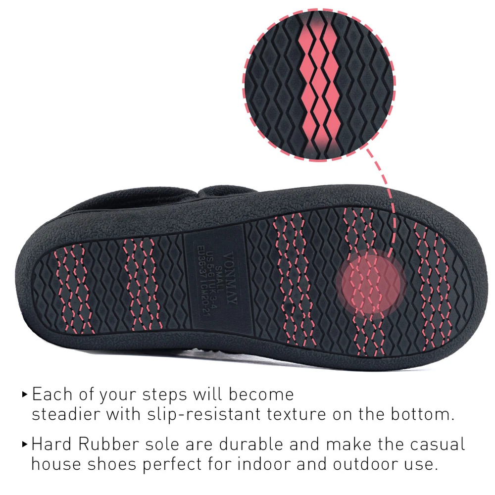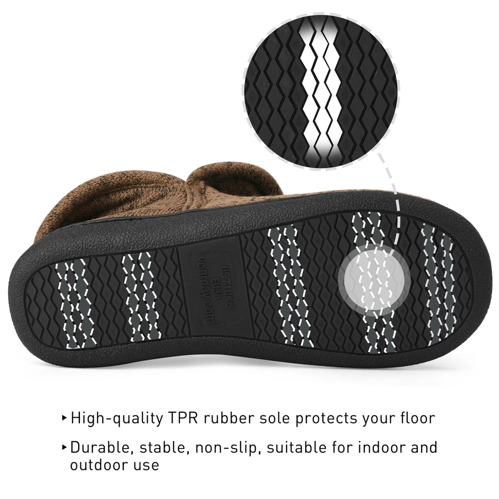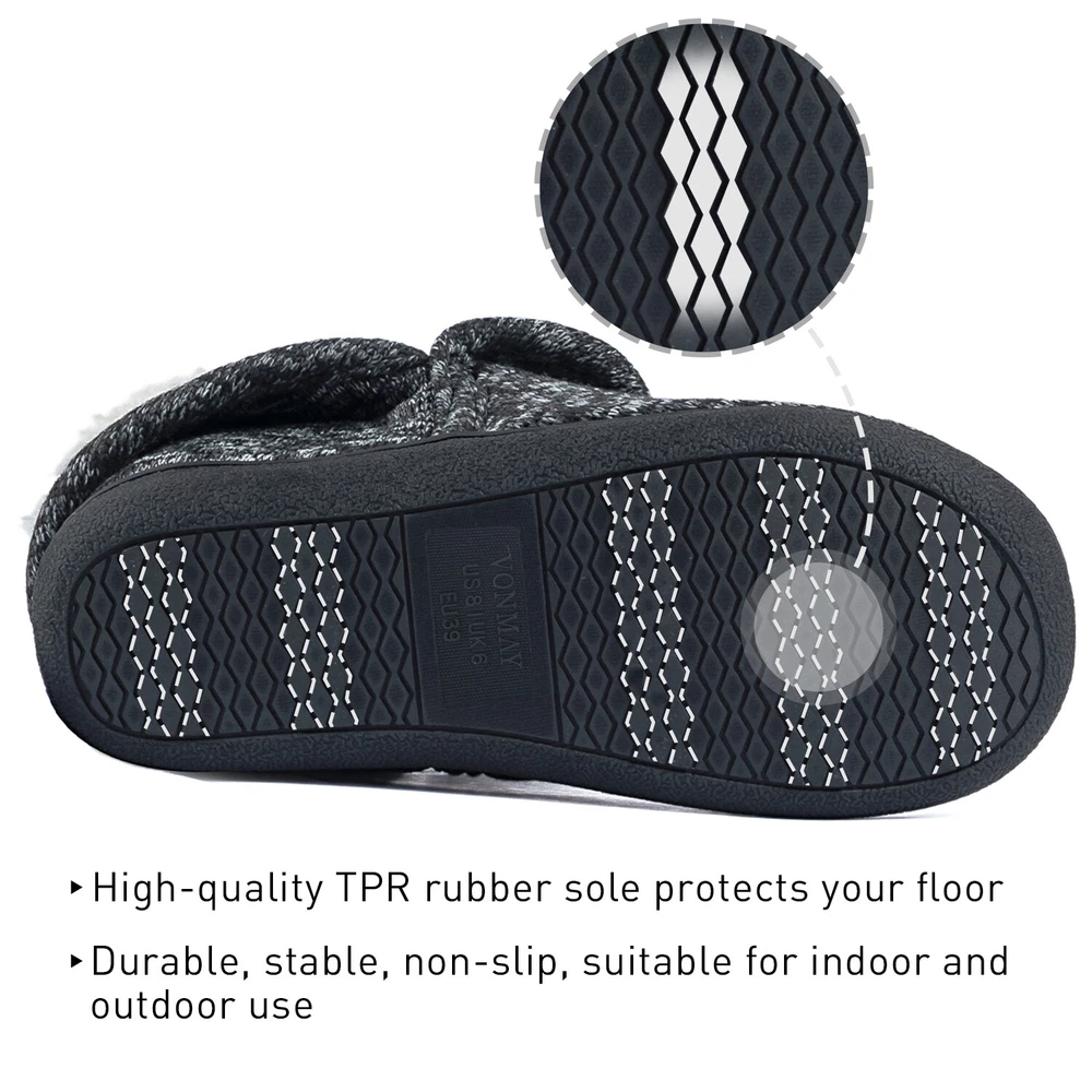VONMAY Womens Comfy Boots Slippers Memory Foam Ankle-High House Shoes Outdoor 👉 If you have a wider feet, we suggest you to choose one in larger size , because of soft faux fur lining. Unique Foldable Collar Design * Foldable fleece collar design, covers your feet and ankles, provides you extra warm & comfortable. * Keep the heat firmly locked, even in the cold weather, the temperature inside the slippers is also close to human body. * Soft & comfotable side seams and thicker foam, you can enjoy your this Bootie Slippers for a very long time. * According to the feedbacks, we had improved quality and fix the size issue, please choose your normal size. * You might feel a bit snug at first due to thick lining, you will feel more comfortable cause the slippers stretching to your size. A Great Gift to Pamper Your Tired Feet 🥳 Sturdy material with popular style, the slipper is perfect for men of all ages and lifestyles. They are also great choice as a gift to your wife, mom, daughter, girlfriend and friends. Why Choose VONMAY Women Plush Fleece Booties Slippers? * Super warm wool-like inner & cotton knitted upper, plus a durable and comfortable sole, makes this a perfect option for both indoor and outdoor use. * The foldable collar design covers your ankle for extra warmth and comfort, you'll never want to take them off. * Fully machine-washable for quick and convenient clean up as needed. Payment Delivery details Terms of sales About us Contact us Payment -- You could pay with your local currencies,usually,we refund to our customers with dollars. Delivery details -- Free shipping to the US customer(Main Land).We take great care packing every item to ensure safe shipment. -- To give you a rough estimate of when to expect delivery, after an order is placed online, our shipping department usually takes 1-2 business days to prepare the package for delivery. -- The delivery process then takes between 3 to 7 business days. Terms of sales -- We accept return,have this products without hesitation.If you do not like this item you received or the package have some flaw,you can feel free to contact us,we will sincerely to help you solve the problems. - - We will pay the shipping fee if you received bad/wrong/broken items. - - You may take some photos or video to show the problems when you contact us. About us We strive to provide all our customers with an ultimate shopping experience. From browsing to checking out, we want to make it easy for you to find and get what you want with amazing savings! Contact us --Please feel free to contact us if you have any questions, we're willing to help you solve the problems.