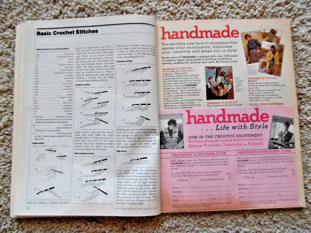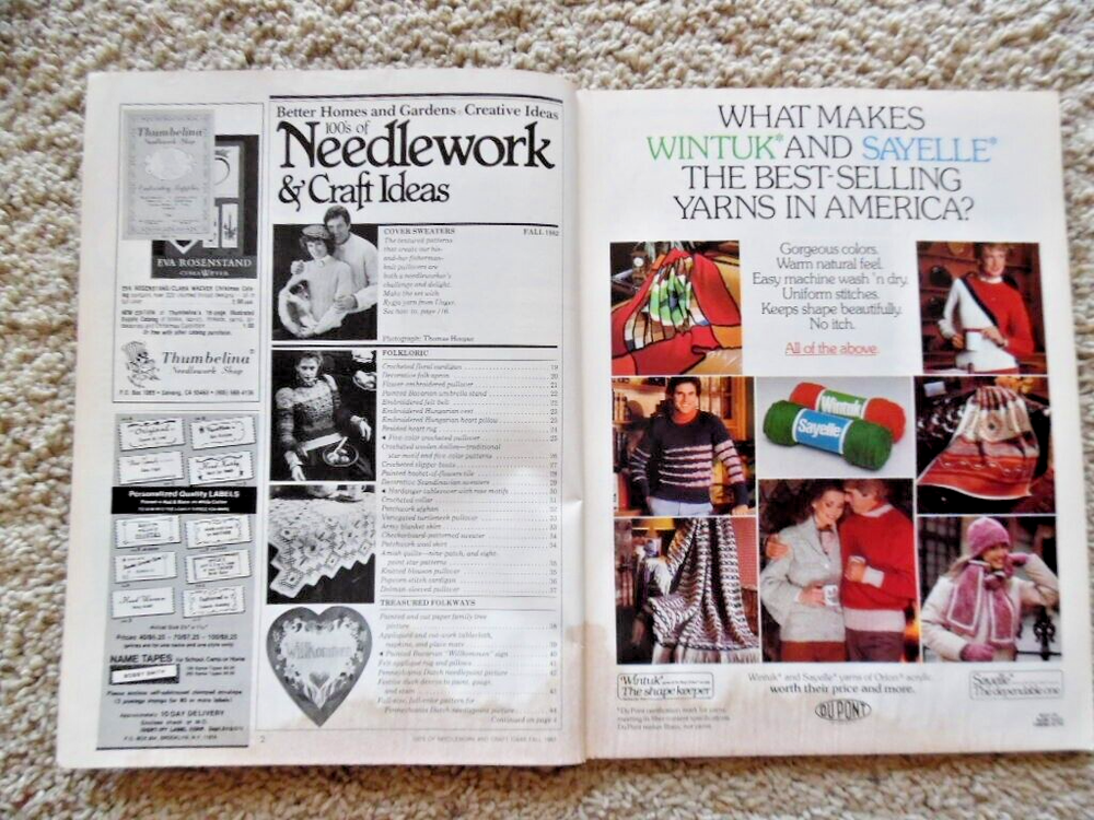 VTG 100's of Needlework & Craft Ideas - Better Home & Gardens Magazine Fall 1982 "Better Homes and Gardens - Creative Ideas" 144 pgs AMERICA'S COUNTRY BEST - Sweaters to knit and crochet; folk paintings, quilts, rugs, stitchery BONUS: Needlepoint chart, page 44 HOLIDAY MAGIC - Decorations, fashions, and trims COVER KNITS - Special how-to, page 116 FULL-SIZE PATTERN PORTFOLIO Please see pics and ask any questions. Covers have normal wear, some pages have yellowed some, some pages have water spotting (see pics) but is a great, solid magazine. May have slight vintage smell up close. Stored in smoke-free home for past 20+ years. No international shipping.