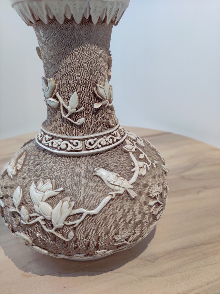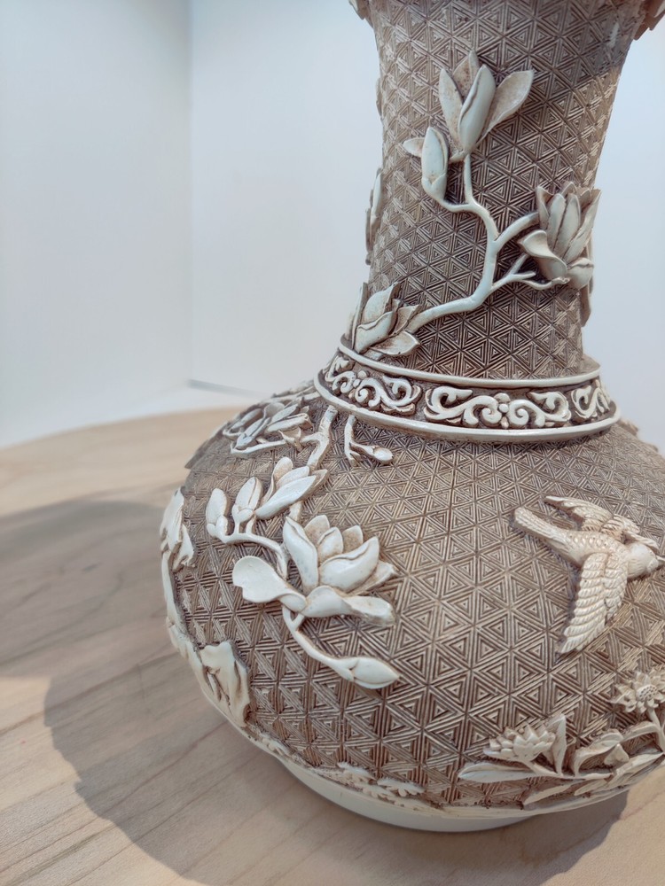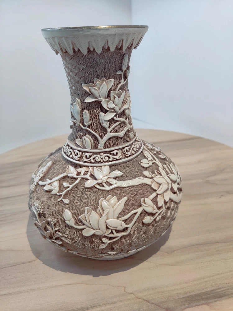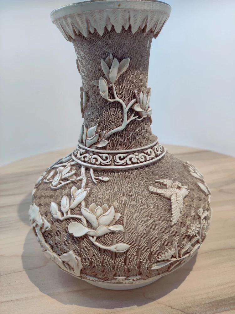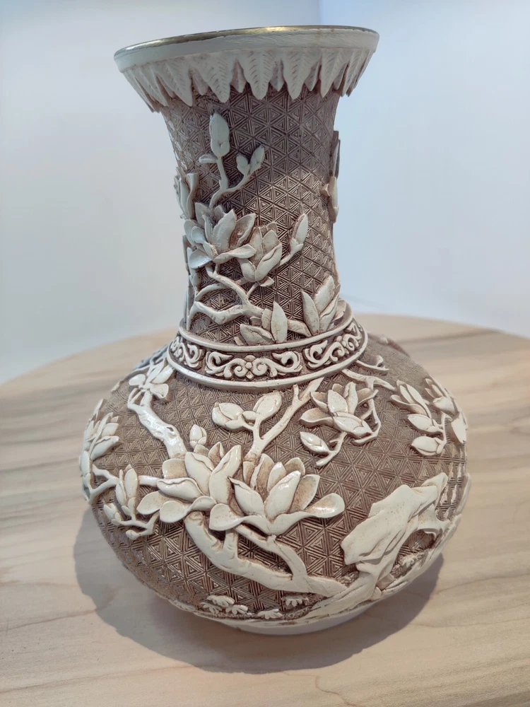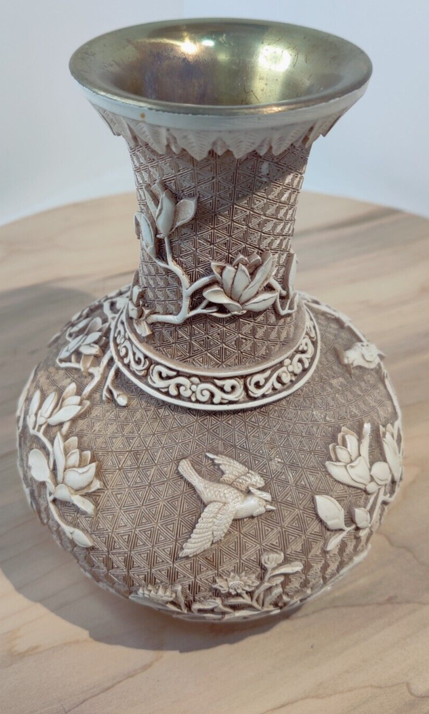 VINTAGE 1982'S BIRDS DESIGN OFF WHITE OVERLAY RESIN OVER BRASS VASE. BY IVORY DESIGN 1982 ARNART DESIGNS MADE IN TAIWAN 7" TALL PLEASE ASK QUESTIONS PRIOR TO PURCHASE, SEE PHOTOS FOR MORE DETAIL. THANK YOU FOR LOOKING PLEASE SEE MY OTHER LISTINGS AS I LIST DAILY WITH MORE VINTAGE ITEMS TO COME. HAVE A FABULOUS DAY #3542 11/23 S- 5 B-4