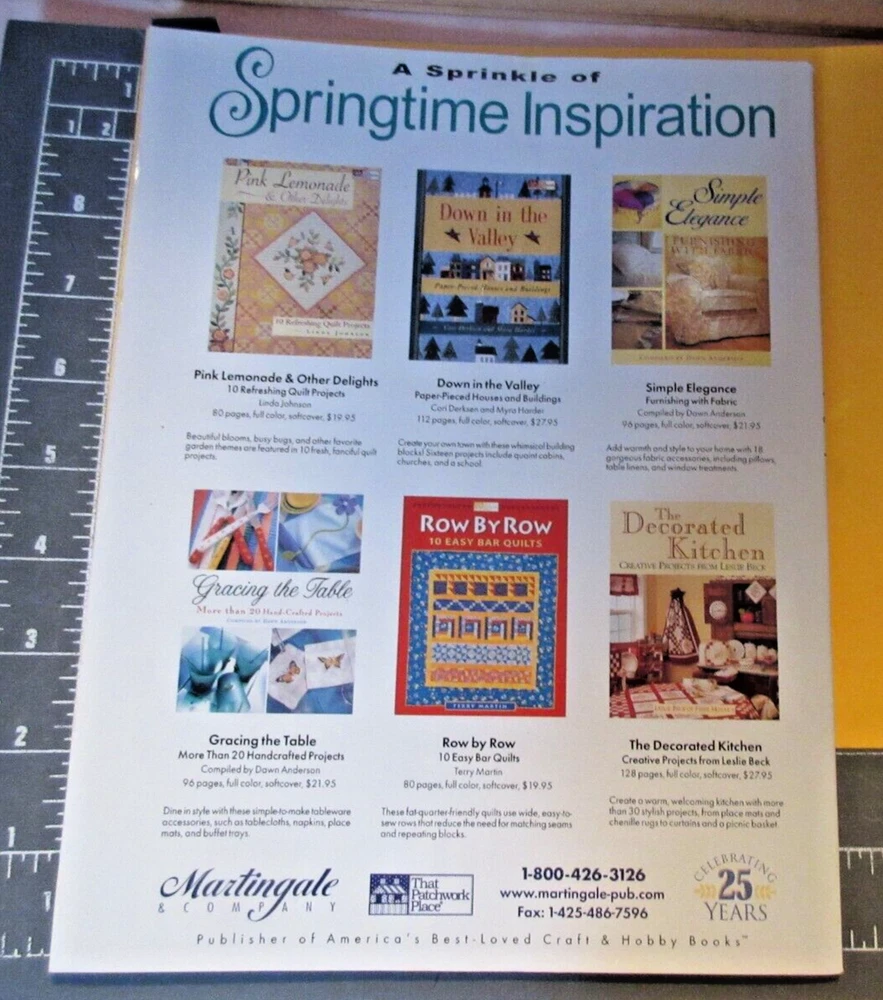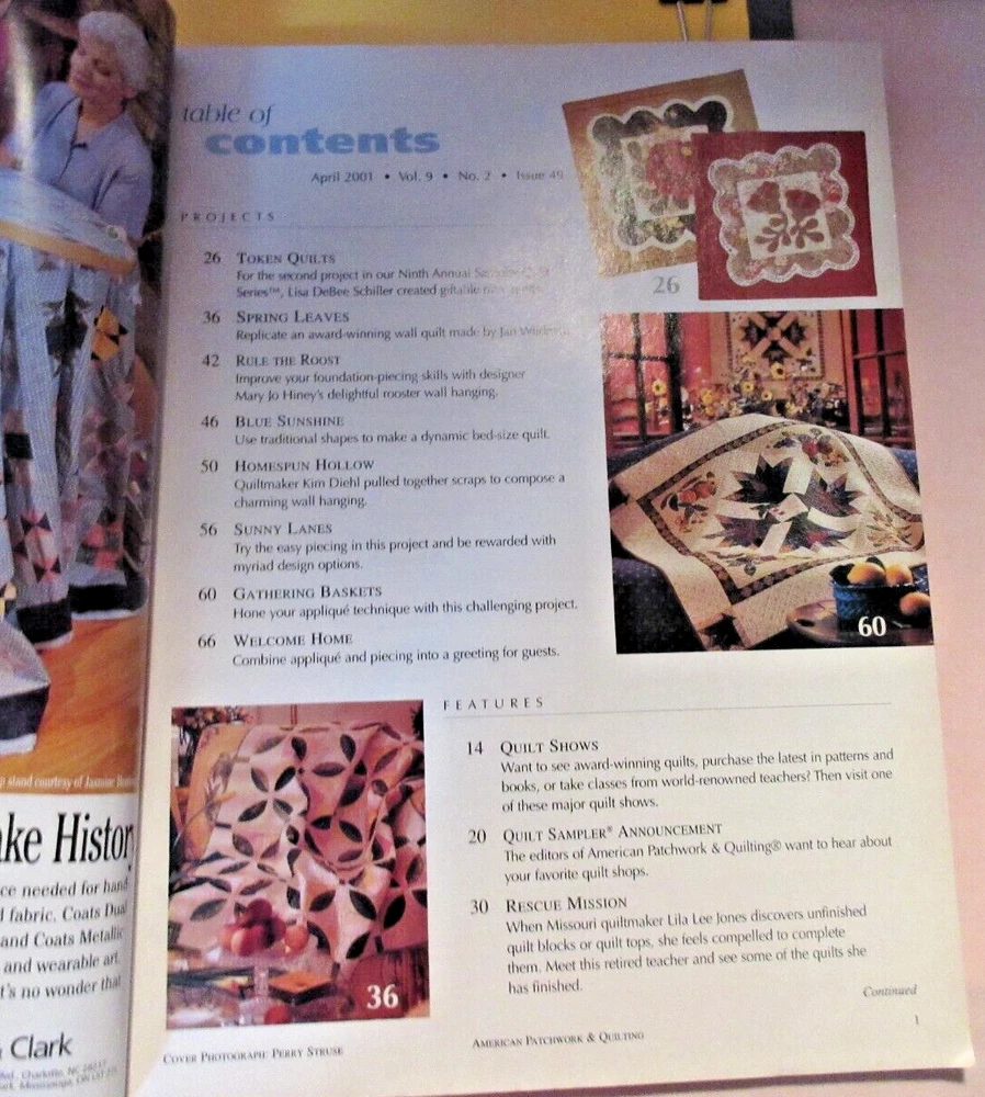 COLLECTIBLES: VTG. 2001 April Better Homes & Gardens American Patchwork & QUILTING MAGAZINE-#49-(Rule the Roost + Sunny Lanes-Easy Block) +Large Patterns Pull-out (un-cut): Token Quilts + Spring Leaves + Rule the Roost + Blue Sunshine + Homespun Hollow + Gathering Basket + Welcome Home) Pgs.80-Good-FS Examine all pictures carefully. Don't hesitate to ask questions before bidding. Click into individual pictures for much bigger picture and to see details more clearly. Please check what you are asked to pay for shipping. That is a part of the actual cost, and set at a rate to cover materials and postage. See shipping terms for a bit more of an explanation. Combined shipping with a request for an invoice is great and given when possible. ____________________________________________________________________________________________________________________ FROM MY "STASH": BOOKS, MAGAZINES, BOOKLETS, PATTERNS, CHARTS have been purchased NEW & USED, generally, One Owner , and paged, read & in storage. No notes, writings or personalization's, unless so noted. Age, handling and the patina of time can be found with vintage items. Some of the items will have corner-tip, edge burrs, dog-eared pages from ME, Cover-Pages-Edge Chipping, Creases, etc. All pages will be intact to spine with NO dropping or missing pages. MY NOTEs: I have pursued, reviewed & stored some in plastic-insert sheets if they will fit, others have been in manila folder or envelopes. Most of my selection is in the GOOD, GOOD+, GOOD++ categories. Some of these truly are in like new condition and could be offered as "gifts" if that is what you have in mind. All have readability to me, including any other faults as listed in the listing. If I wouldn't want to DIY from it myself, I won't list it. Please review& look at the pics, ask any necessary questions prior to bidding & purchasing. Thank You. C.E.J. PAGE CONDITION: Good. One-dog-eared pg. on my project. 4 notes on pg. 67 in ink. Clean copy. BINDING: Commercial binding. No staples. All pages intact with No missing/dropped or damaged. Pattern intact. SPINE: Secure and NOT broken/cracked. COVER CONDITION: Good. Shows only handling. Secure front/back to binding. No mailing label. OTHER: R ESIDENT RECEIVED NEW, "LIGHTLY PAGED" OR PURCHASED FROM NEWSTAND. SOME MAGAZINES ARE VINTAGE/COLLECTIBLES WITH AGE/STORAGE. ITEMS WILL BE BACKED WITH CARDBOARD & THE MAILING ENVELOPE WILL BE MARKED "PLEASE DO NOT BEND OR FOLD ~ THANK YOU" FOR MAILING PURPOSES. ITEMS ARE FROM A SMOKE & PET FREE HOUSE. THANKS FOR STOPPING BY MY STORE TO VISIT, BOOKMARK IT & FOLLOW ME AS I WILL BE LISTING ITEMS TO REDUCE "MY STASH" & FIND "FOREVER HOMES". THANK YOU. ENJOY. BEST 2U! C.E.J. "JUST IN CASE": UPON RECEIPT OF YOUR PURCHASE . . . . IF YOU HAVE ANY "CONCERNS OR UN-HAPPY", PLEASE CONTACT ME FIRST PRIOR TO YOUR LEAVING NEGATIVE FEEDBACK - I WILL WANT TO TRY AND WORK OUT A FAIR SOLUTION AS MY PERSONAL OBJECTIVE IS TO HAVE "HAPPY & CONTENT" BUYERS AND A "HOME" FOR THIS ITEM(S). THANK YOU IN ADVANCE FOR YOUR INTEREST AND UNDERSTANDING. COLLECTIBLES: VTG. 2001 April Better Homes & Gardens American Patchwork & QUILTING MAGAZINE-#49-(Rule the Roost + Sunny Lanes-Easy Block) +Large Patterns Pull-out (un-cut): Token Quilts + Spring Leaves + Rule the Roost + Blue Sunshine + Homespun Hollow + Gathering Basket + Welcome Home) Pgs.80-Good-FS