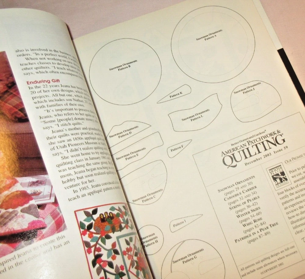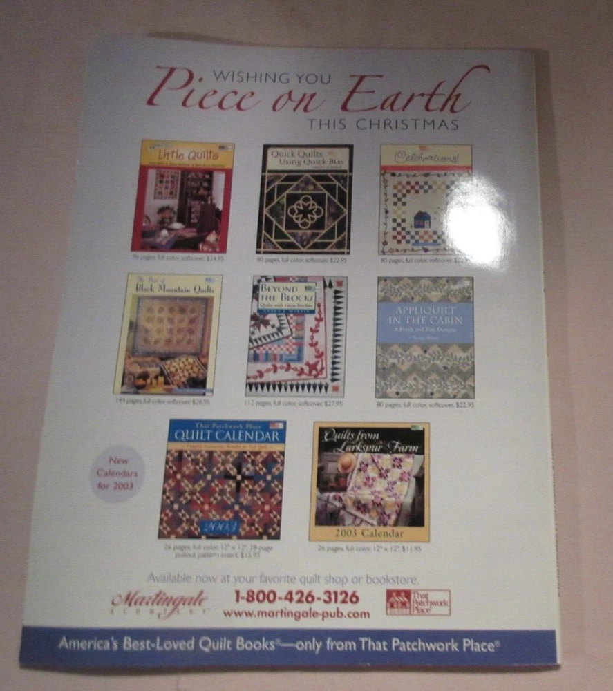 COLLECTIBLES: VTG 2002 DEC AMERICAN PATCHWORK & QUILTING-BETTER HOMES & GARDENS-ISSUE 59-Pgs.100- GOOD-FREE SHIPPING ~ PULL-OUT Pattern intact and Un-Cut Examine all pictures carefully. Don't hesitate to ask questions before bidding. Click into individual pictures for much bigger picture and to see details more clearly. Please check what you are asked to pay for shipping. That is a part of the actual cost, and set at a rate to cover materials and postage. See shipping terms for a bit more of an explanation. Combined shipping with a request for an invoice is great and given when possible. ____________________________________________________________________________________________________________________ FROM MY "STASH": BOOKS, MAGAZINES, BOOKLETS, PATTERNS, CHARTS have been purchased NEW & USED, generally, One Owner , and paged, read & in storage. No notes, writings or personalization's, unless so noted. Age, handling and the patina of time can be found with vintage items. Some of the items will have corner-tip, edge burrs, dog-eared pages from ME, Cover-Pages-Edge Chipping, Creases, etc. All pages will be intact to spine with NO dropping or missing pages. MY NOTEs: I have pursued, reviewed & stored some in plastic-insert sheets if they will fit, others have been in manila folder or envelopes. Most of my selection is in the GOOD, GOOD+, GOOD++ categories. Some of these truly are in like new condition and could be offered as "gifts" if that is what you have in mind. All have readability to me, including any other faults as listed in the listing. If I wouldn't want to DIY from it myself, I won't list it. Please review& look at the pics, ask any necessary questions prior to bidding & purchasing. Thank You. C.E.J. PAGE CONDITION: A FEW DOG-EARS, CRIMPED RIGHT TOP CORNER ON PAGES, BUT NO DROPED OR MISSING PAGES. NO PERSONALIZATIONS. PULL-OUT PATTERN INTACT AND NOT CUT. BINDING: COMMERCIAL-BOUND SPINE: NOT BROKEN COVER CONDITION: SHOWS HANDLING, PAGING, BUT IS IN GOOD CONDITIONS OTHER: R ESIDENT RECEIVED NEW, "LIGHTLY PAGED" OR PURCHASED FROM NEWSTAND. SOME MAGAZINES ARE VINTAGE/COLLECTIBLES WITH AGE/STORAGE. ITEMS WILL BE BACKED WITH CARDBOARD & THE MAILING ENVELOPE WILL BE MARKED "PLEASE DO NOT BEND OR FOLD ~ THANK YOU" FOR MAILING PURPOSES. ITEMS ARE FROM A SMOKE & PET FREE HOUSE. THANKS FOR STOPPING BY MY STORE TO VISIT, BOOKMARK IT & FOLLOW ME AS I WILL BE LISTING ITEMS TO REDUCE "MY STASH" & FIND "FOREVER HOMES". THANK YOU. ENJOY. BEST 2U! C.E.J. "JUST IN CASE": UPON RECEIPT OF YOUR PURCHASE . . . . IF YOU HAVE ANY "CONCERNS OR UN-HAPPY", PLEASE CONTACT ME FIRST PRIOR TO YOUR LEAVING NEGATIVE FEEDBACK - I WILL WANT TO TRY AND WORK OUT A FAIR SOLUTION AS MY PERSONAL OBJECTIVE IS TO HAVE "HAPPY & CONTENT" BUYERS AND A "HOME" FOR THIS ITEM(S). THANK YOU IN ADVANCE FOR YOUR INTEREST AND UNDERSTANDING. COLLECTIBLES: VTG 2002 DEC AMERICAN PATCHWORK & QUILTING-BETTER HOMES & GARDENS-ISSUE 59-Pgs.100- GOOD-FREE SHIPPING ~ PULL-OUT Pattern intact and Un-Cut
