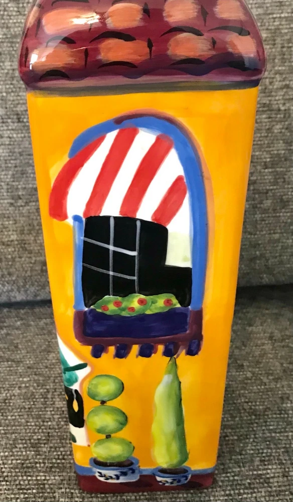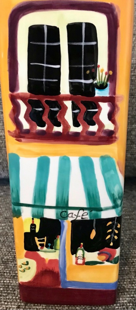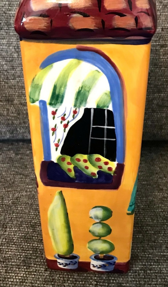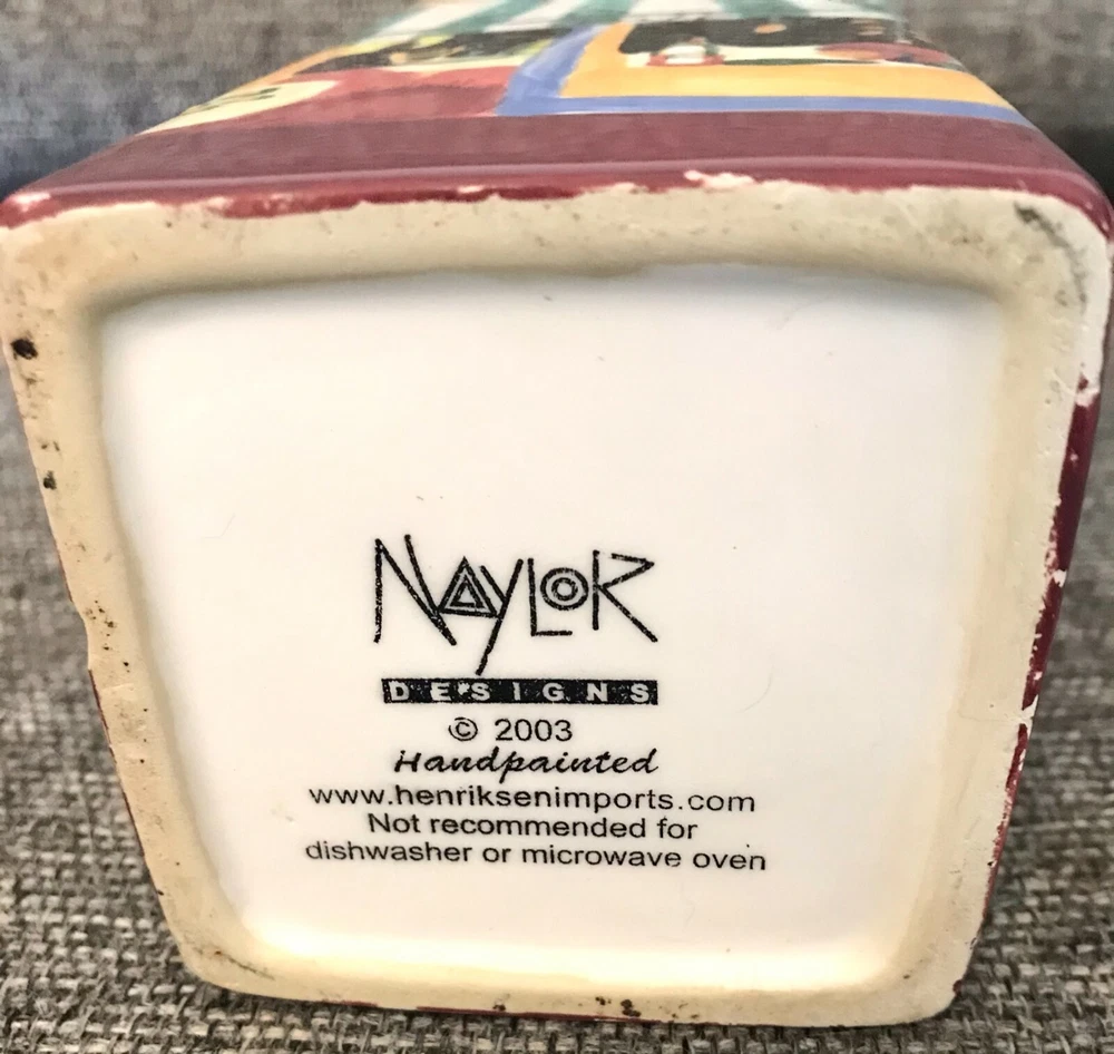 VINTAGE 2003 NAYLOR DESIGN HAND PAINTED CERAMIC BOTTLE/DECANTER HENRICKSON IMPORTS This is a beautiful vivid hand painted bottle featuring outdoor scenes . It measures approx. 14 x 3 inches and is i n very good pre-owned condition, with minor paint missing on mouth of bottle as seen in the picture. It makes a beautiful display piece. Track Page Views With Auctiva's FREE Counter