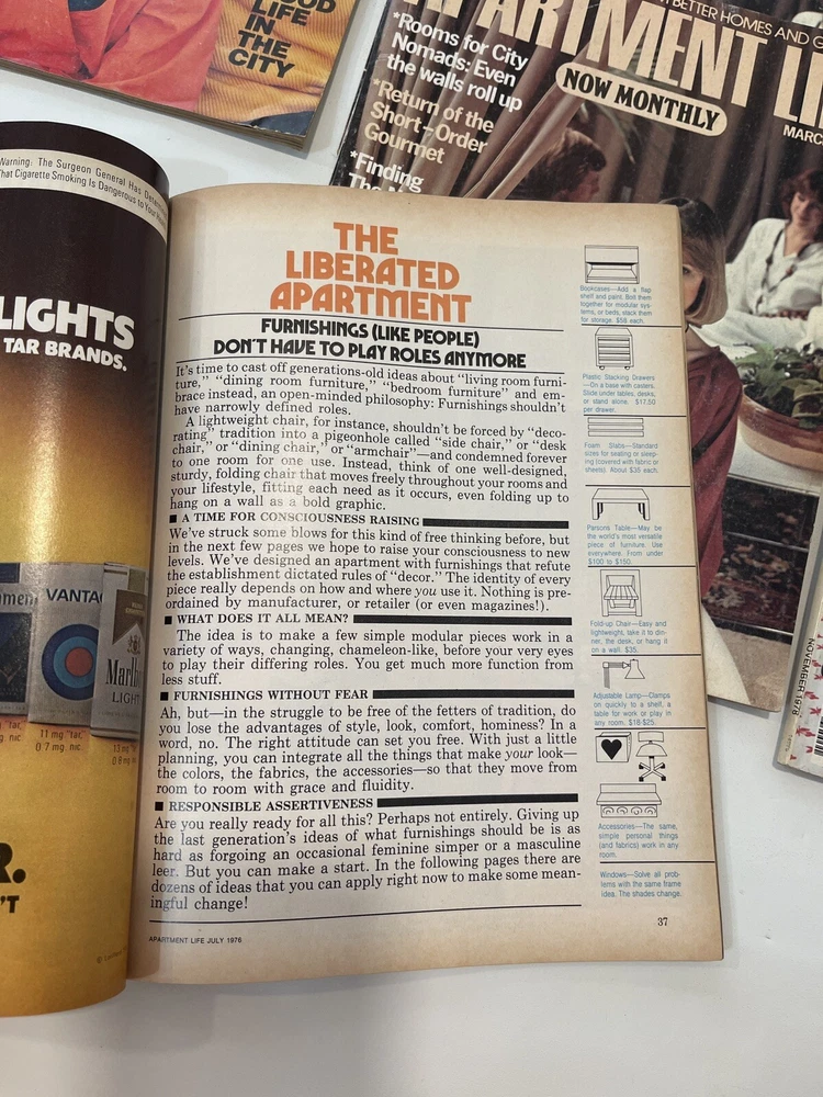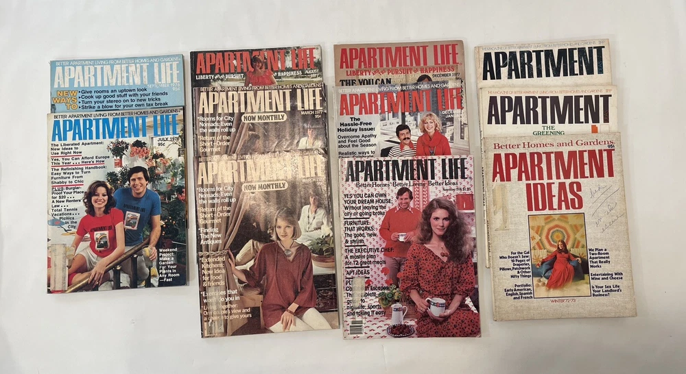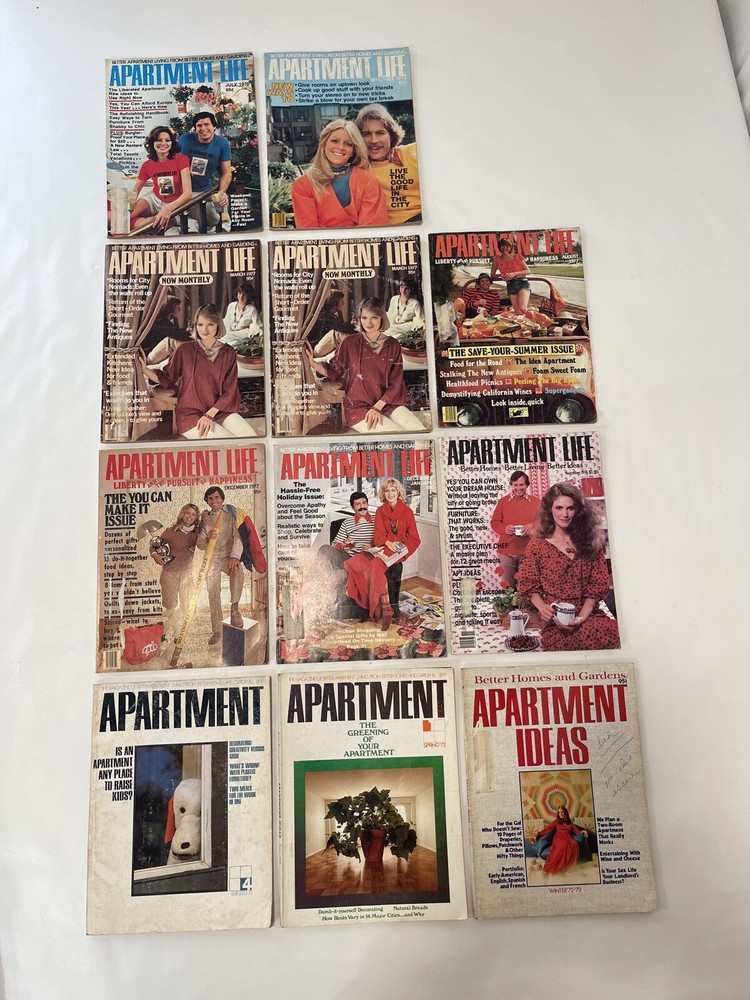 Explore the vintage world of apartment living with this collection of Apartment Life and Apartment Ideas magazines from the 1970s, published by Better Homes & Gardens. Each issue is a window into the past, offering a unique perspective on home decor, gardening, and lifestyle trends of the era. Perfect for collectors, history buffs, or anyone with an interest in retro culture. This set includes 8 issues of Apartment Life and 3 issues of Apartment Ideas, providing a comprehensive look at the period's apartment living. Dive into articles on furniture selection, interior design, and community building, all while enjoying the nostalgic advertising and photography of the time. Whether for personal enjoyment or research, these magazines are a delightful throwback to the heyday of apartment living. Note one Apartment Life has some writing on the front cover as seen in pictures. The magazines show some wear due to vintage age but are all intact. You are going to love all of the advertising and great articles. Happy to answer any questions you may have about the magazines. We ship fast.