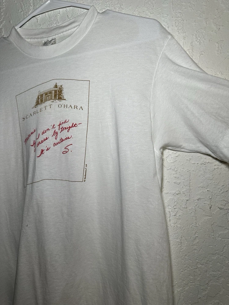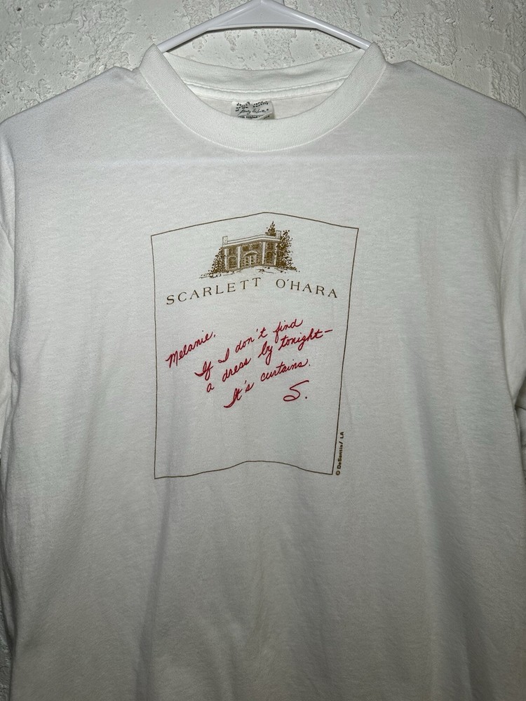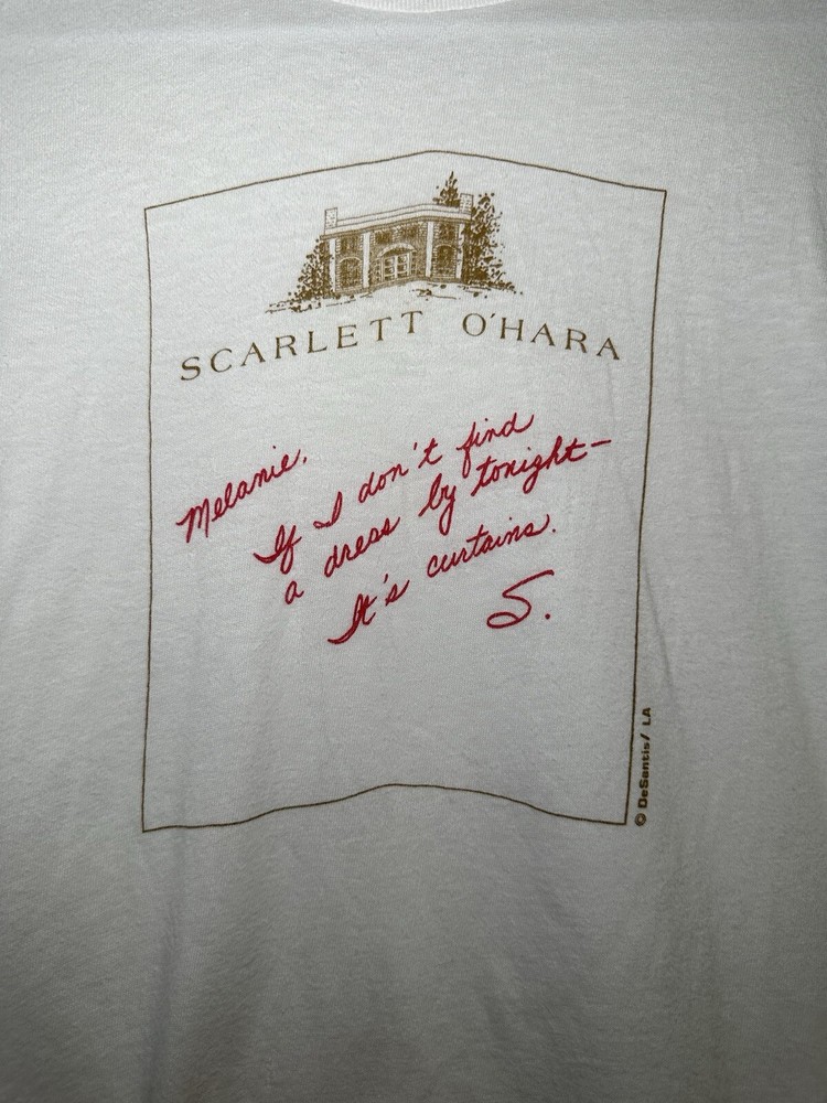 Preowned Vintage 80s Stanley Desantis Scarlett O'Hara Gone With the Wind Shirt | Size Large | Measurements: 19.5” pit to pit x 27” length | *Please review images to see condition of this item. (Item has a small pinhole and faint discoloration, as shown in photos) -If you have any questions please contact me. | ALL SALES ARE FINAL | FEEDBACK: Customer Satisfaction is my top priority. If you're pleased with your purchase, kindly spare a moment to leave a positive feedback. Your support is invaluable. Should you encounter any issues with your purchase, please reach out to me so I can address them promptly. Check Out My Store!