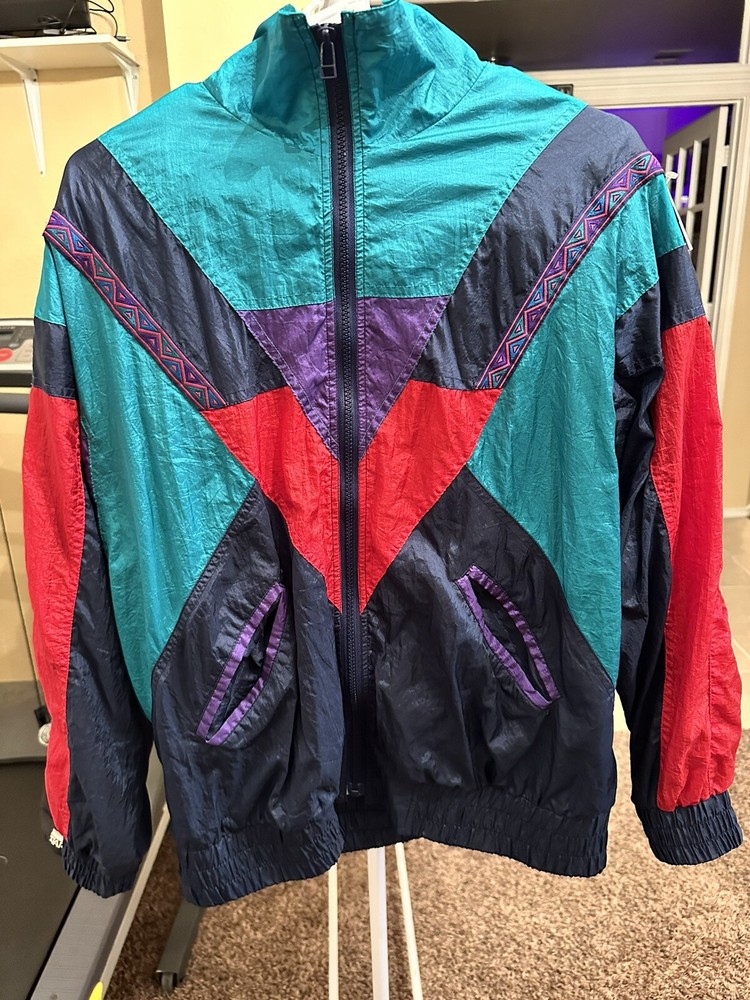 VTG 90s Andy Johns Colorful Full Zip Anorak Windbreaker Jacket Size Medium.