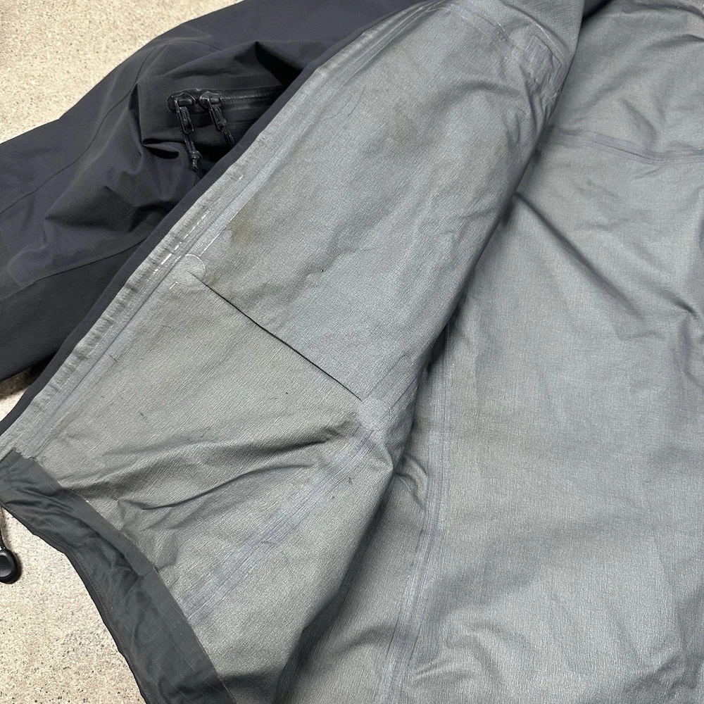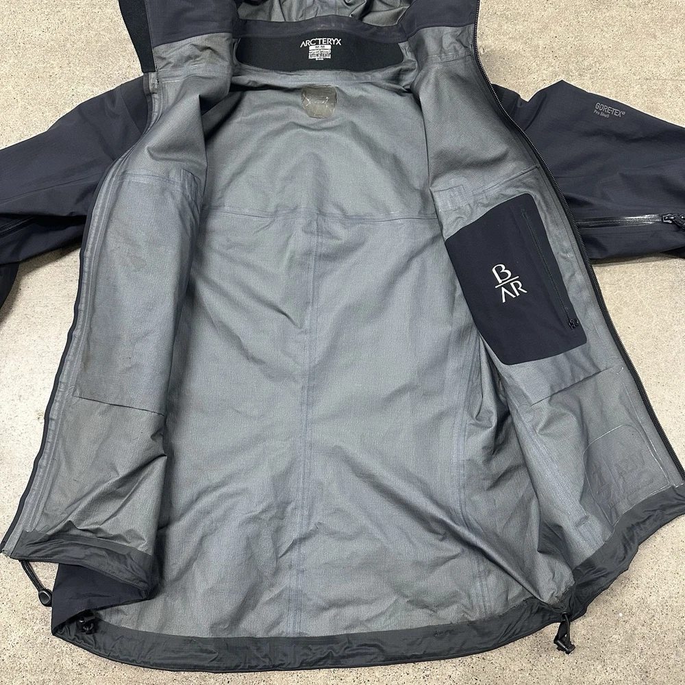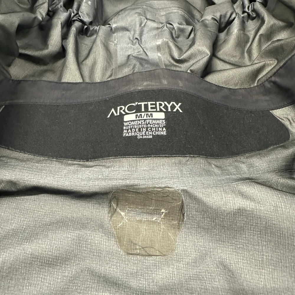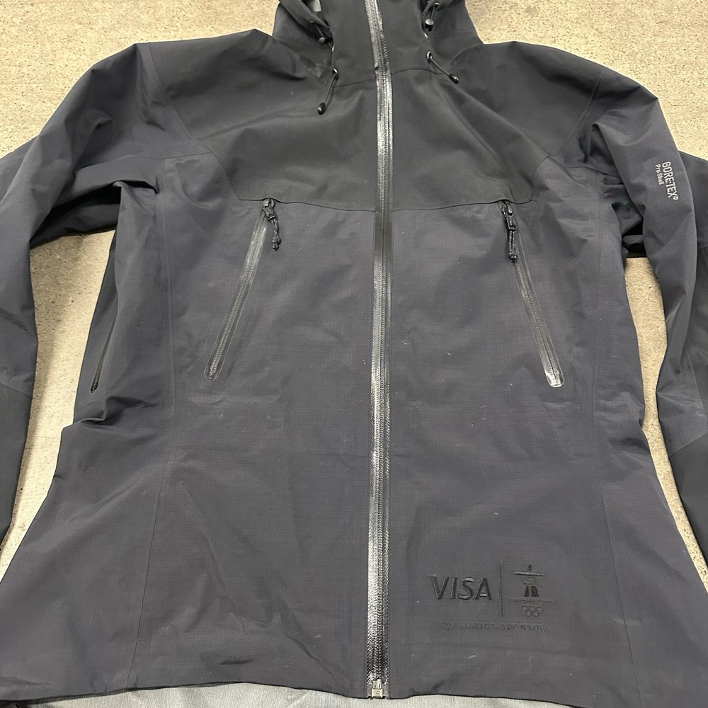 VTG Arcteryx Beta LT GORE-TEX Packable Wind Rain Hurricane Jacket Black Womens M Has a visa/olympics logo on the bottom of jacket as shown in photos - blends in well with the black color of jacket. Has stains throughout the exterior and interior as shown in photos