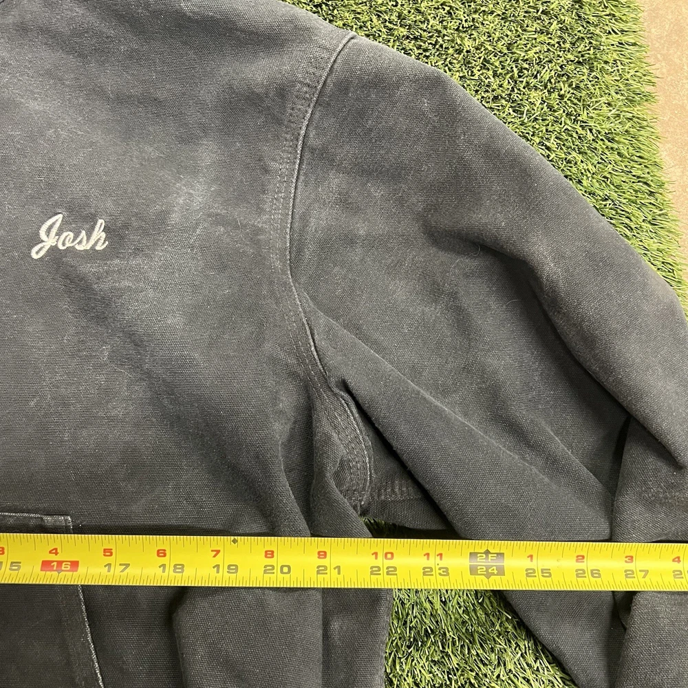 Item pictured is exact item you will receive, has welder embroidery on the back and “Josh” on the front. Measurements are included in the photos.