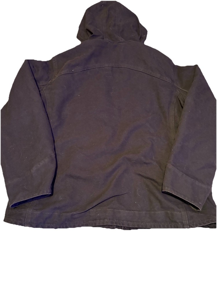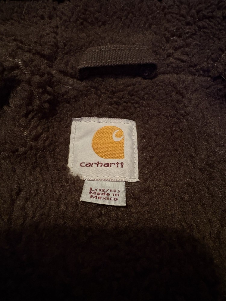 This vintage brown Carhartt sherpa lined hooded jacket in size Large is a stylish and practical addition to anyones wardrobe. The sherpa lining provides extra warmth and comfort, making it perfect for colder weather. The hooded feature adds a touch of practicality, ideal for those chilly days when you need extra protection from the elements. The classic brown color and regular fit make this jacket versatile and easy to pair with a variety of outfits.