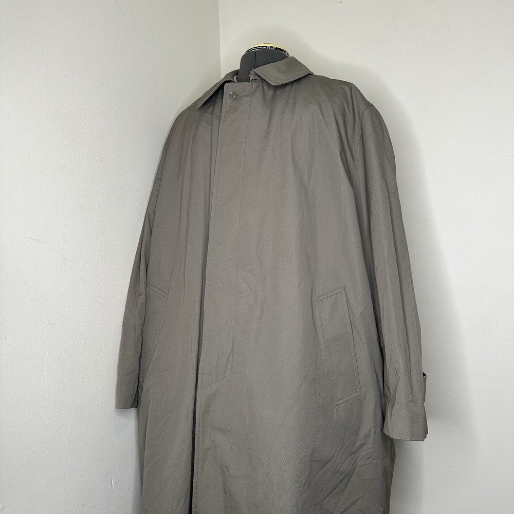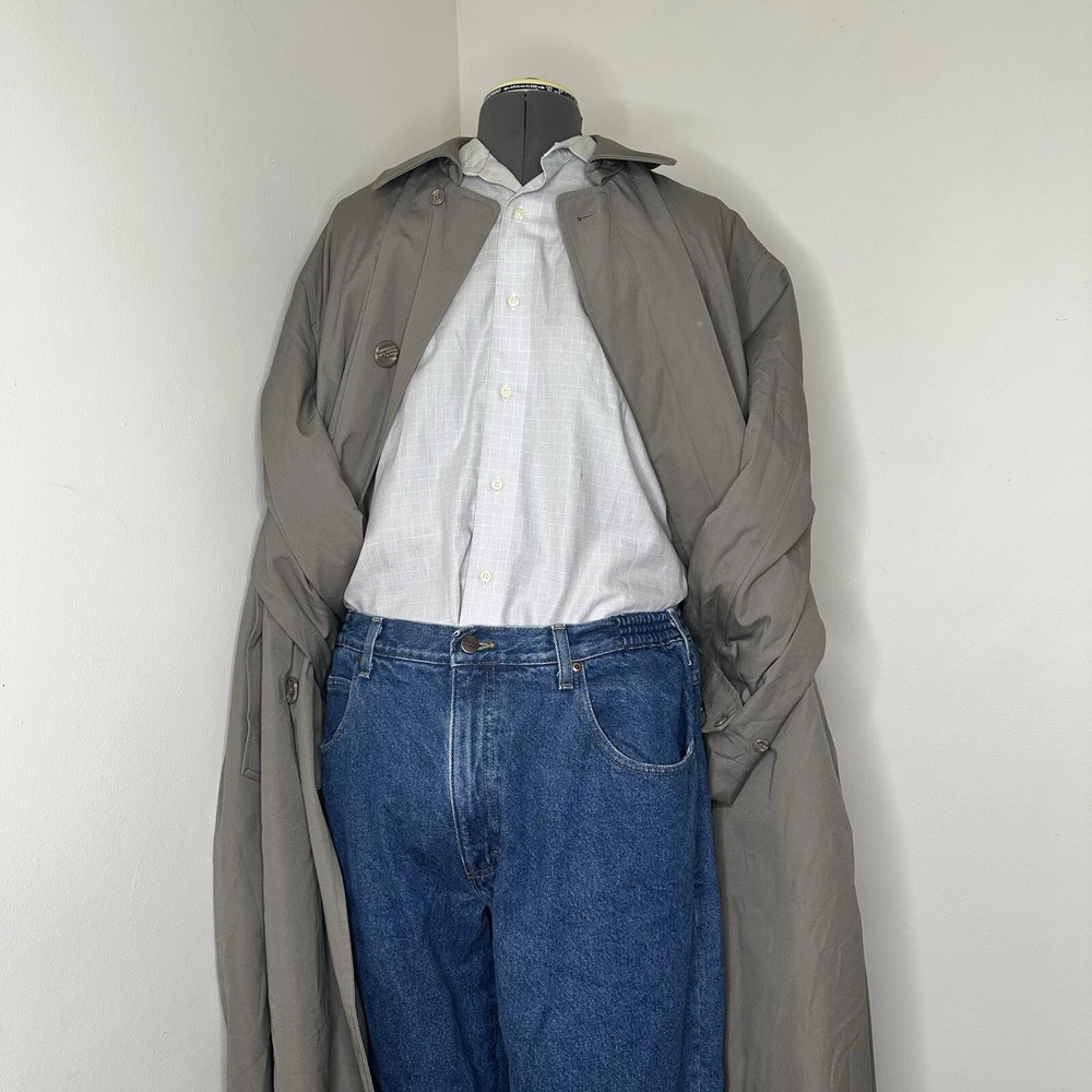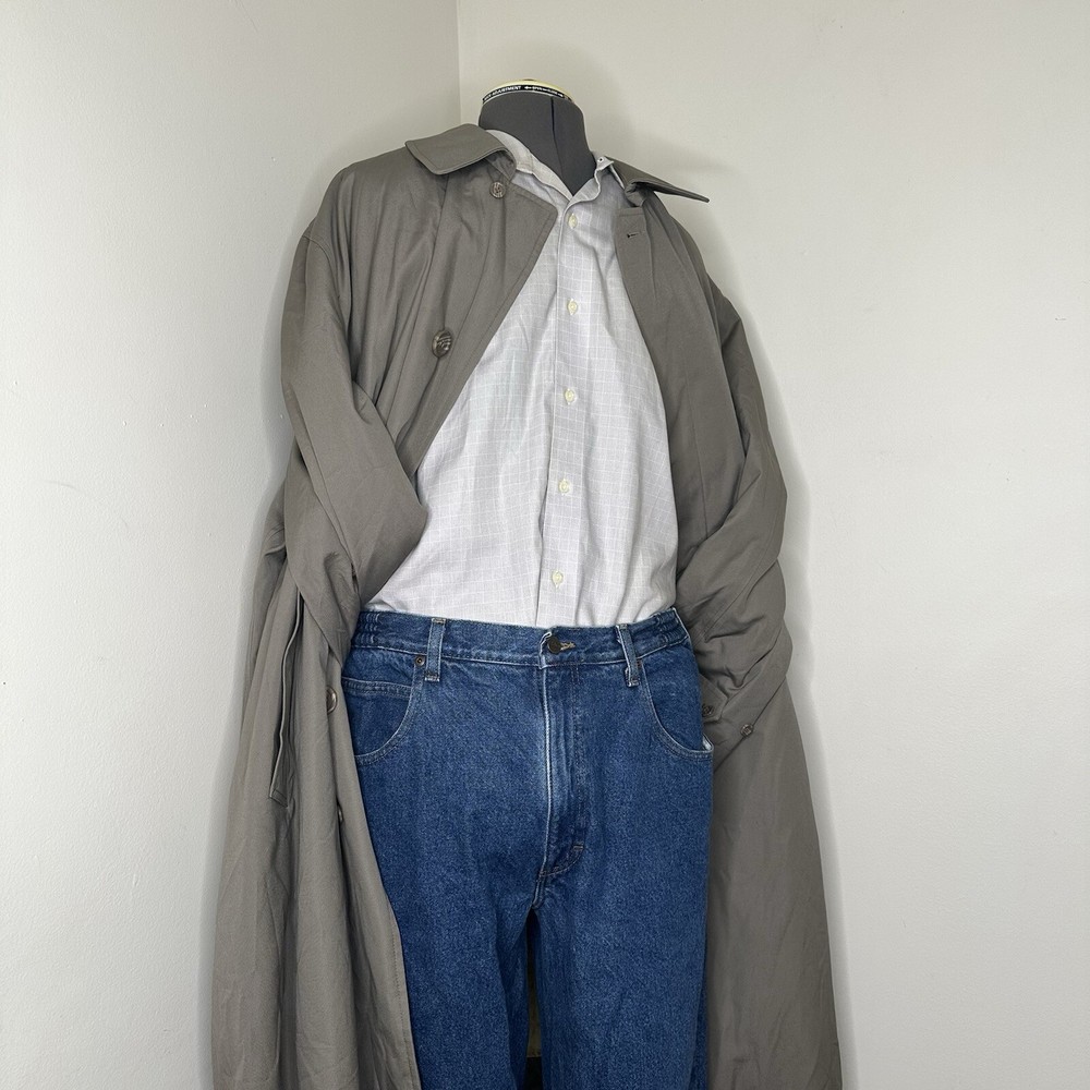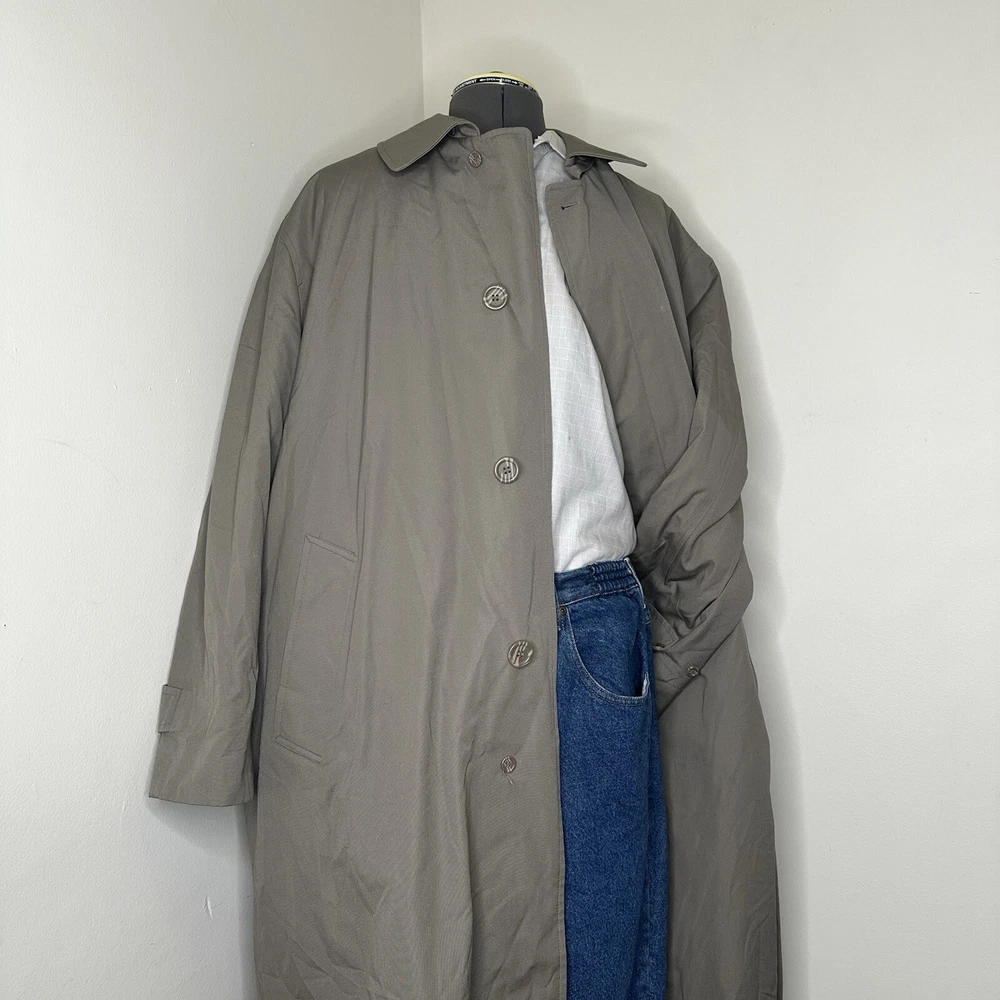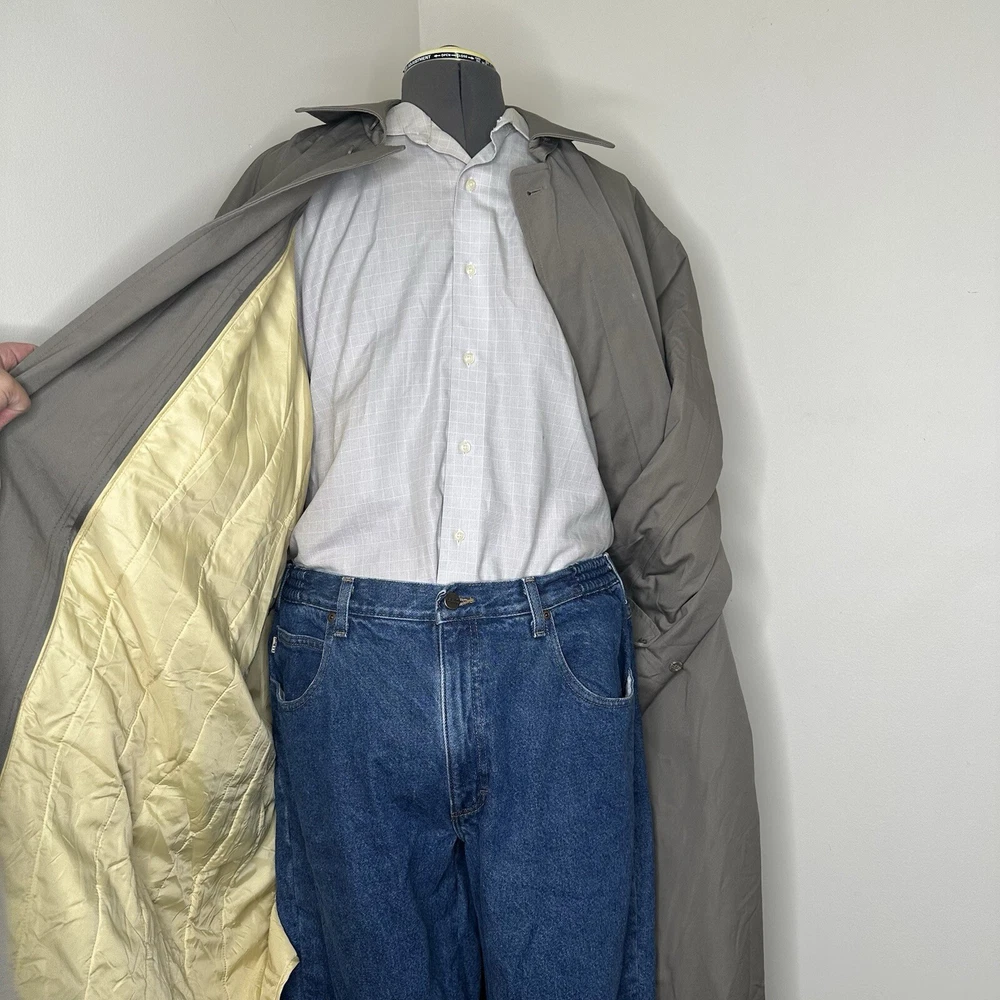 This trench coat is a fantastic vintage find! The removable liner adds versatility, and the sizing is spot-on for a comfortable fit. Despite minor blemishes, the coat is clean with vibrant color and in great condition overall. Perfect for layering in cooler weather—love the classic gray look!