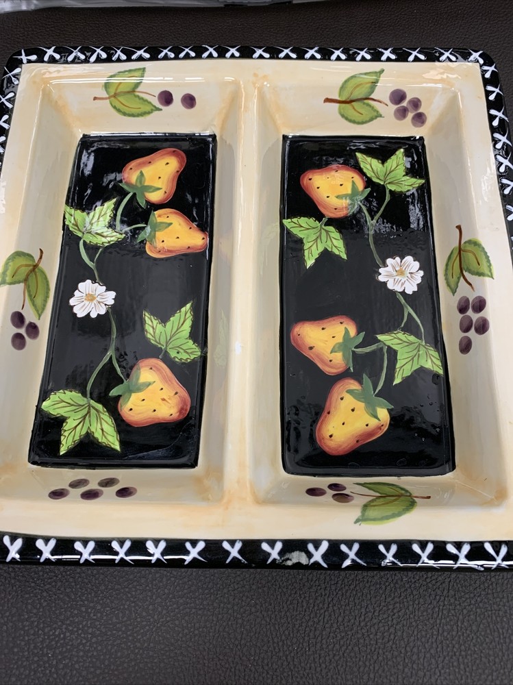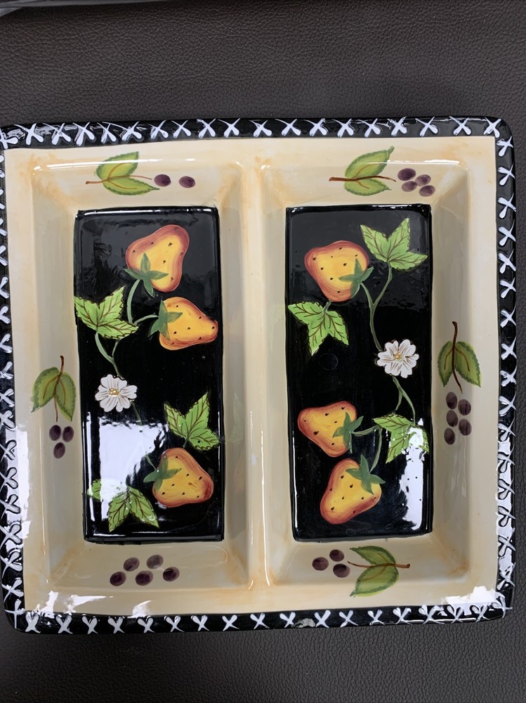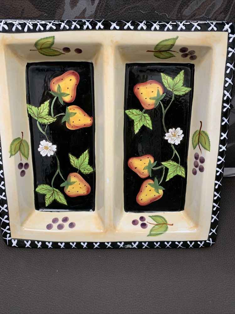 VTG Divided Serving Platter Strawberry Square Floral Design Jay Imports 10.5”. Condition is "Used". Shipped with USPS Priority Mail.