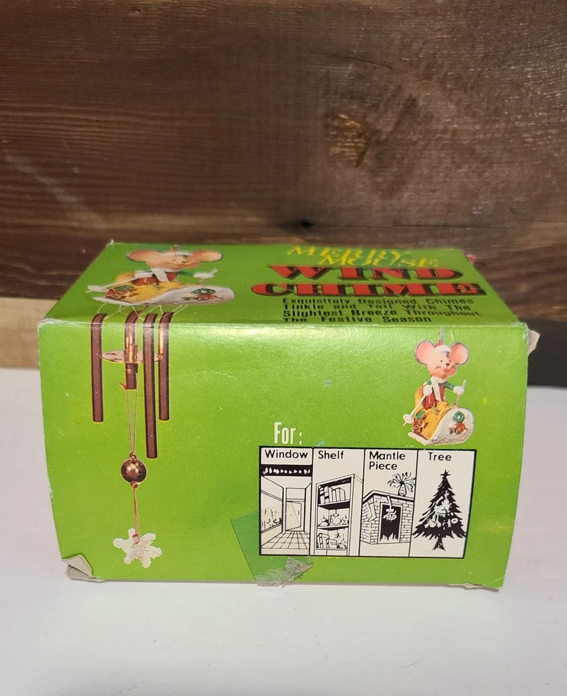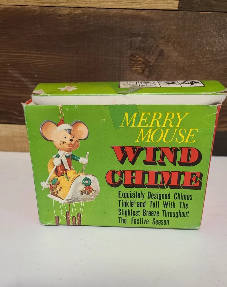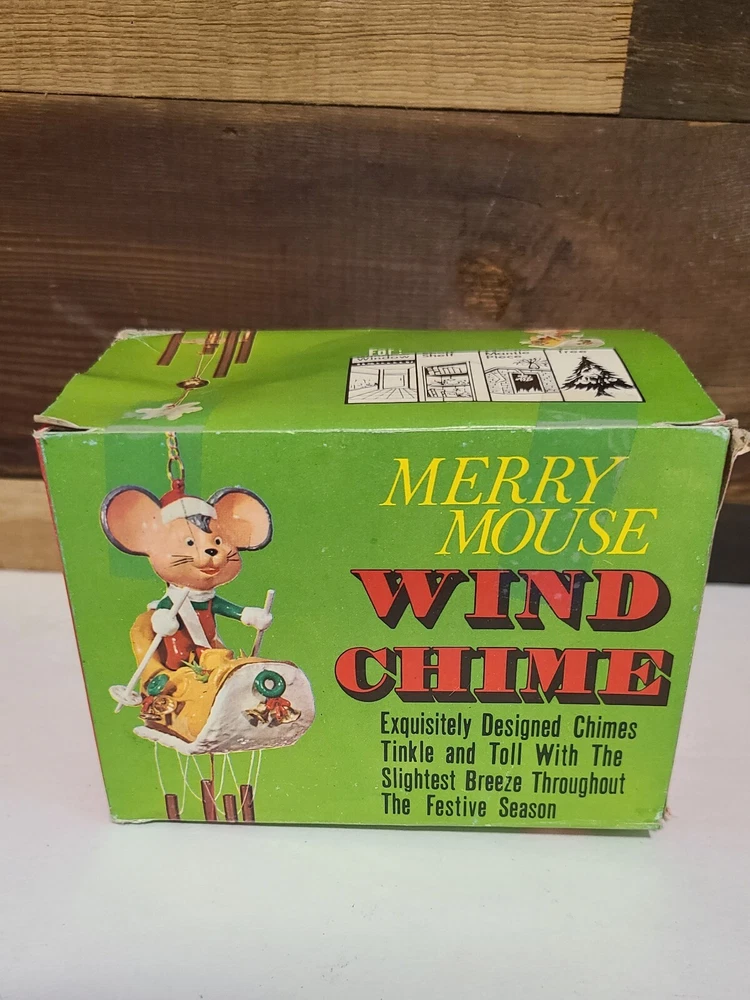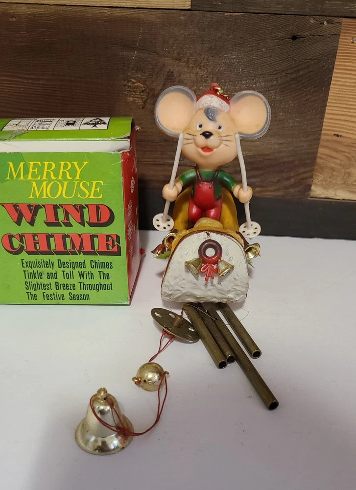 VTG Emson Merry Mouse Wind Chime Christmas Ornament 1976 Antique Holiday Season. No. 3388