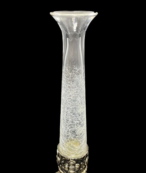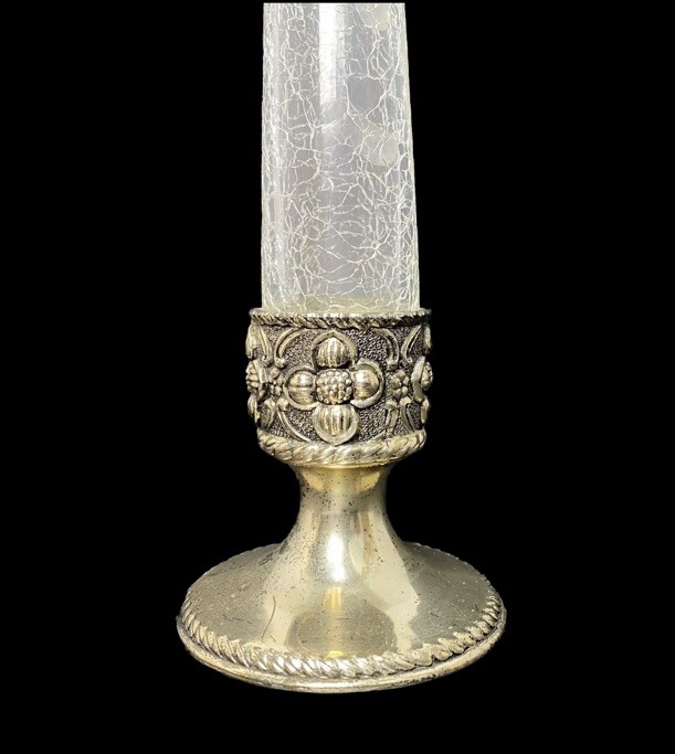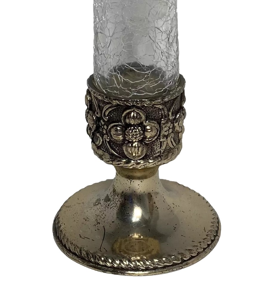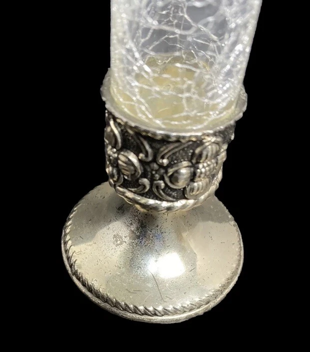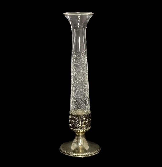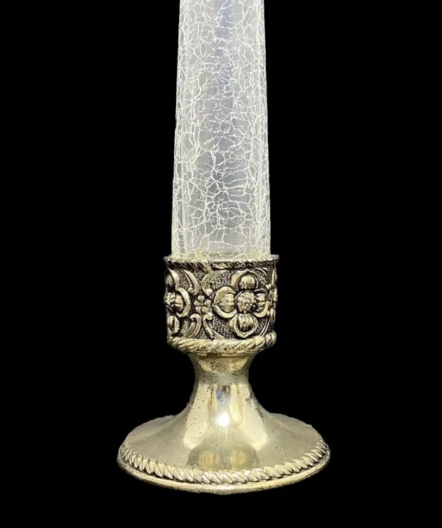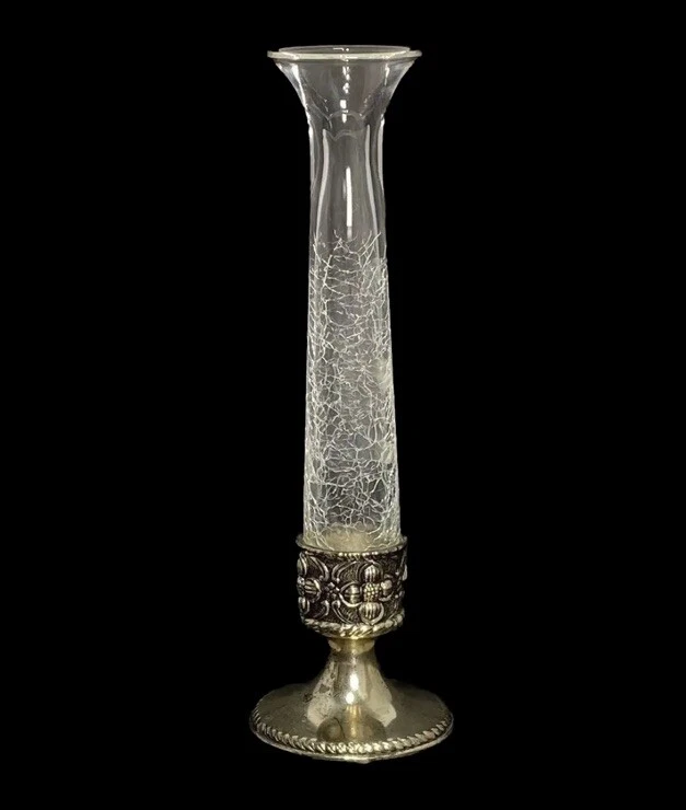 VTG Holiday Imports Clear Crackle Glass Bud Vase 9” Silver Tone Footed Flower This beautiful vase is in nice used condition free of chips, cracks or repairs!! There is wear on the silver tone base, as noted in photos. Regardless, this is a beautiful vase!! Measures approximately 9” x 2.75”. This beautiful crackle glass vase will make a wonderful addition to any collection or decor!! Please refer to photos as they are part of my description. Thank you for shopping TimTam’s Treasures!! Have a blessed day!!