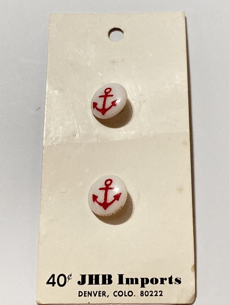 VTG JHB Imports White Plastic Buttons Red Anchor Design Shank 1/2" 2 on Card NEW These are NEW on card. We combine shipping. Shop all of our Buttons Here See all our RED buttons here