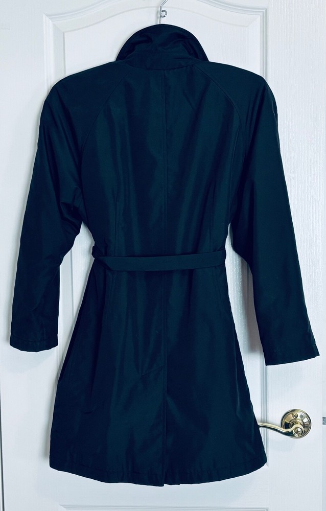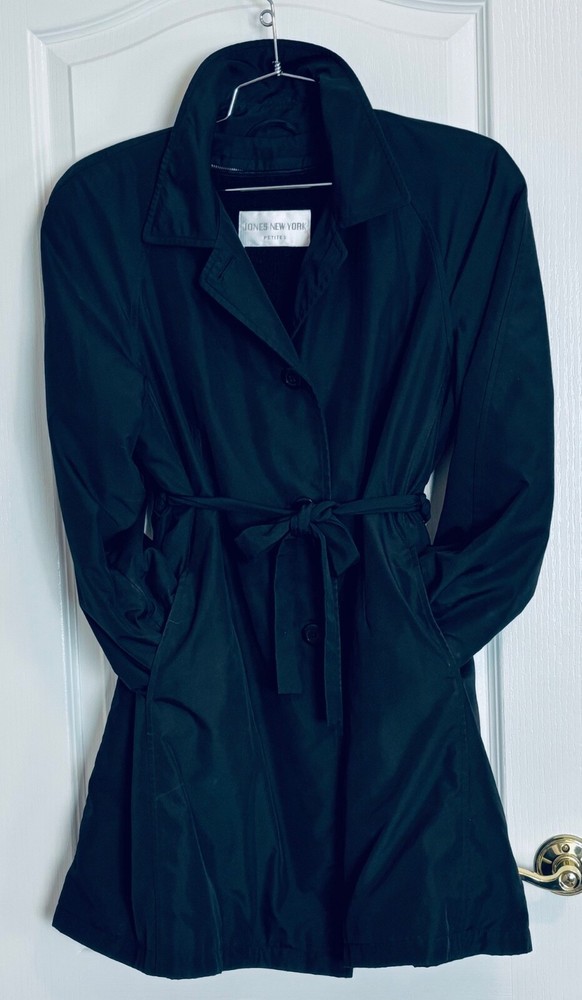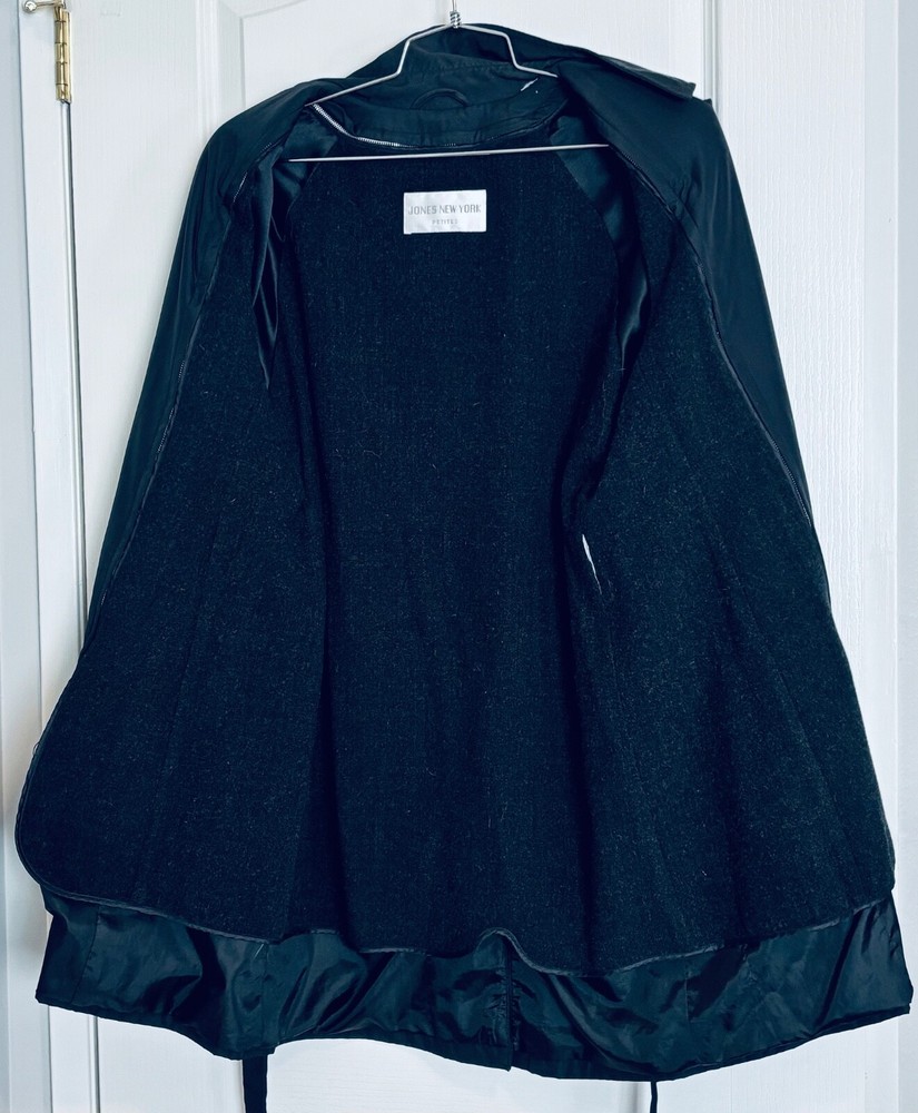 Up for your consideration is this Vintage Jones New York raincoat. The coat features double linings: a removable thermal liner & a satin liner, making it perfect for all seasons. The polyester and polyurethane outer shell material ensure durability and water resistance. Very Good Pre-owned Condition: only thing missing is the size label.. Size: Unmarked (see measurements) Brand: Jones New York Colors: Black Sleeves: Raglan Long Sleeves Fabric: Outer Shell- 90% Polyester & 10% Polyurethane Liner: 100% Polyester Care: Dry Clean Measurements are flat garment measurements: Measurements/Size Please check the measurements before buying/bidding. Find your best fitting shirt & pants and see how the measurements compare. Shoulder – Raglan so no shoulder seam: est. 18 inches Chest – Armpit to armpit: 22 inches Across the bottom- Side seam to side seam: 29 inches Length – Center neck seam to bottom of top: 35-1/2 inches Sleeve Length – (No Shoulder) Underarm to sleeve bottom: 17 inches The photographs included in this listing are an integral part of this description. Please look at them carefully and ask questions if you feel you are not seeing what you need to see. ***International Buyers BE AWARE my shipping fees only cover the shipping fees within the United States to the Global Shipping hub. Any additional fees, such as VAT, are the responsibility of the buyer.*** I FEEL LIKE *CONDITION* IS SUBJECTIVE AND AN *OPINION*. WHAT I MAY FEEL IS GOOD CONDITION, YOU MAY SEE IT AS EXCELLENT (OR VICE VERSA) THAT IS WHY I ENCOURAGE YOU, (AS THE BIDDER / BUYER) TO PLEASE...LOOK OVER EACH PHOTO AND USE THE ZOOM FEATURE! MY GOAL IS TO PROVIDE PHOTOS SO YOU CAN SEE EACH AND EVERY DETAIL. AS MY ITEMS ARE SOLD *AS IS*. I am happy to answer any questions regarding this item. Be sure to check out my other items and click to make me a favorite if you like what you see. Thank you for visiting! Ebay is a feedback driven business community. Trust and integrity for a buyer and seller relies on this feedback number. Please make sure that this is the item for you before bidding. Please ask any questions before bidding. If there is an issue after the sale, please contact me, so I have a chance to work out the issue. I want all of my customers to be happy and 100% satisfied with their purchase. If you are happy with your purchase after you receive the item, please leave me positive feedback with all stars. Thank You! SHIPPING POLICIES: I DO NOT ACCEPT RETURNS. I will ship to the US and through "Global Shipping" so international buyers have the opportunity to purchase. Please pay with the options in Managed Payments at the end of the sale. 042825:154:BC:HANGING