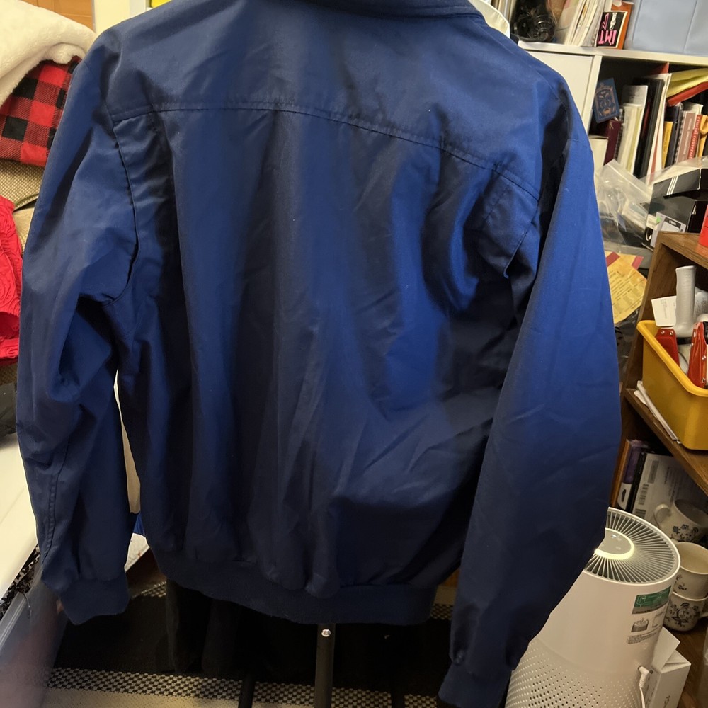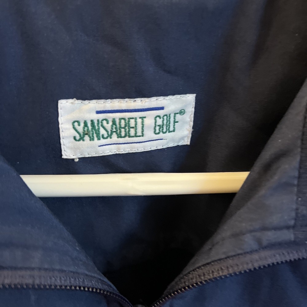 This blue Medium jacket by SANSABELT is perfect for a casual occasion or for activities like golf. Its solid pattern, zip closure, and wind-resistant fabric make it suitable for all seasons. The vintage windbreaker has a hood that can be easily hidden, and it features Interchange, Weathergear, and Quick Dry technologies. The jacket has pockets for convenience and is made of an acrylic blend outer shell with a nylon lining. It is lightweight and perfect for sports like golf. This item is a great addition to any wardrobe and is sure to keep you comfortable during any outdoor activity.