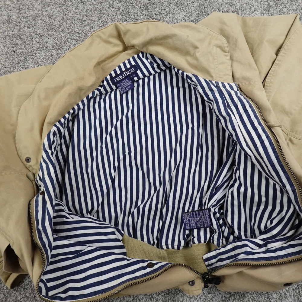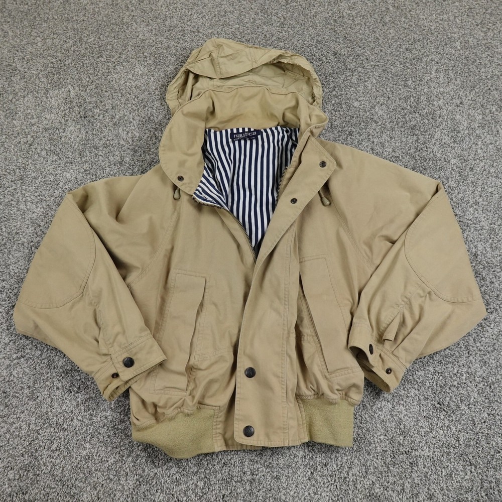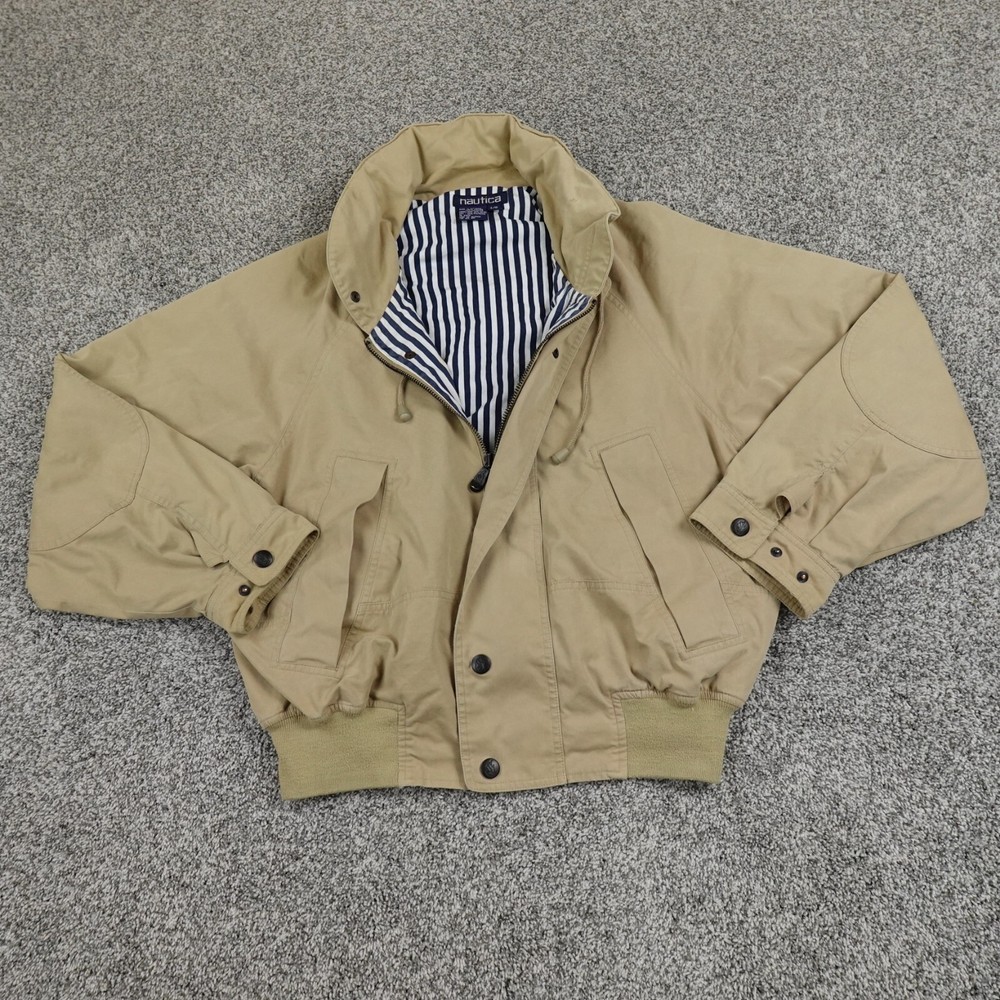 VTG Nautica Jacket Mens L Brown Tan Elbow Patch Lined Windbreaker Bomber Hood ***Does Have A Smll Nick And Small Stain Noted In Photos*** Measurements Are Provided In The Photos Expect Your Items Quickly Because I Ship EVERY DAY ***FREE 30 DAY RETURNS*** Send Me A Message If You Have Any Questions And I Will Respond As Soon As Possible!