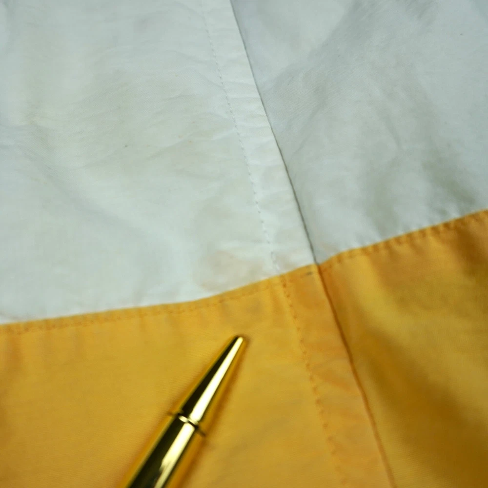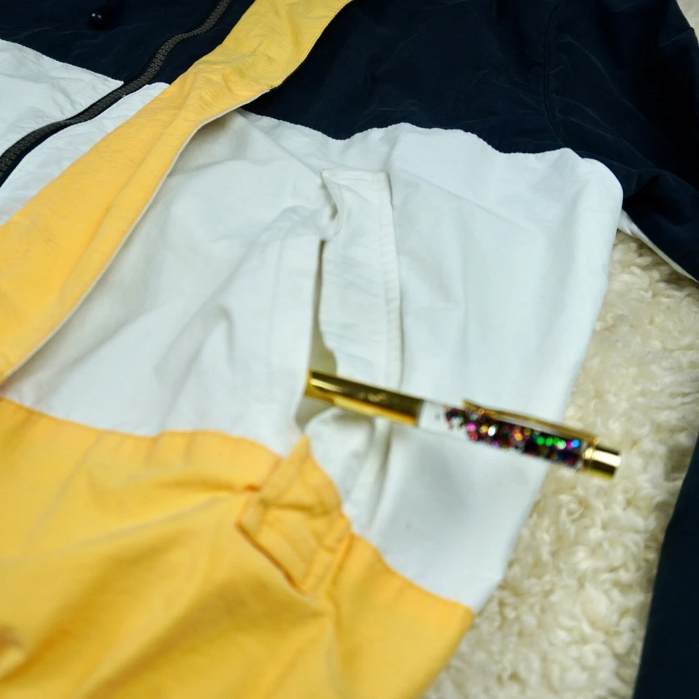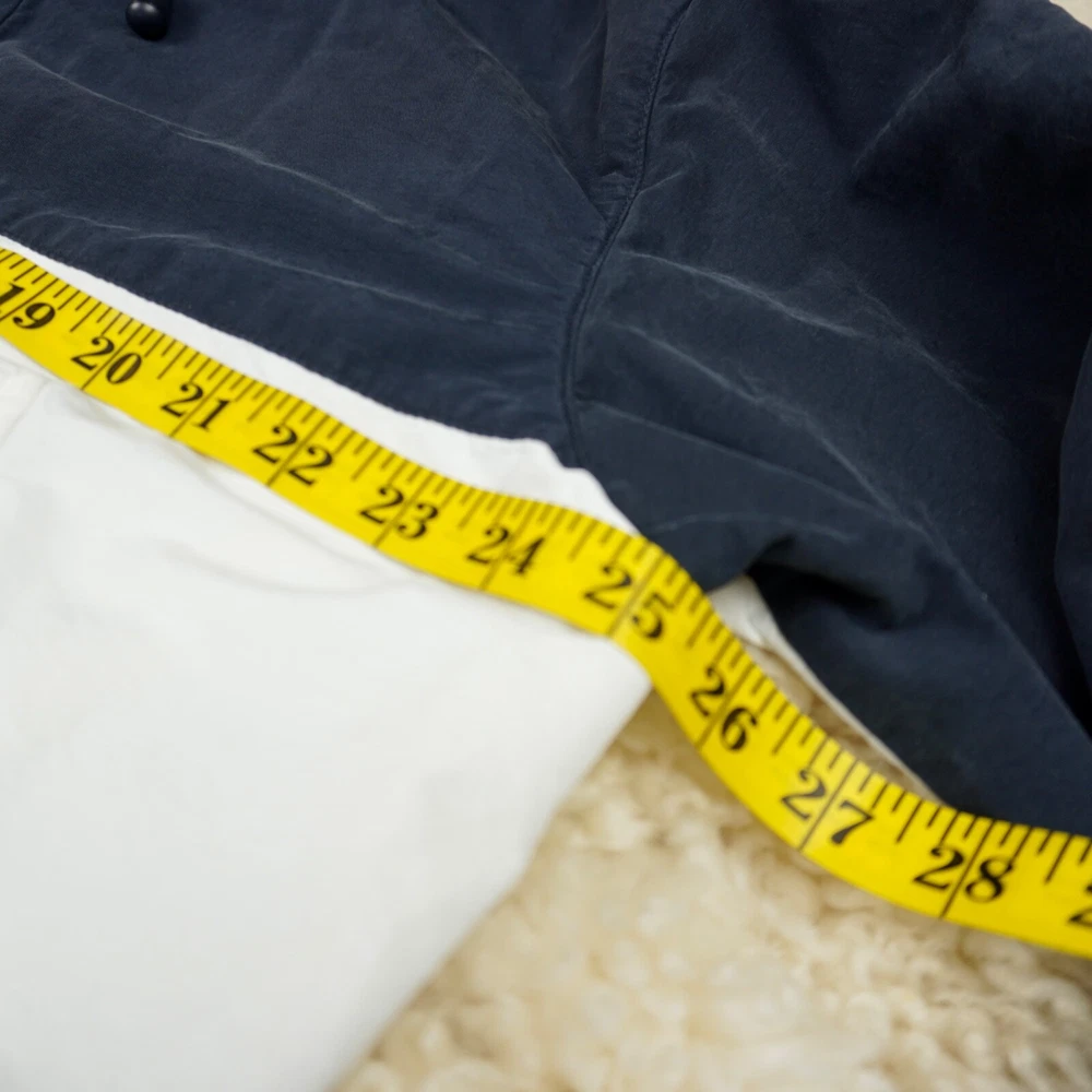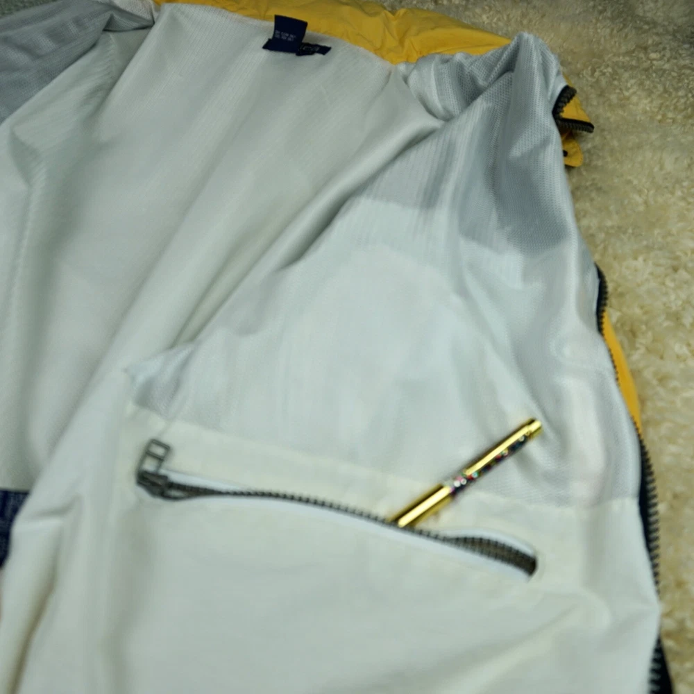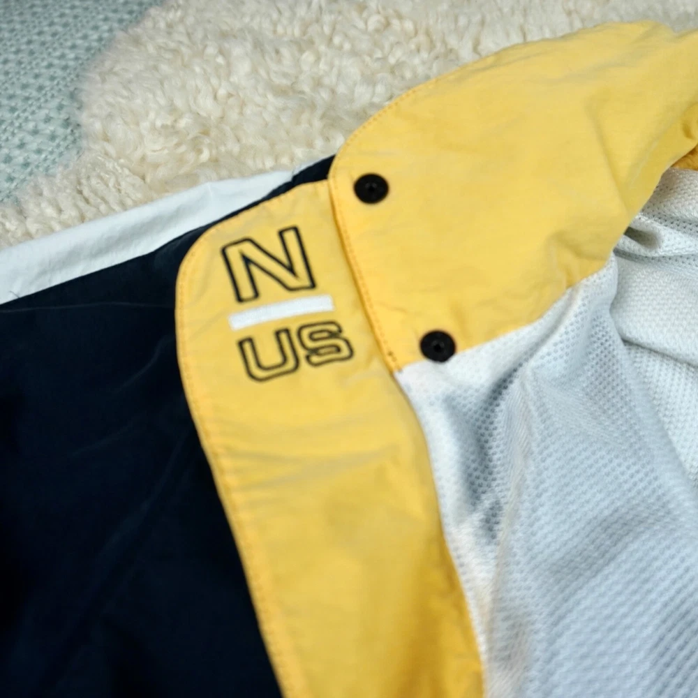 Very good vintage condition - there are some blemishes on the fabric. Please see photos for details. No rips or holes. All zippers and snaps are intact and fully functional. Lined. This Nautica windbreaker jacket is a must-have for any outdoor activity. With a classic fit and mid-length design, it features a stand-up collar, hook and loop closure, zipper and button closure, and a removable hood. The jacket is made of 100% nylon and cotton blend material, making it wind-resistant and lightweight for all seasons. The white jacket has an embroidered Nautica logo and is lined with cotton for added comfort. It is suitable for travel, casual wear, and various activities such as walking, golf, baseball, hockey, lacrosse, basketball, racing, and bodybuilding. The jacket is machine washable and comes in size L.