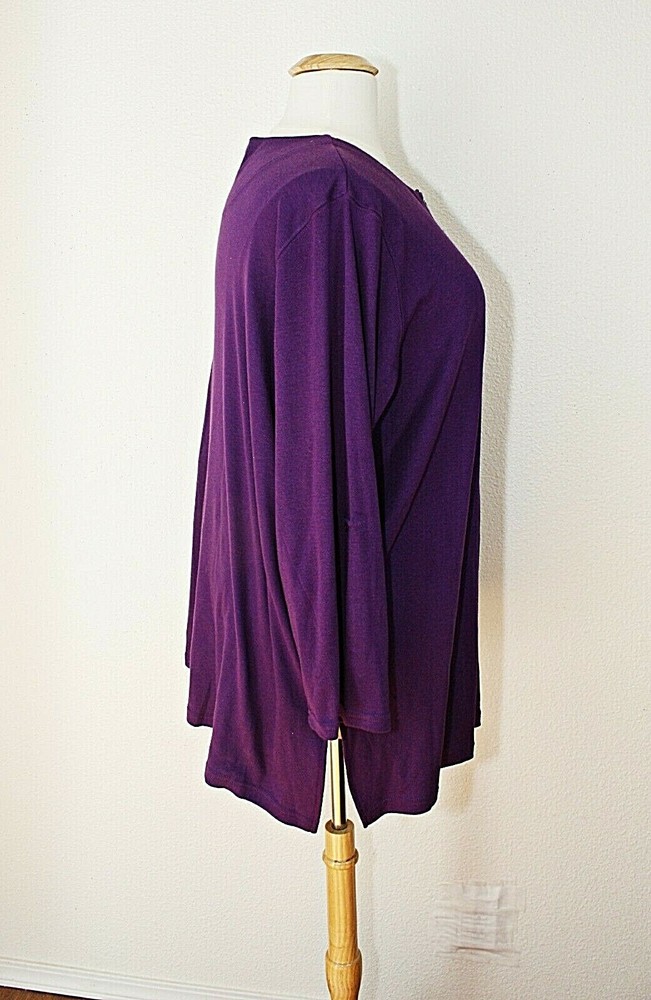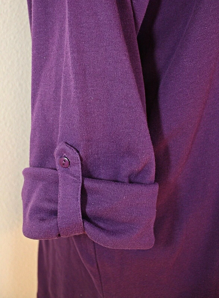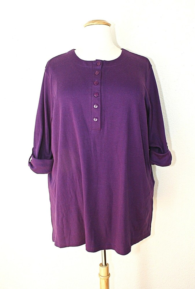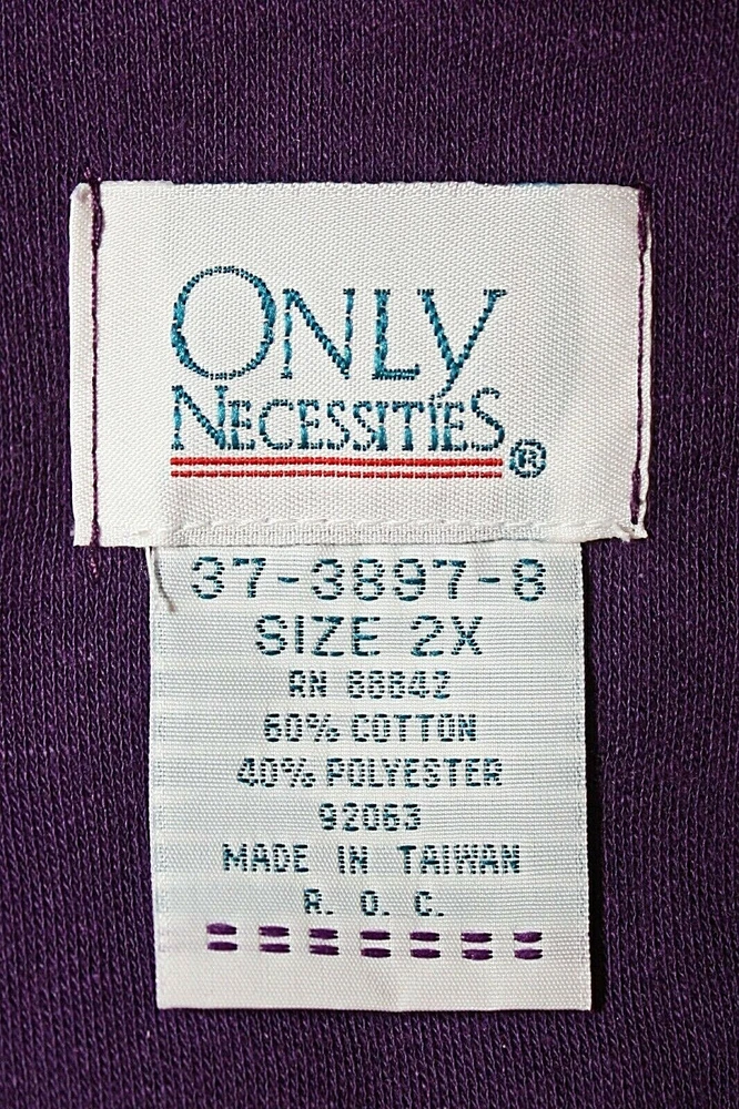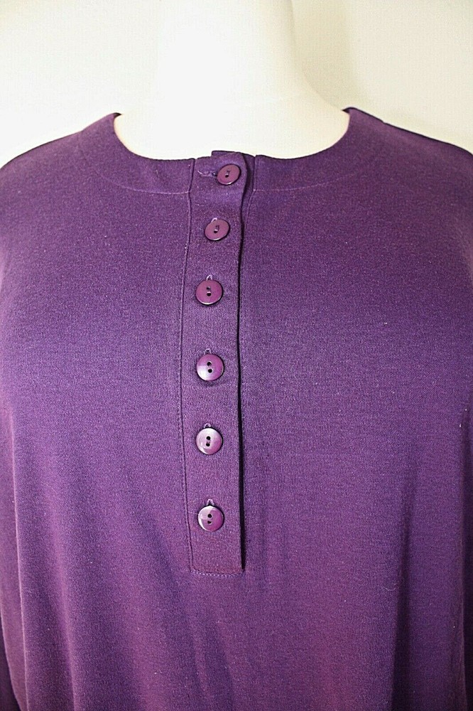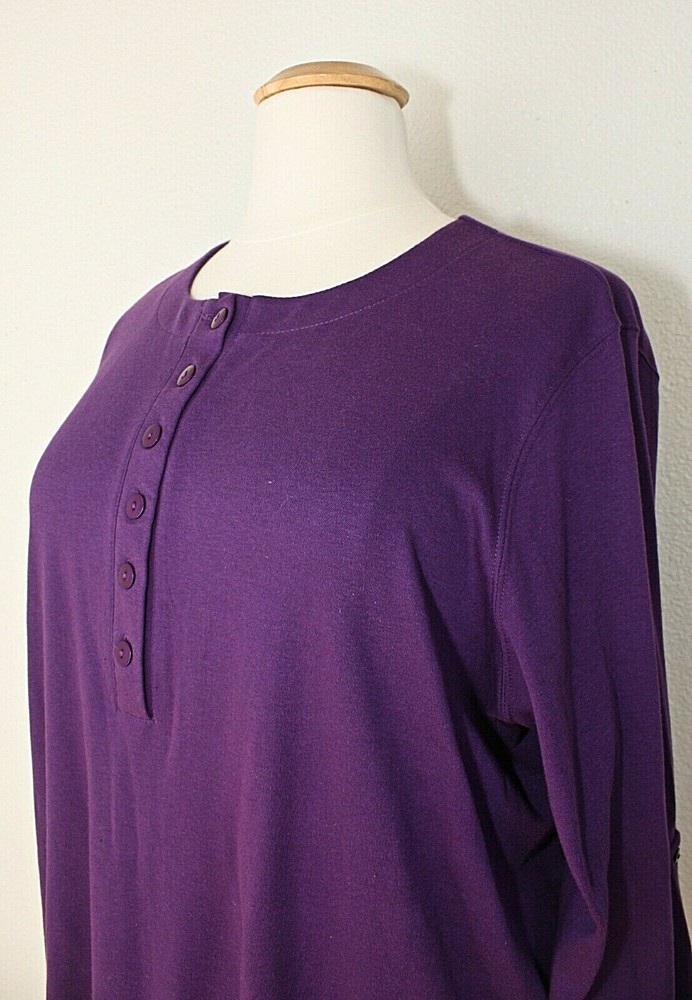 This vintage knit top tunic from ONLY NECESSITIES is a must-have for any casual occasion. The purple color adds a pop of color to your wardrobe, while the henley closure and convertible sleeves provide both style and comfort. Made in Taiwan R.O.C. in the 1990's, this original piece features a plus size 2X. The top has a cozy look and is perfect for cooler weather. This knit long sleeve top is an ideal addition to any vintage clothing collection and is sure to become a favorite. Label: ONLY NECESSITIES. Made in Taiwan P.O.C. 2 extra buttons. Excellent condition. MEASUREMENTS are taken while lying flat. Fabric was not stretched. Length From Shoulder - 32" Between Shoulders - 18 1/2" Armpit To Armpit - 28 1/2" Waist - 28 1/2" Hips - 31" Sleeve - 22" (not rolled up), 15" (rolled up - 3/4 length) Label Size - 2X. Please check measurements. Combined shipping is available.