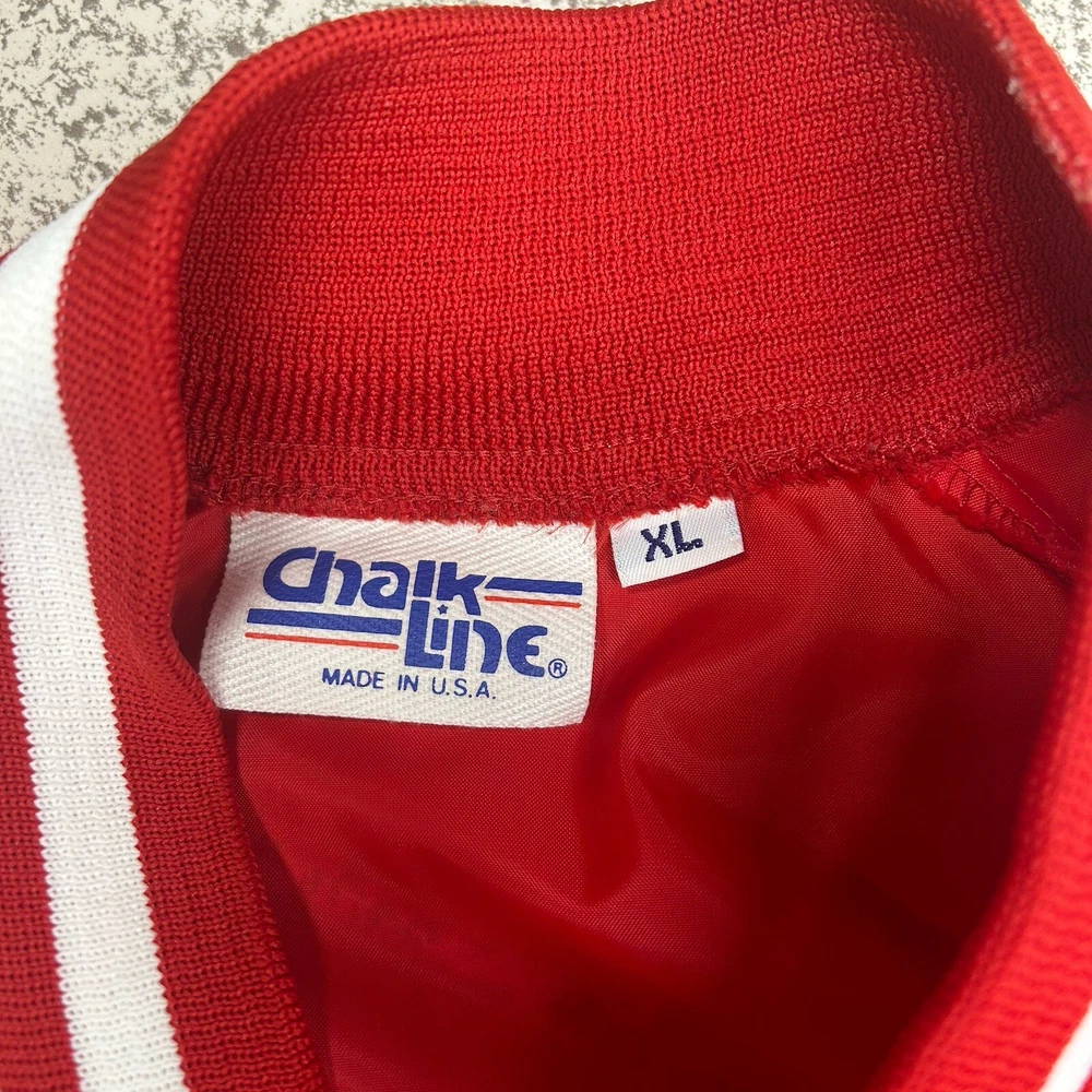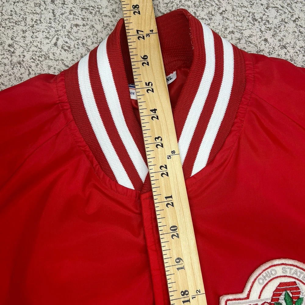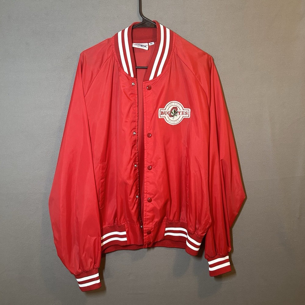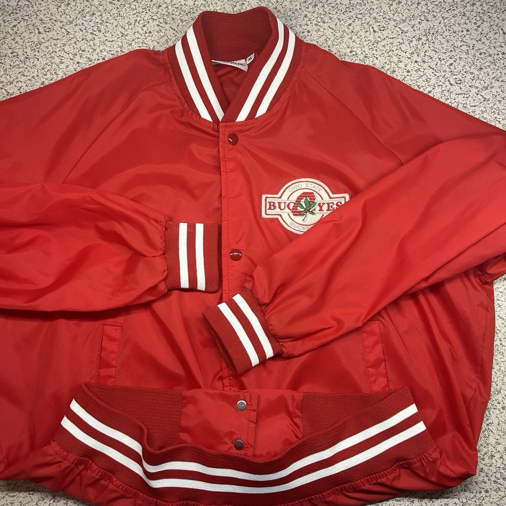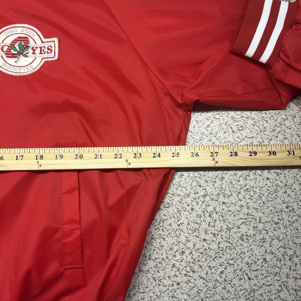 Show your Buckeyes pride with this officially licensed Ohio State Snap Up Wind Breaker. The red Chalk Line branding adds a stylish touch to this unisex adult apparel, perfect for all seasons and games. The XL size ensures a comfortable fit for all fans, whether you're at the stadium or out and about. Represent your favorite team in style with this snap-up windbreaker, featuring the iconic Ohio State Buckeyes logo. Whether you're heading to a game or just running errands, this versatile apparel is perfect for any occasion. Don't miss out on the chance to show your Buckeyes spirit - order yours today! Overall Very Good Condition -No Issues - see photos. - We ship quickly - PLEASE NOTE - Vintage and prewashed Clothing Often runs SMALLER than Modern sizes... Please reference photos for accurate measurements/sizing - Contact us for any issues or questions