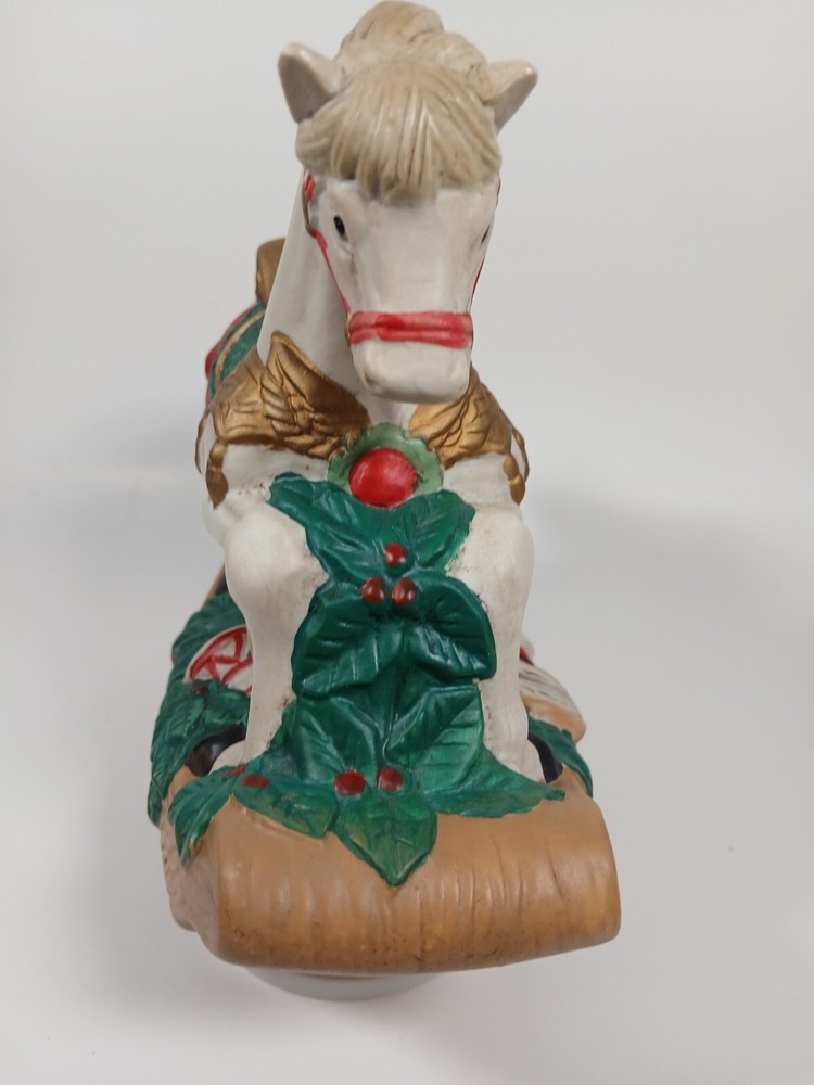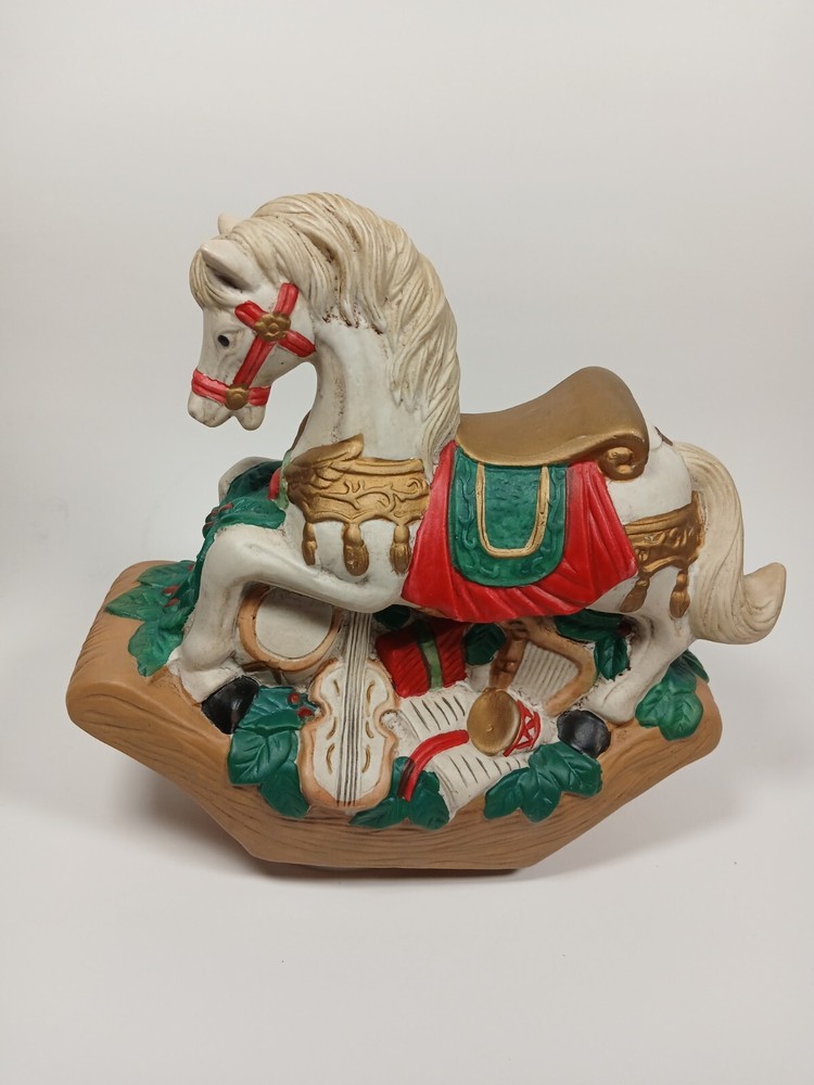 Vintage Ceramic Wind Up Musical White Christmas Holiday Rocking Horse Figurine. Plays "We wish you a Merry Christmas" in working condition. Please see photos for details or message any questions. Thanks! Measures approximately: 8inches tall Fast Shipping!