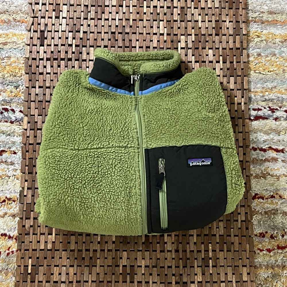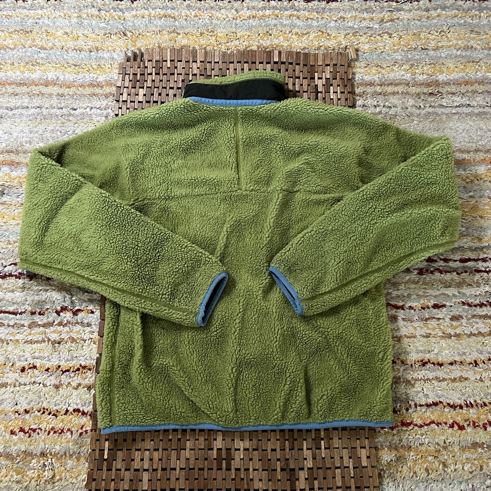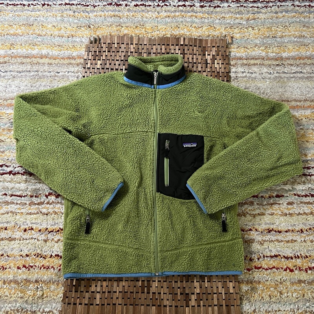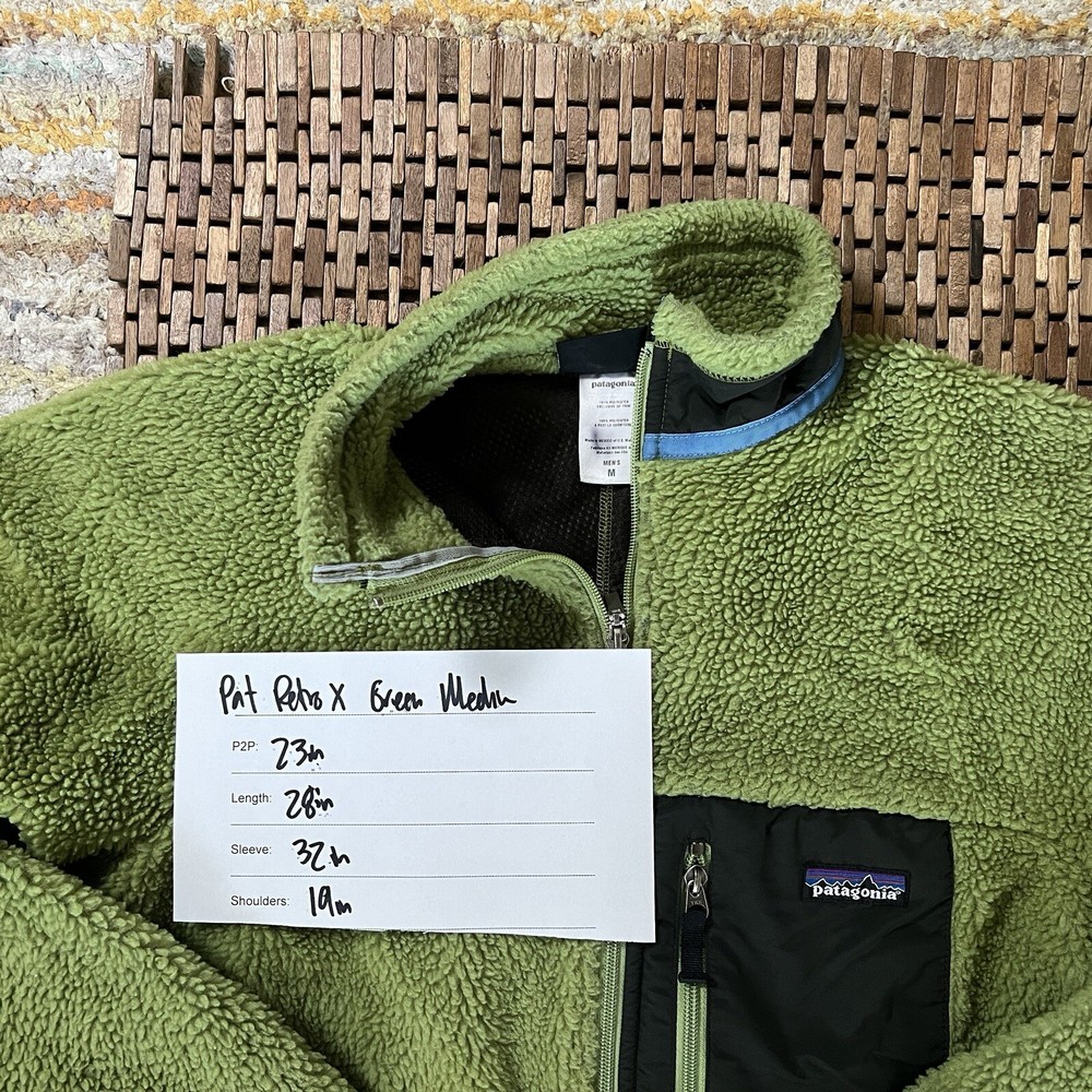 This vintage Patagonia Retro-X jacket is a must-have for any outdoor enthusiast. Made with polyester outer shell material and lined with polyester, this fleece-style jacket features a full zip closure and elastic waist for a comfortable fit. The solid forest green color and limited edition design make it a stylish addition to any wardrobe. With its weathergear, waterproof, lightweight, organic, full zip, bodywarmer, all seasons, water-resistant, wind-resistant, and lined features, this jacket is perfect for walking, skiing, and hiking. The zipped pockets and Patagonia logo accents add a touch of convenience and style. Available in size M, this jacket is suitable for travel, casual wear, and workwear.
