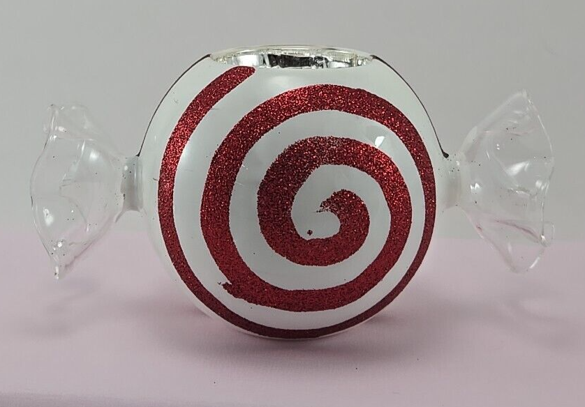 Elevate the festive ambiance of any room with this vintage Pier 1 Imports blown glass tea light candleholder. Adorned with a charming peppermint design, its multicolor palette adds a touch of whimsy to your holiday decor. The contemporary style piece is crafted from high-quality glass and is suitable for tea light use, bringing a warm and inviting glow to your space. Measuring approximately 5.5 inches in length, 3 inches in height, and 3.5 inches in width, this candleholder is a perfect accent for your mantel, shelf, or table. Despite its age, the candleholder maintains a beautiful presence that is sure to delight guests and add character to your holiday gatherings.